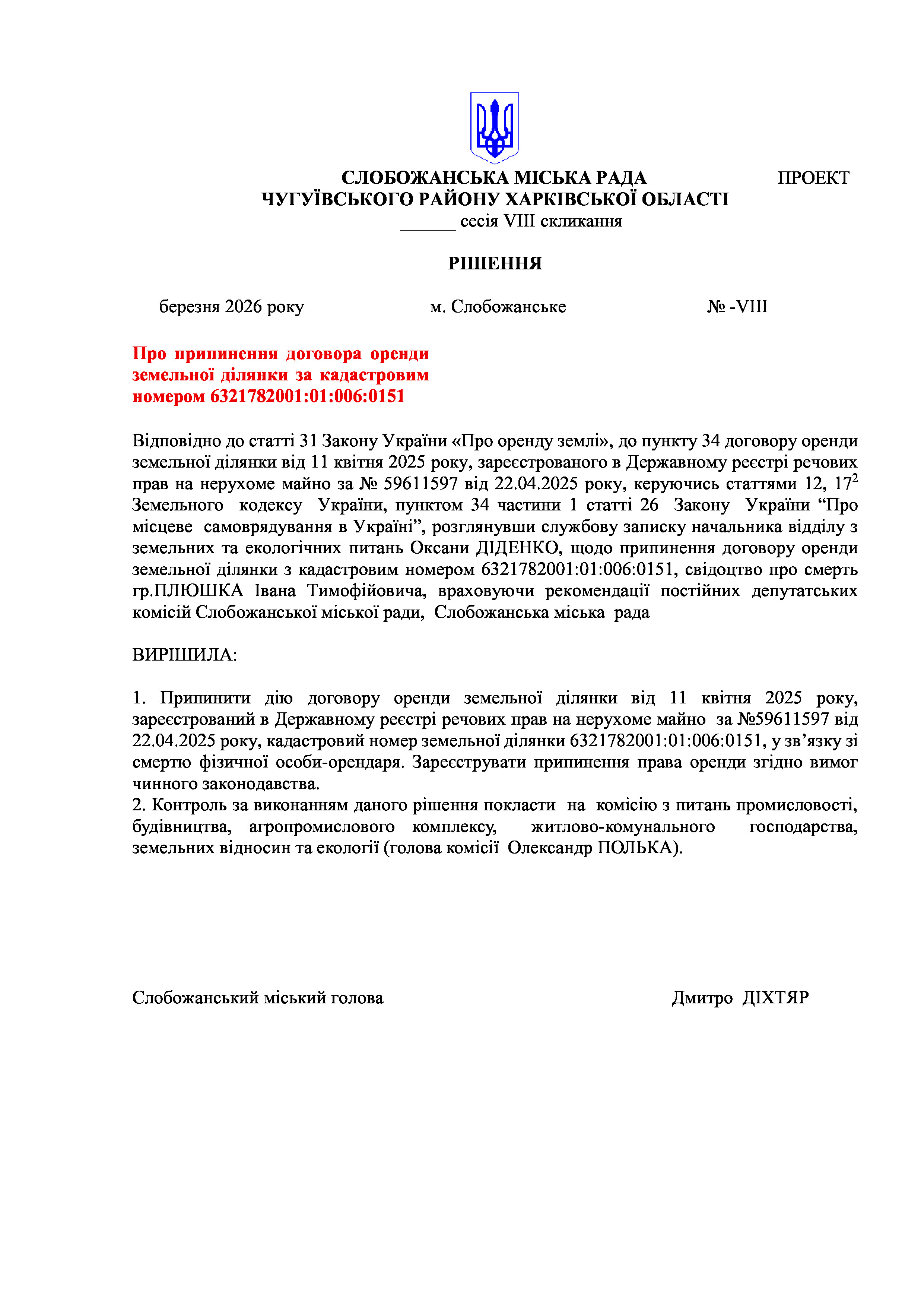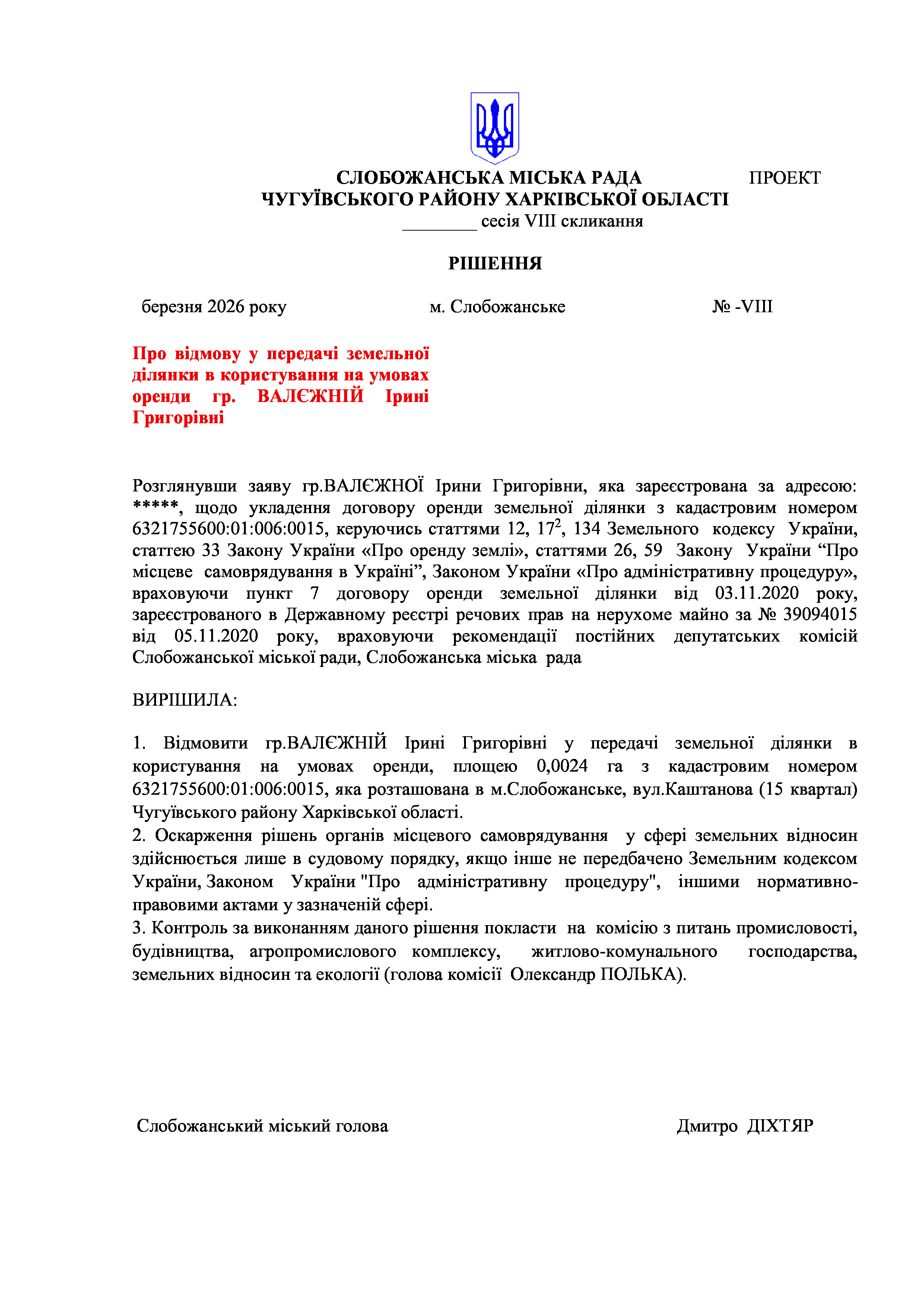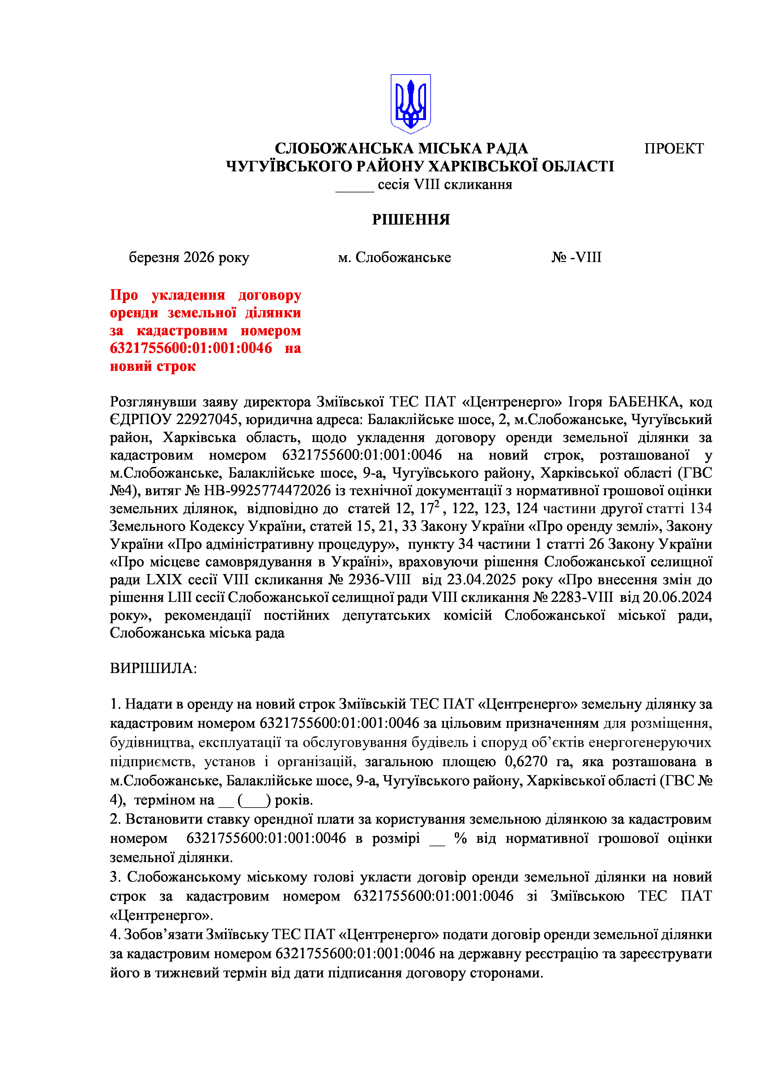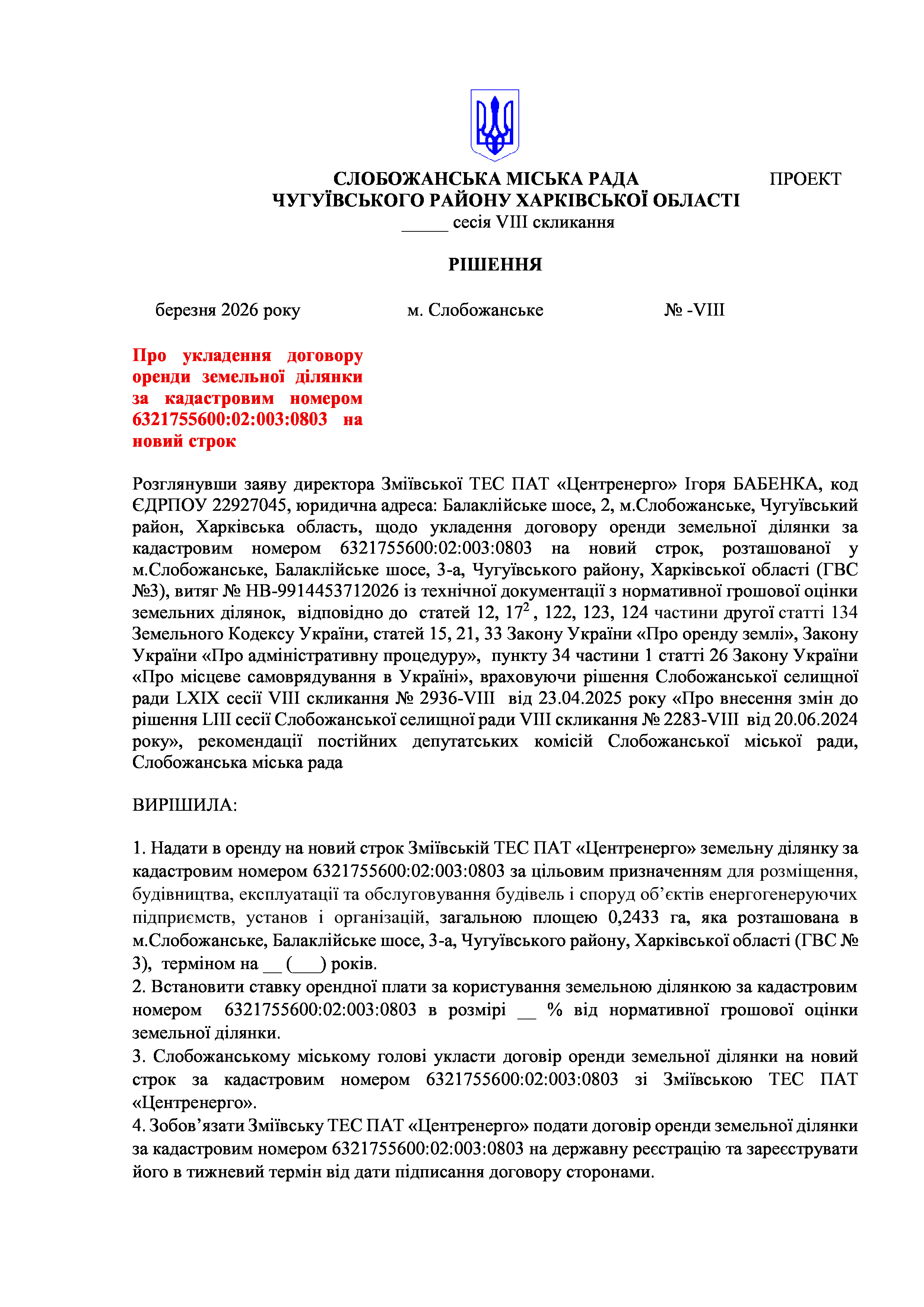 ПРОЄКТ рішення сесії №26-VIII