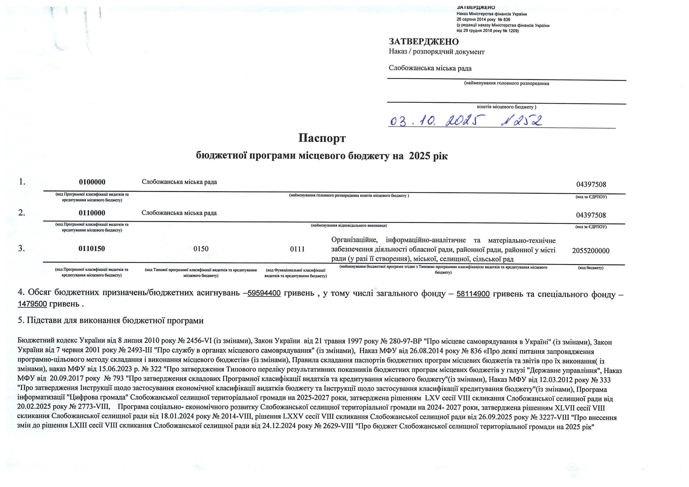 Паспорт бюджетної програми місцевого бюджету ТПКВКМБ 0110150
