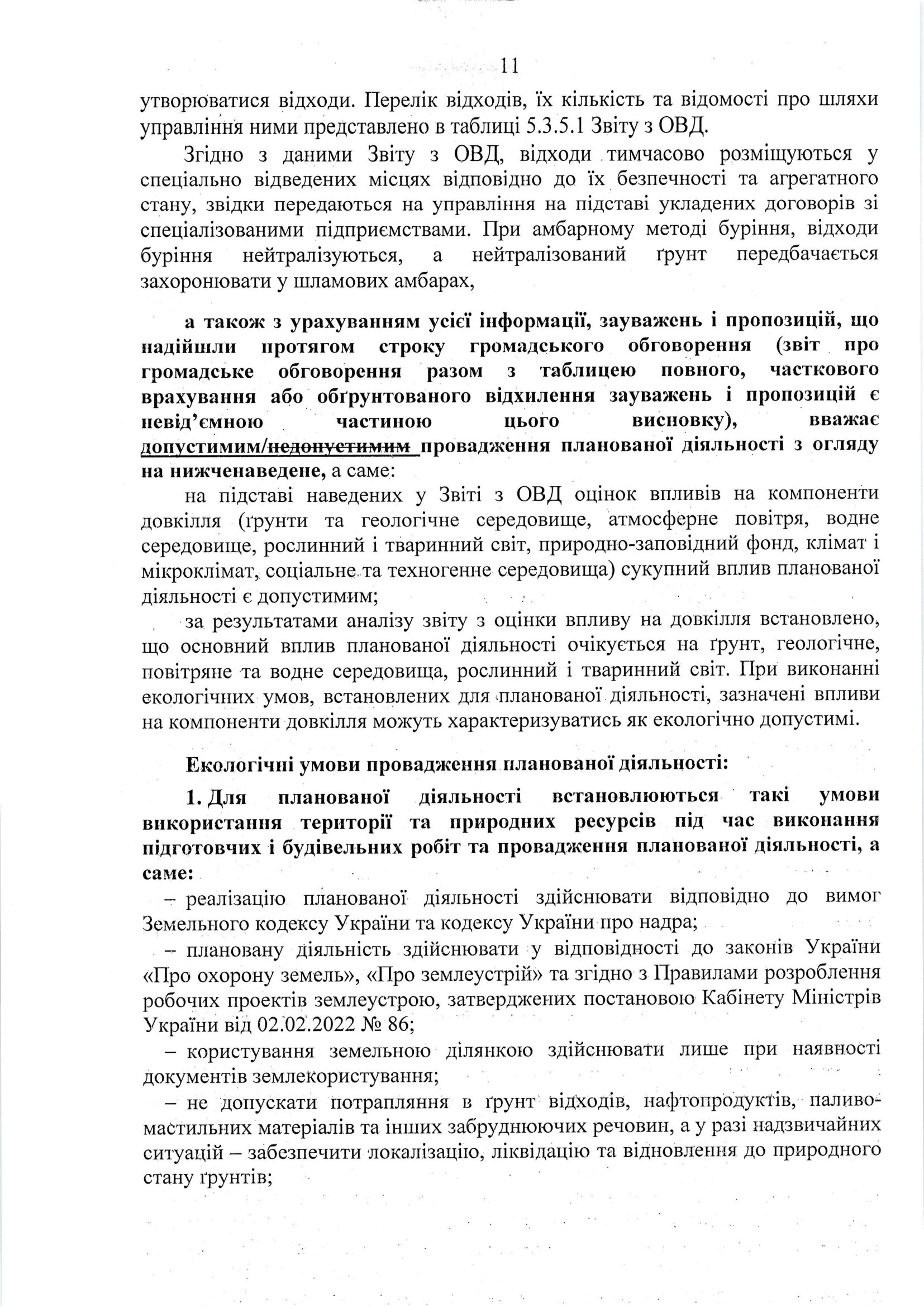 Інформація про отримання висновку з оцінки впливу на довкілля