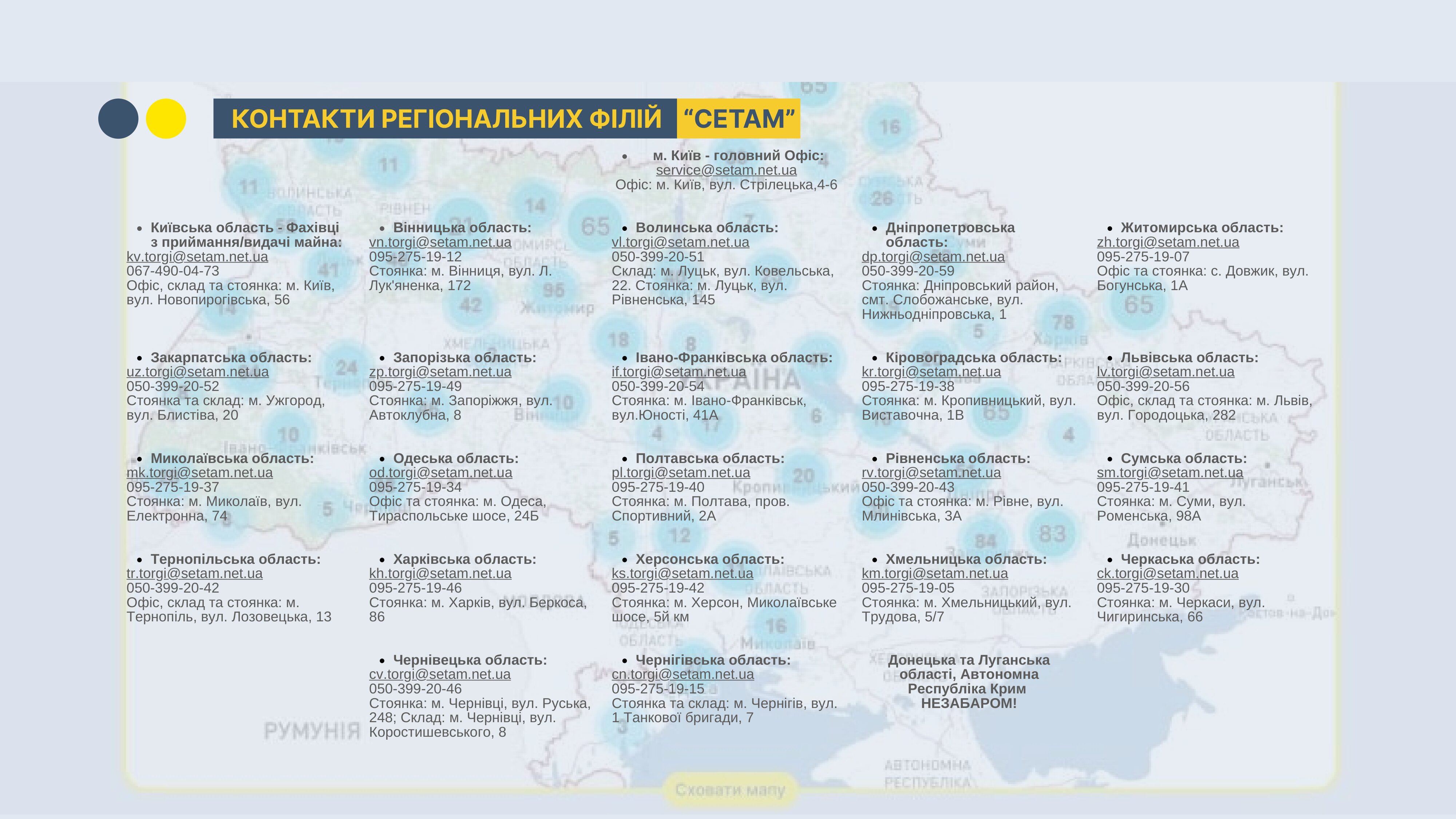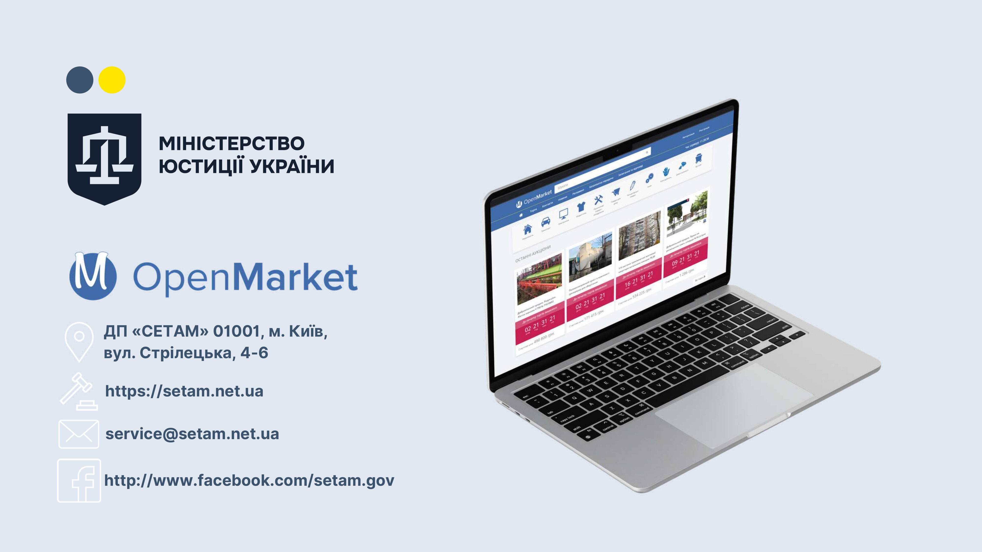 Більш детальна інформація про зазначені вище електронні аукціони доступна на офіційному вебсайті ДП «СЕТАМ», в електронній торговій системі «OpenMarket» та на порталі https://setam.net.ua/auctions.