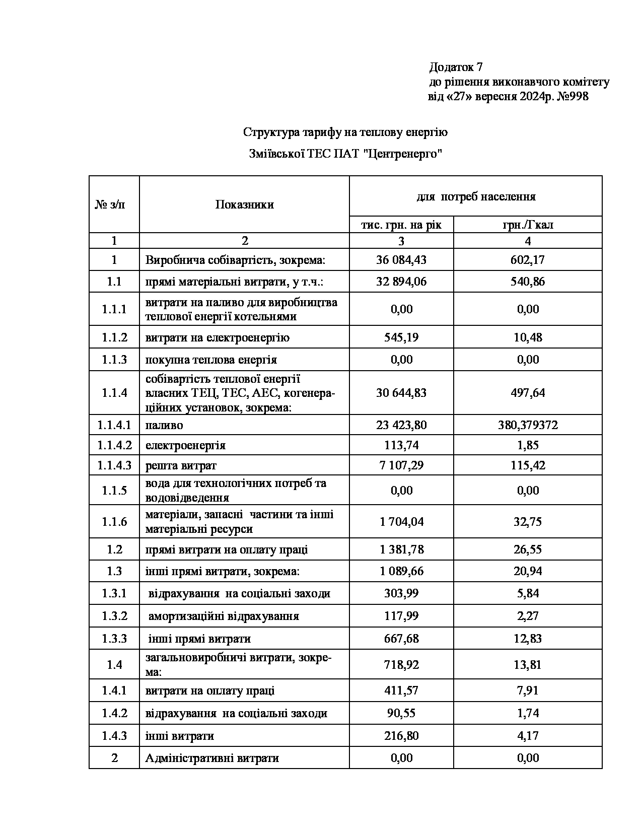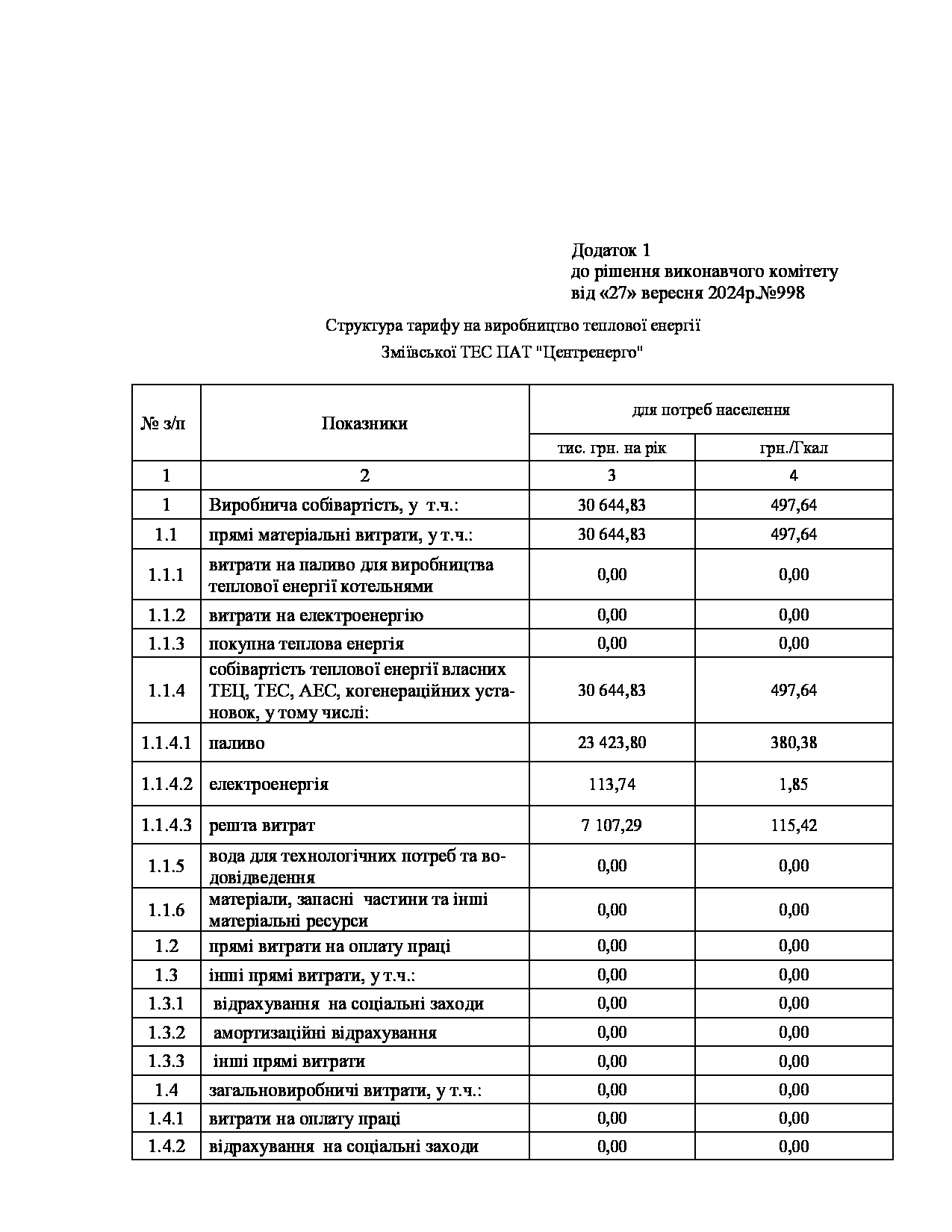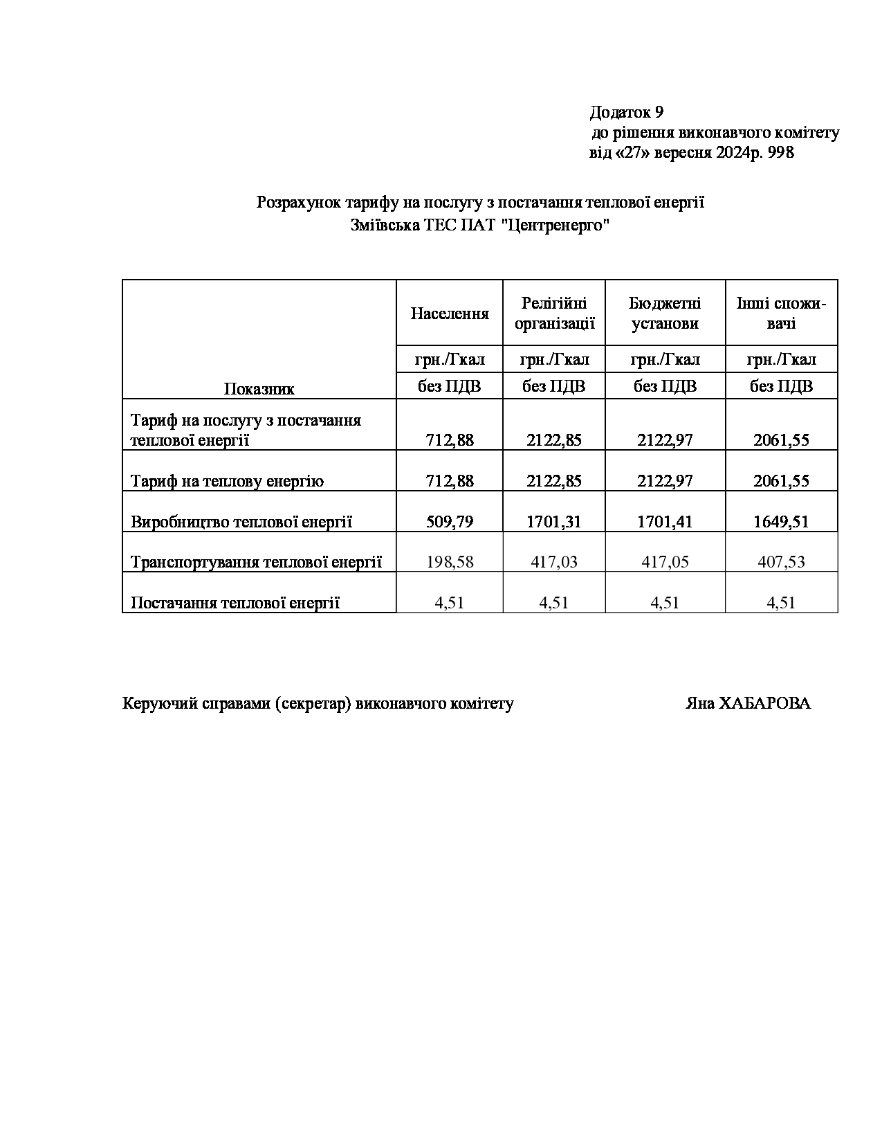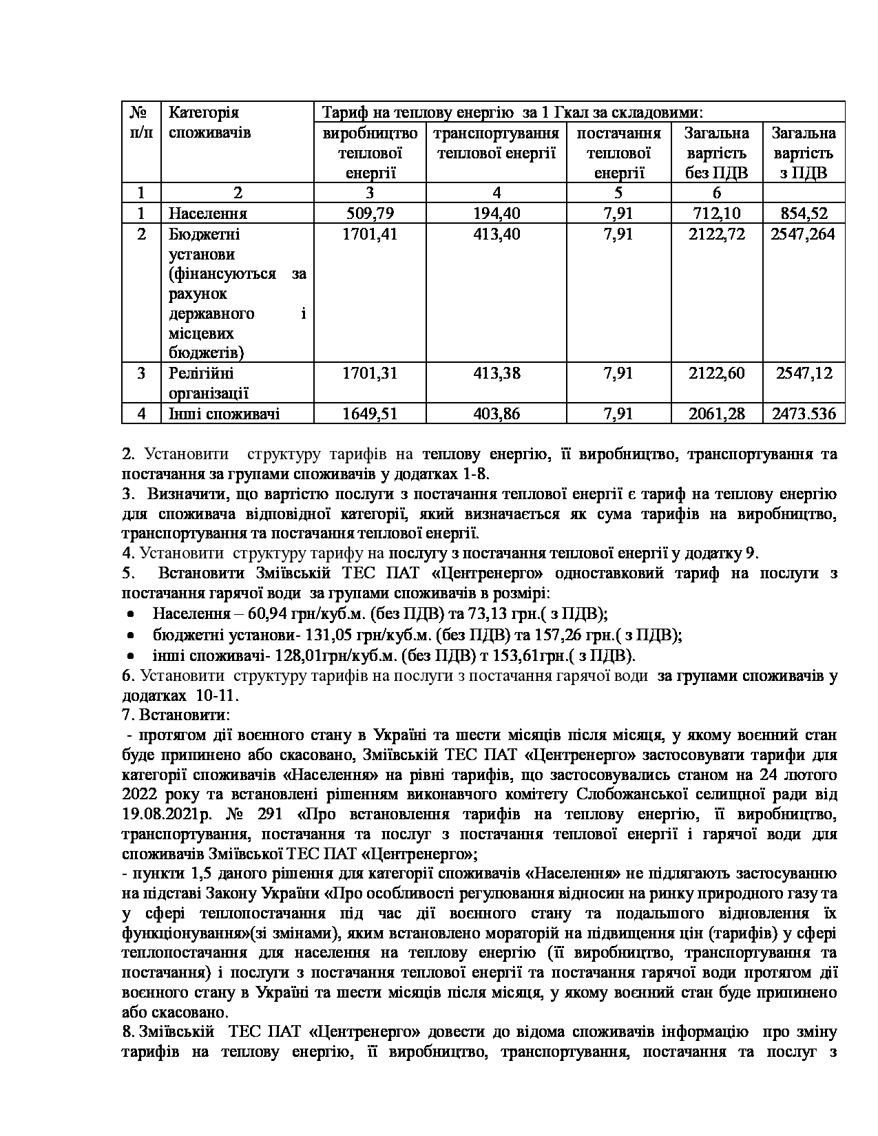 Рішення виконавчого комітету №629 Про встановлення Зміївській ТЕС ПАТ «Центренерго» тарифів на теплову енергію, її виробництво, транспортування, постачання та послуг з постачання теплової енергії і гарячої води