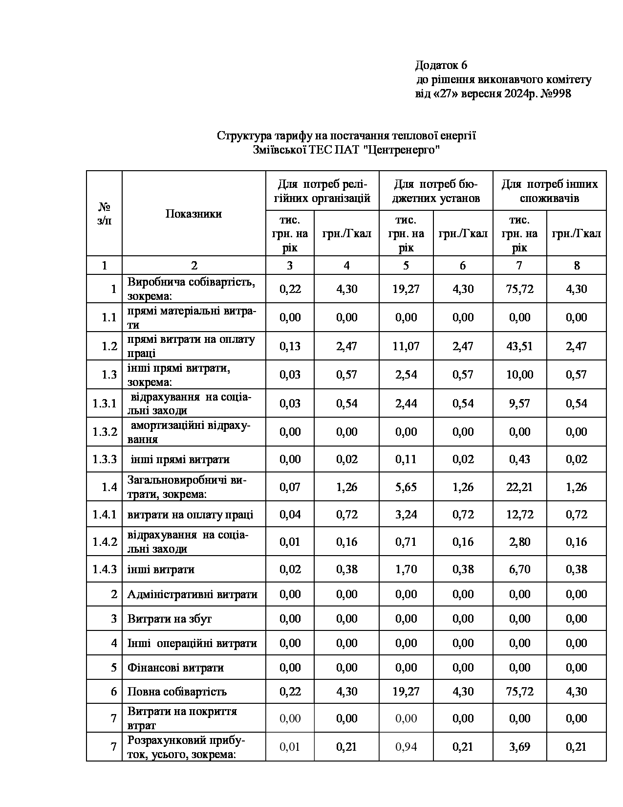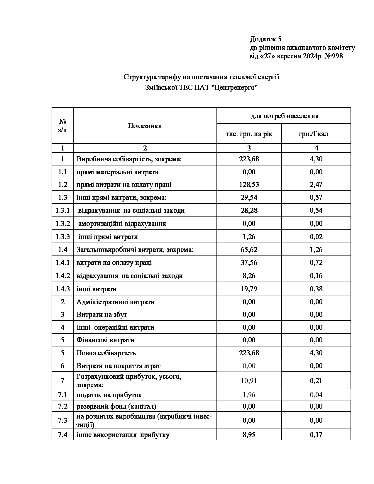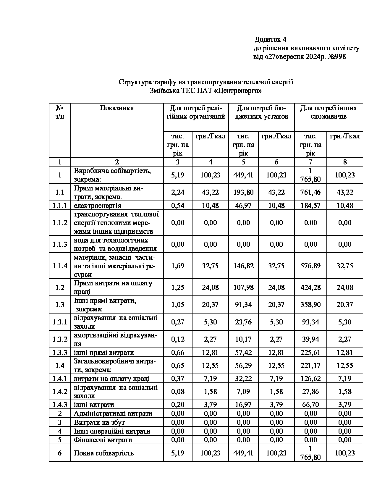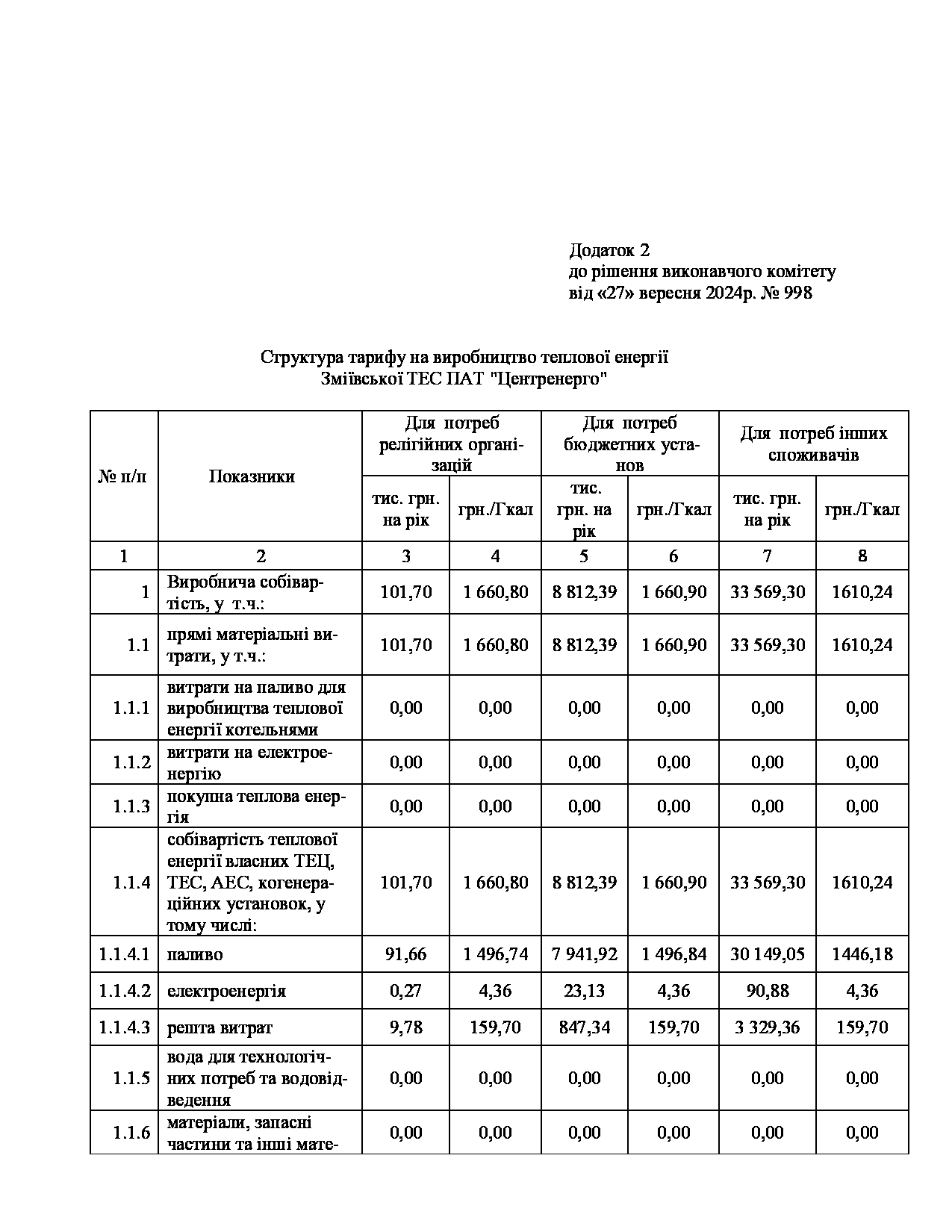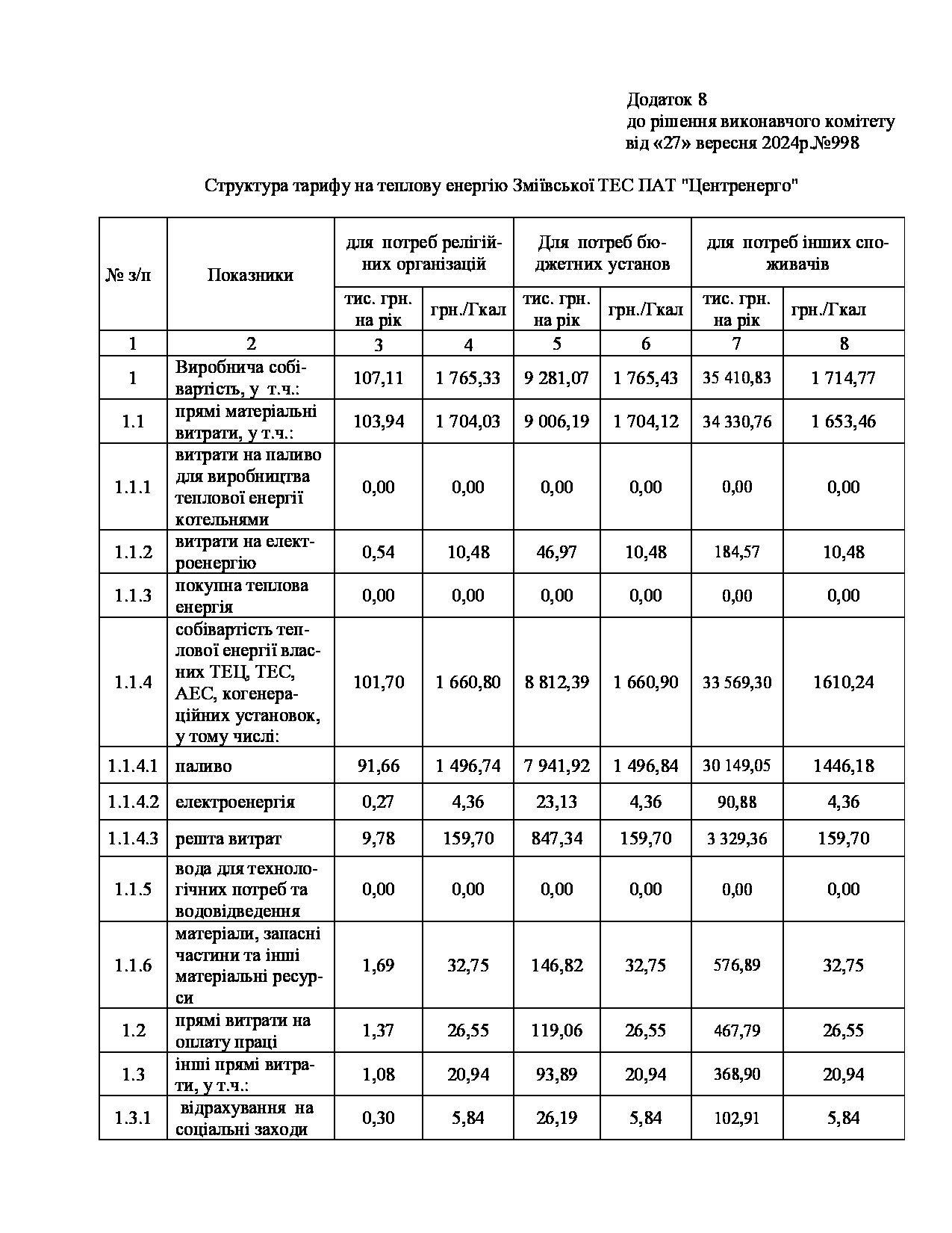 Рішення виконавчого комітету №629 Про встановлення Зміївській ТЕС ПАТ «Центренерго» тарифів на теплову енергію, її виробництво, транспортування, постачання та послуг з постачання теплової енергії і гарячої води