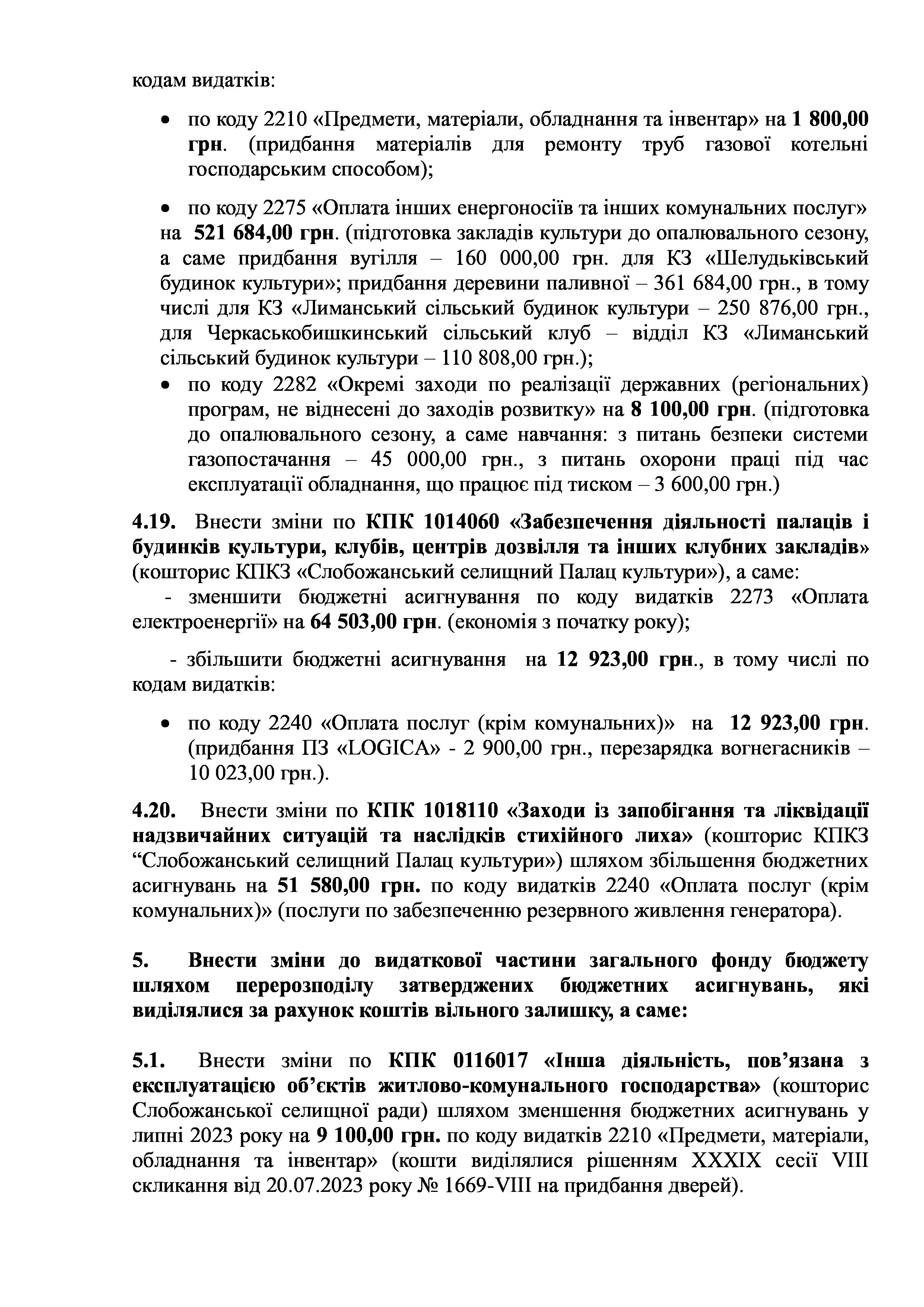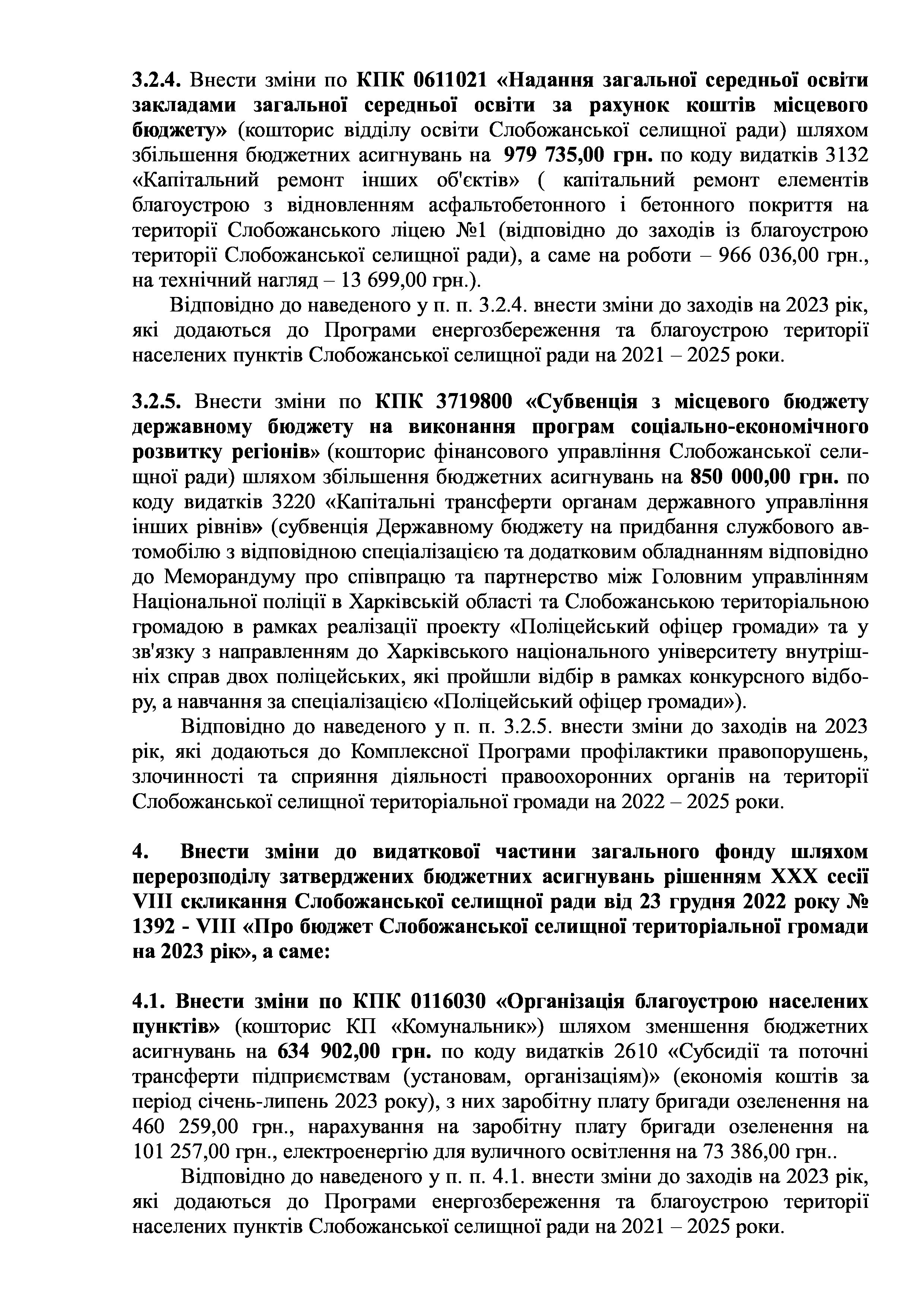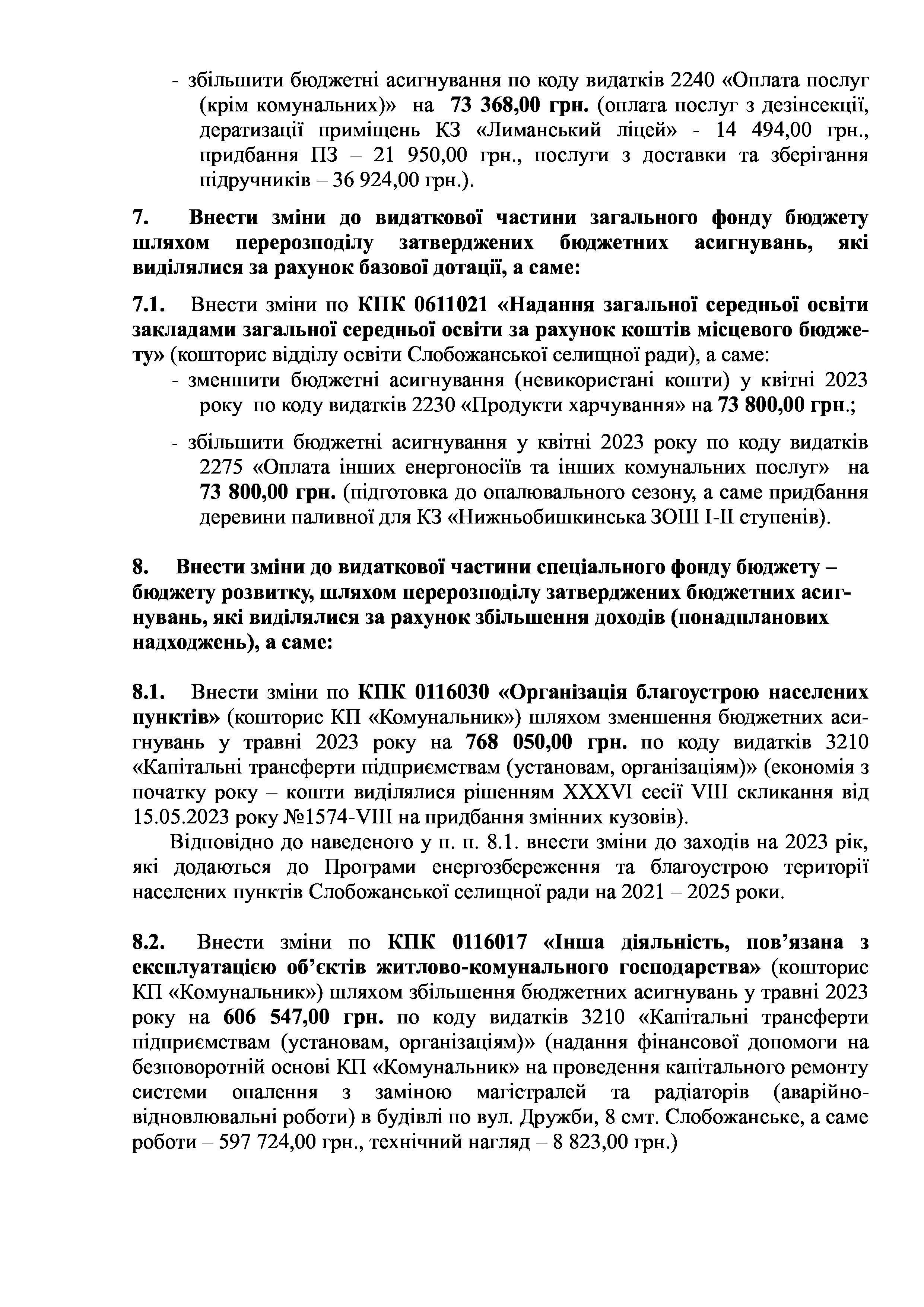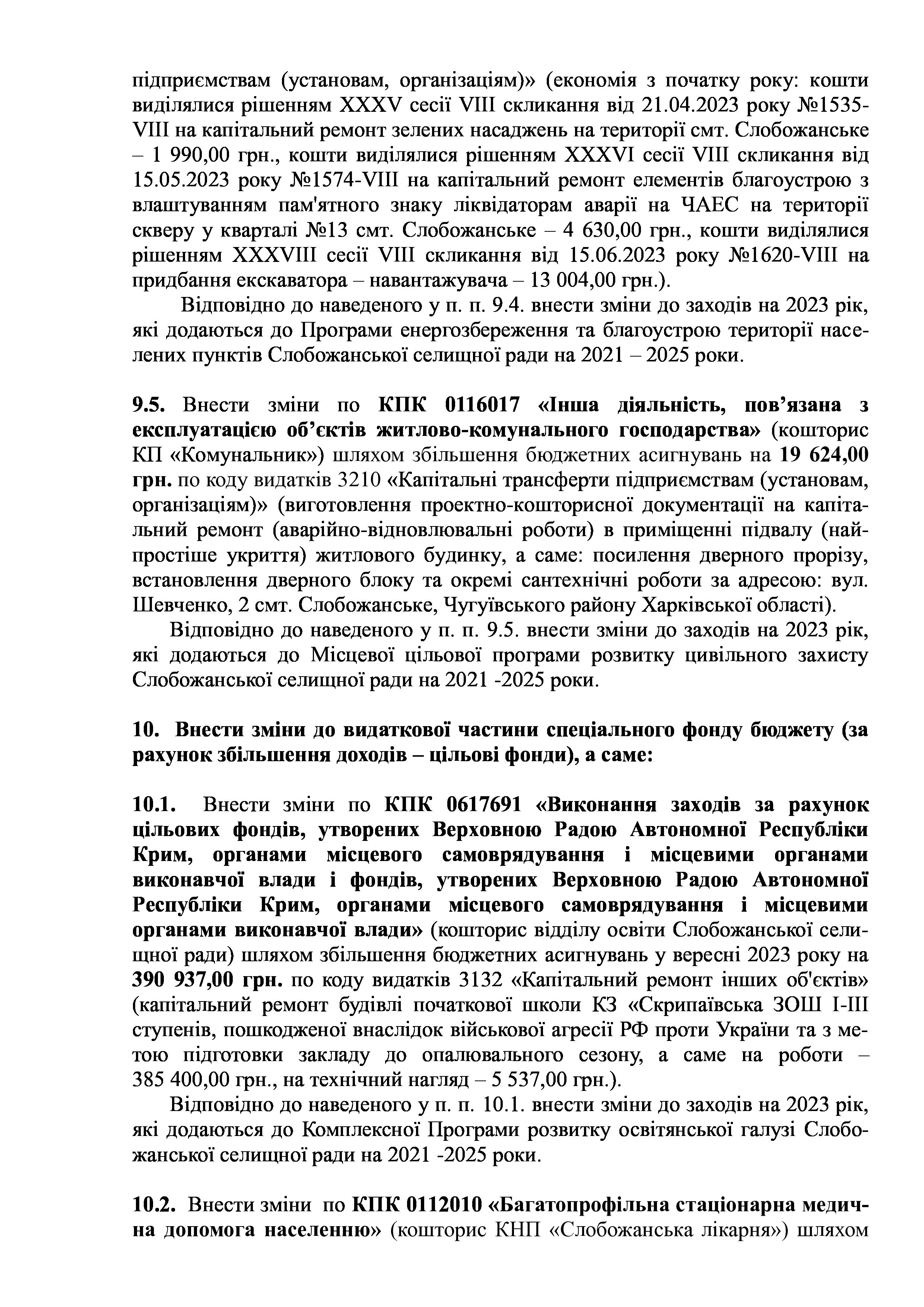 Рішення сесії №1756-VIII Про внесення змін та доповнень до Заходів на 2023 рік до Програми енергозбереження та благоустрою територій населених пунктів Слобожанської селищної ради на 2021-2025 роки.