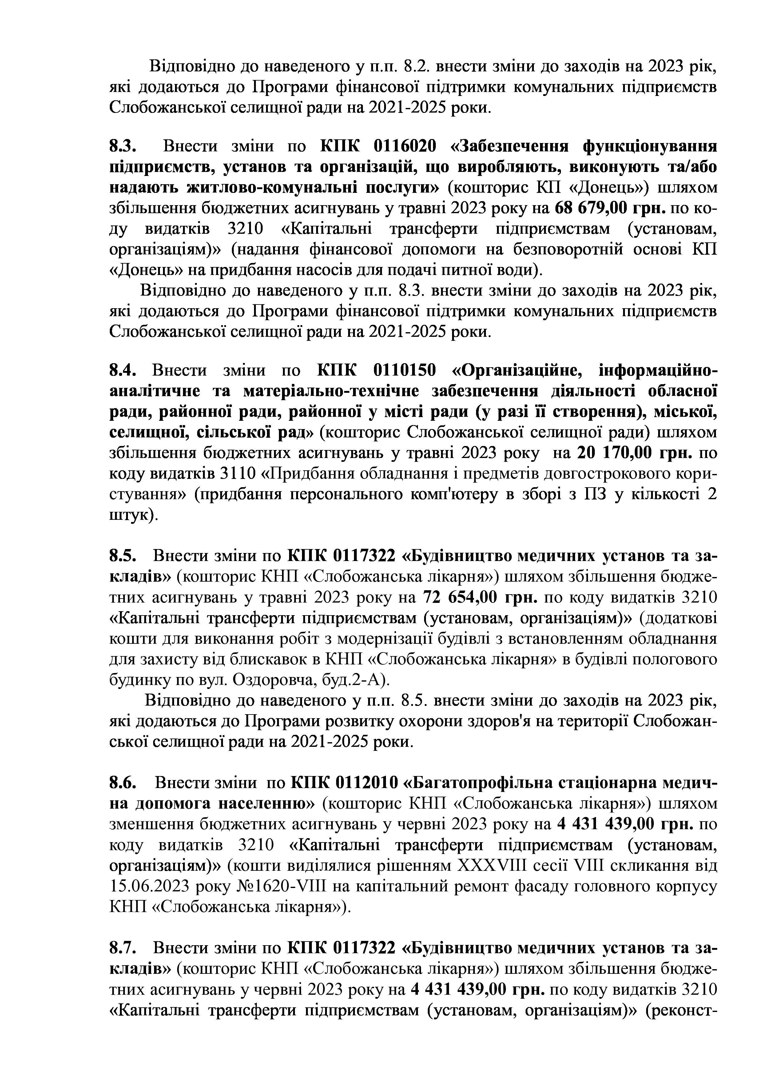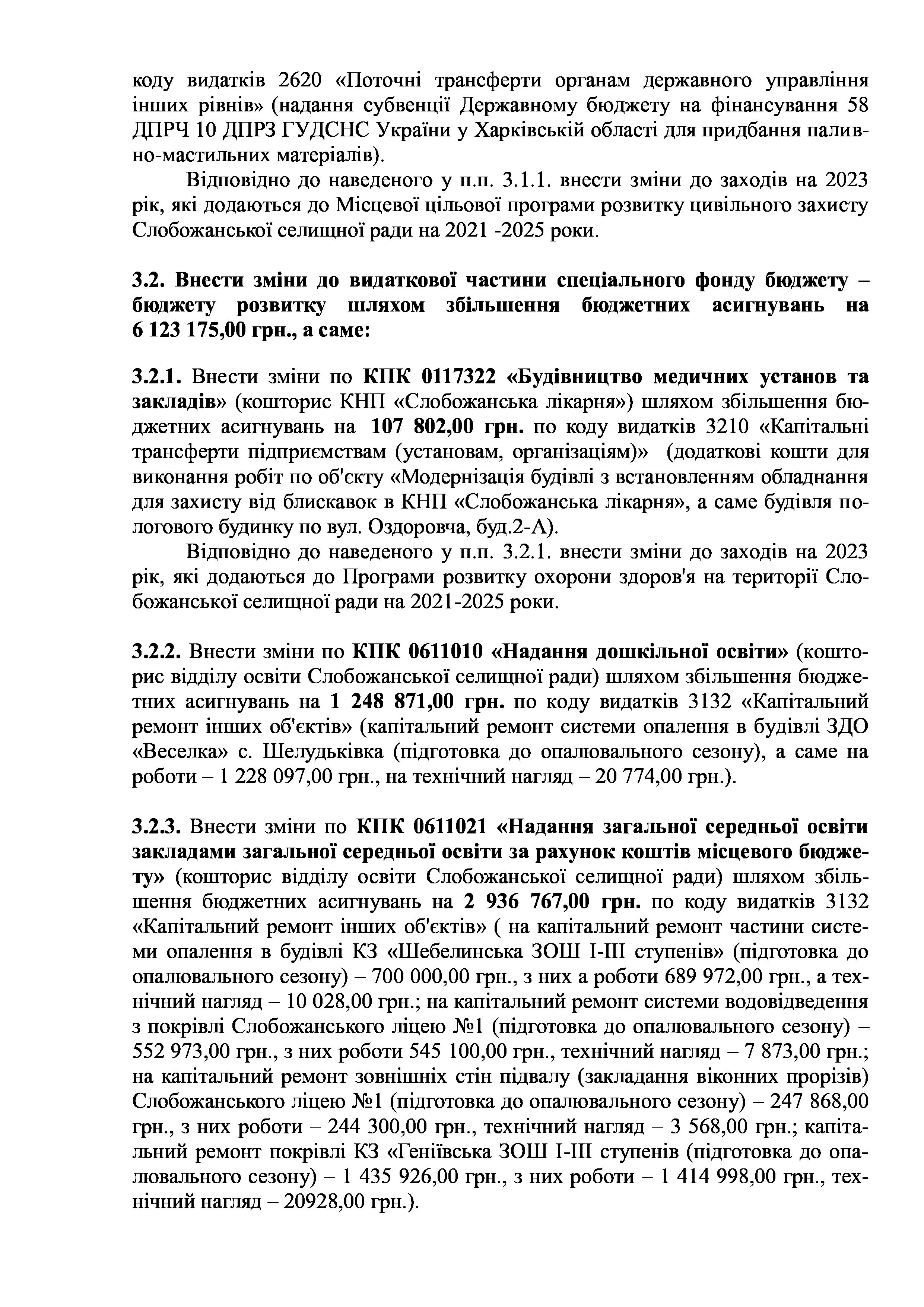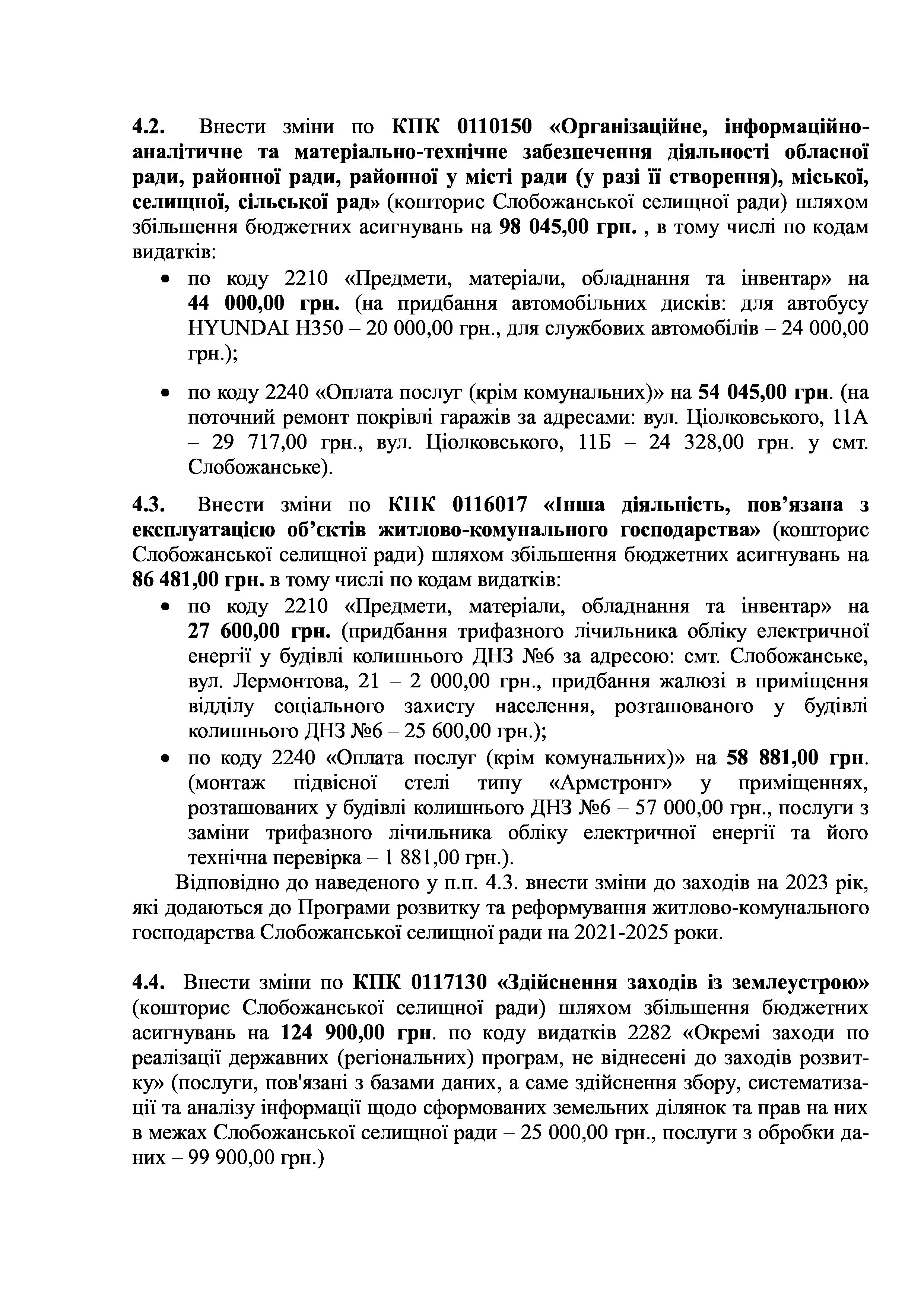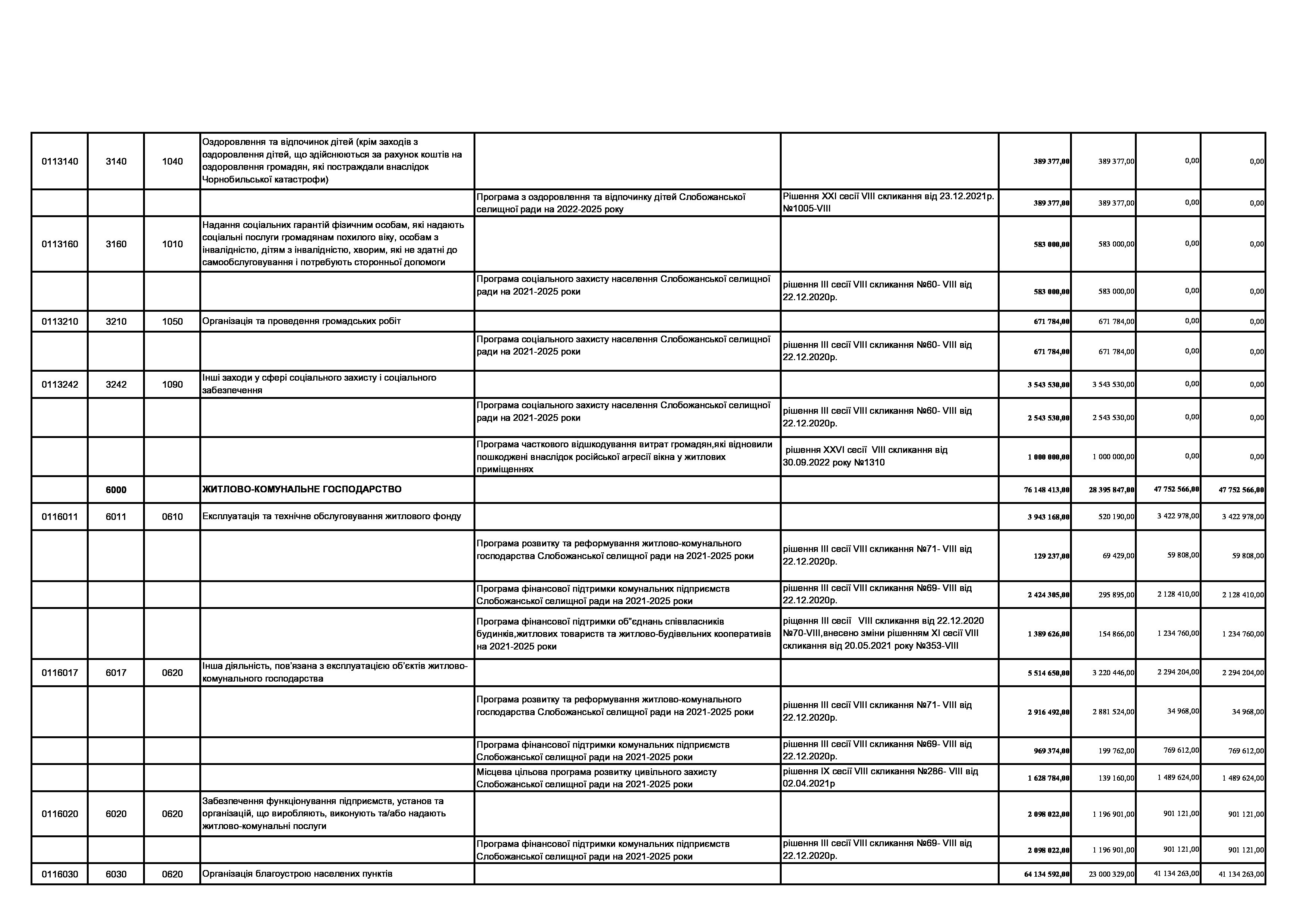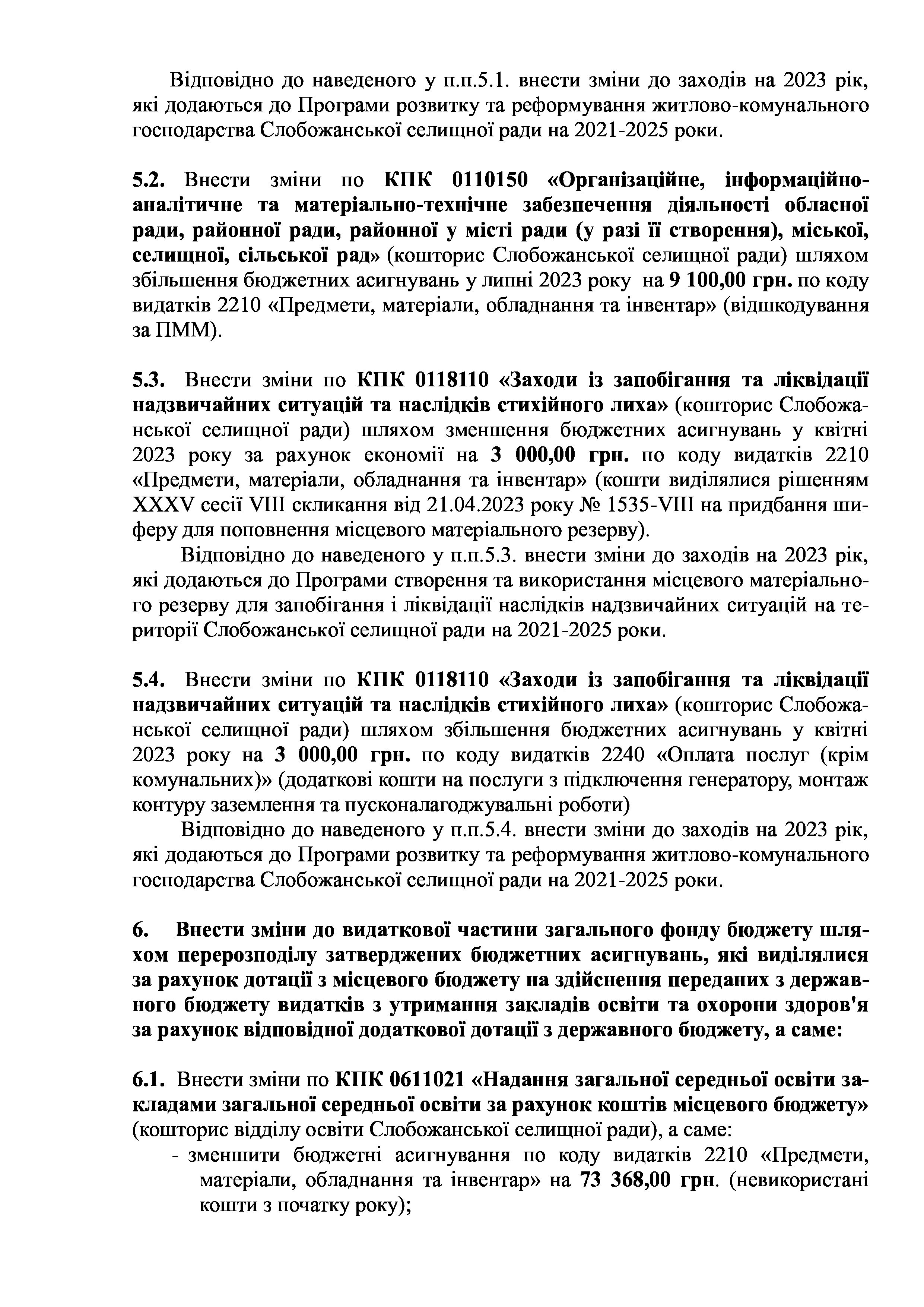 Рішення сесії №1755-VIII Про внесення змін та доповнень до Заходів на 2023 рік до Програми розвитку і реформування житлово-комунального господарства Слобожанської селищної ради на 2021-2025 роки.
