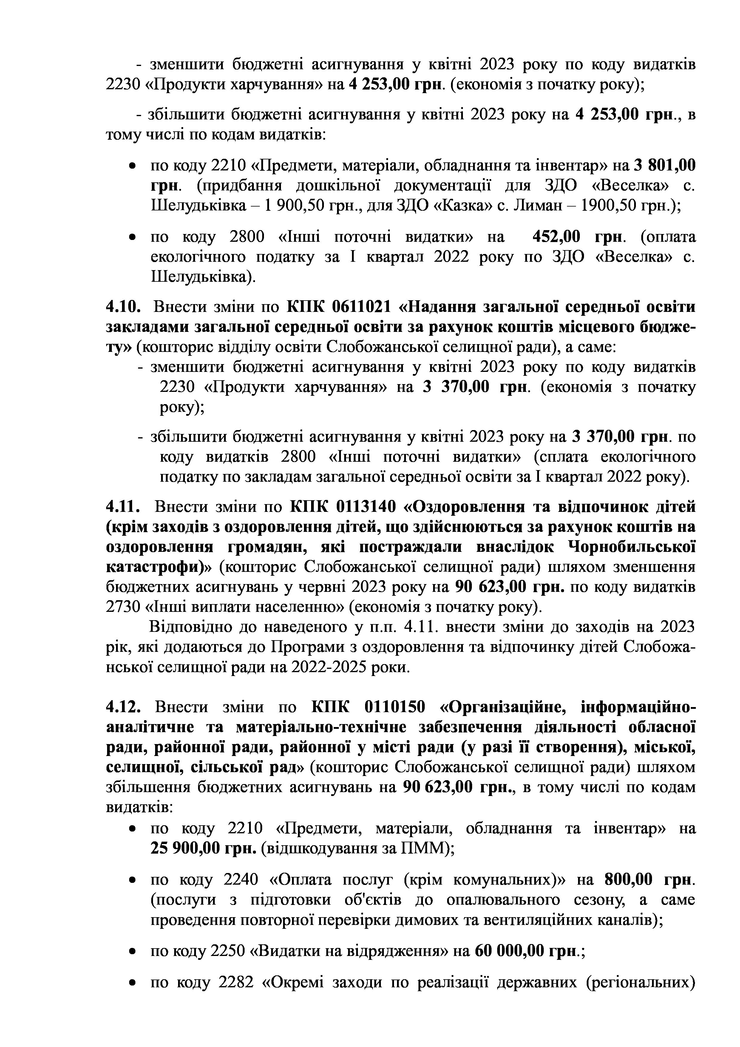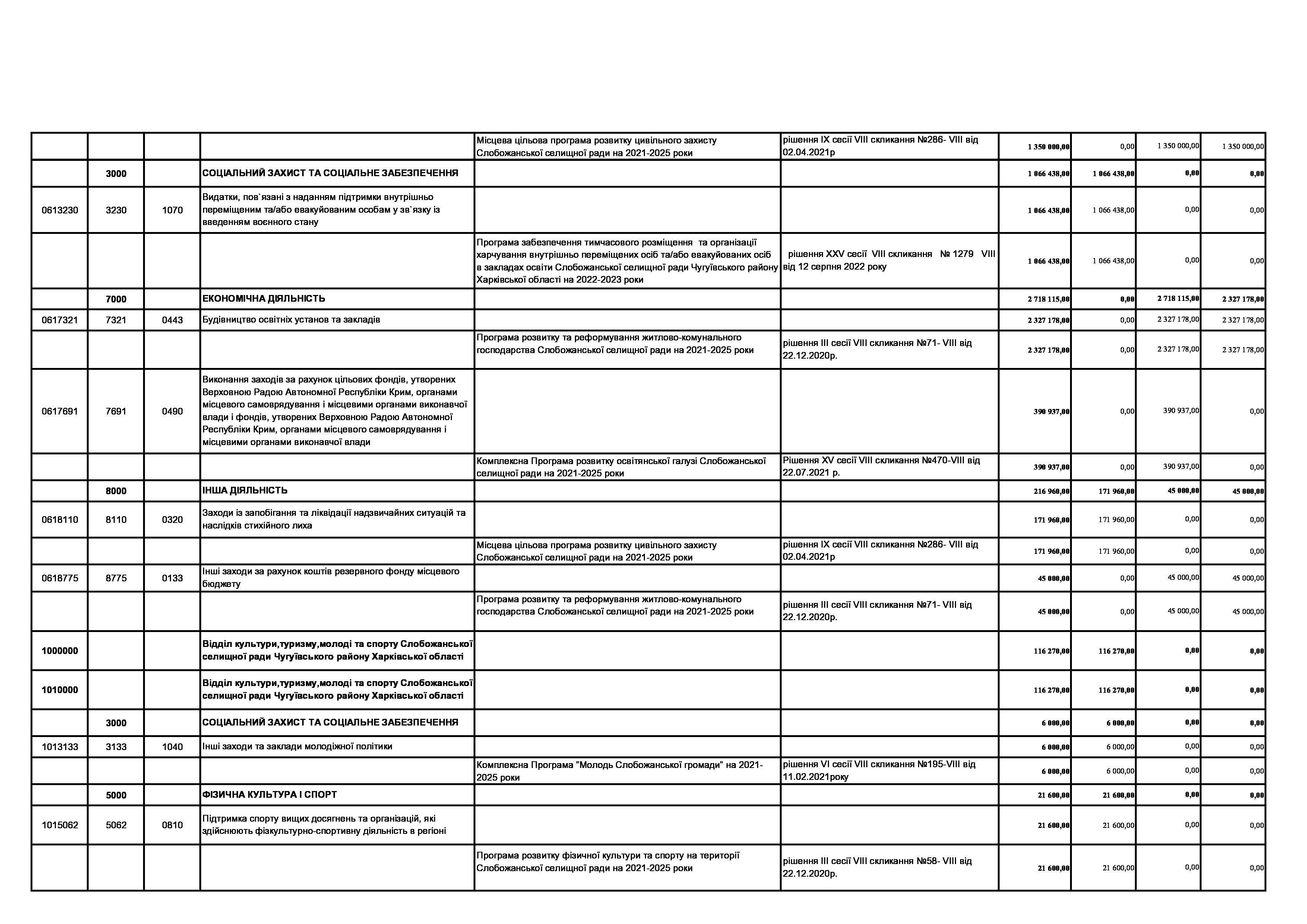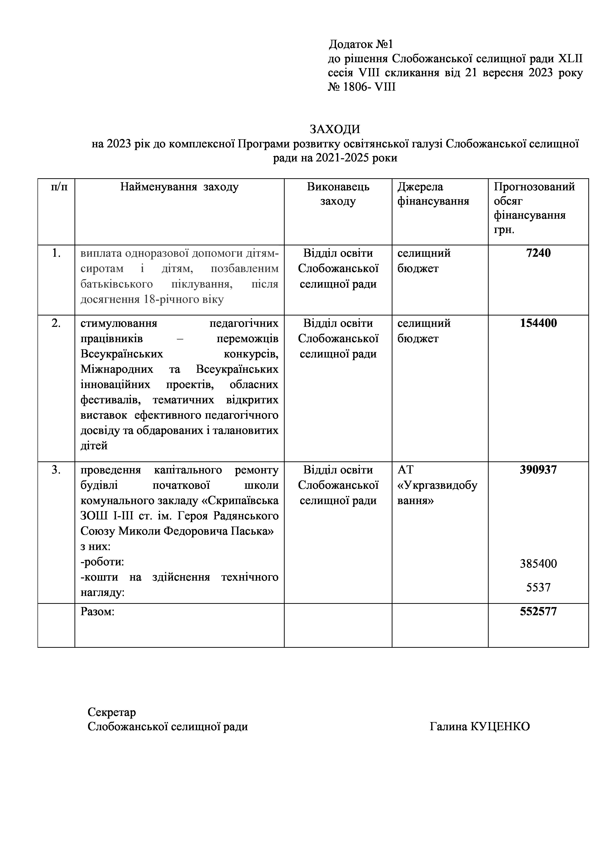 Рішення сесії №1806-VIII Про внесення змін до Заходів на 2023 рік до комплексної Програми розвитку освітянської галузі Слобожанської селищної ради на 2021 -2023 роки.