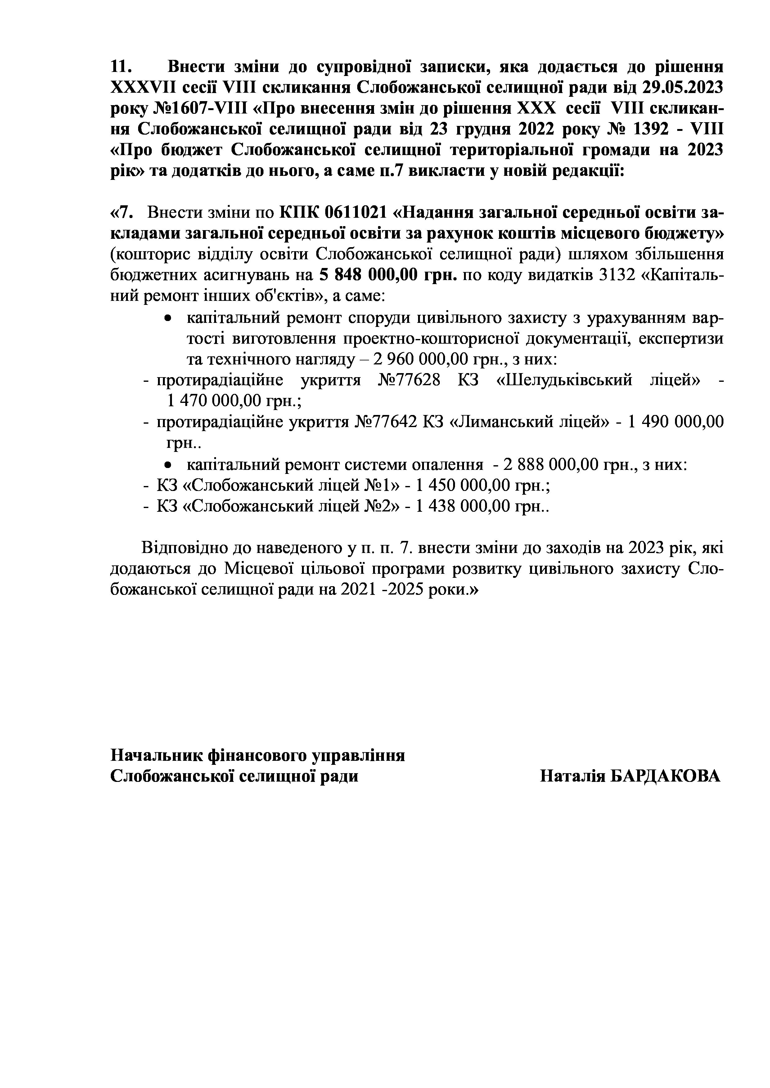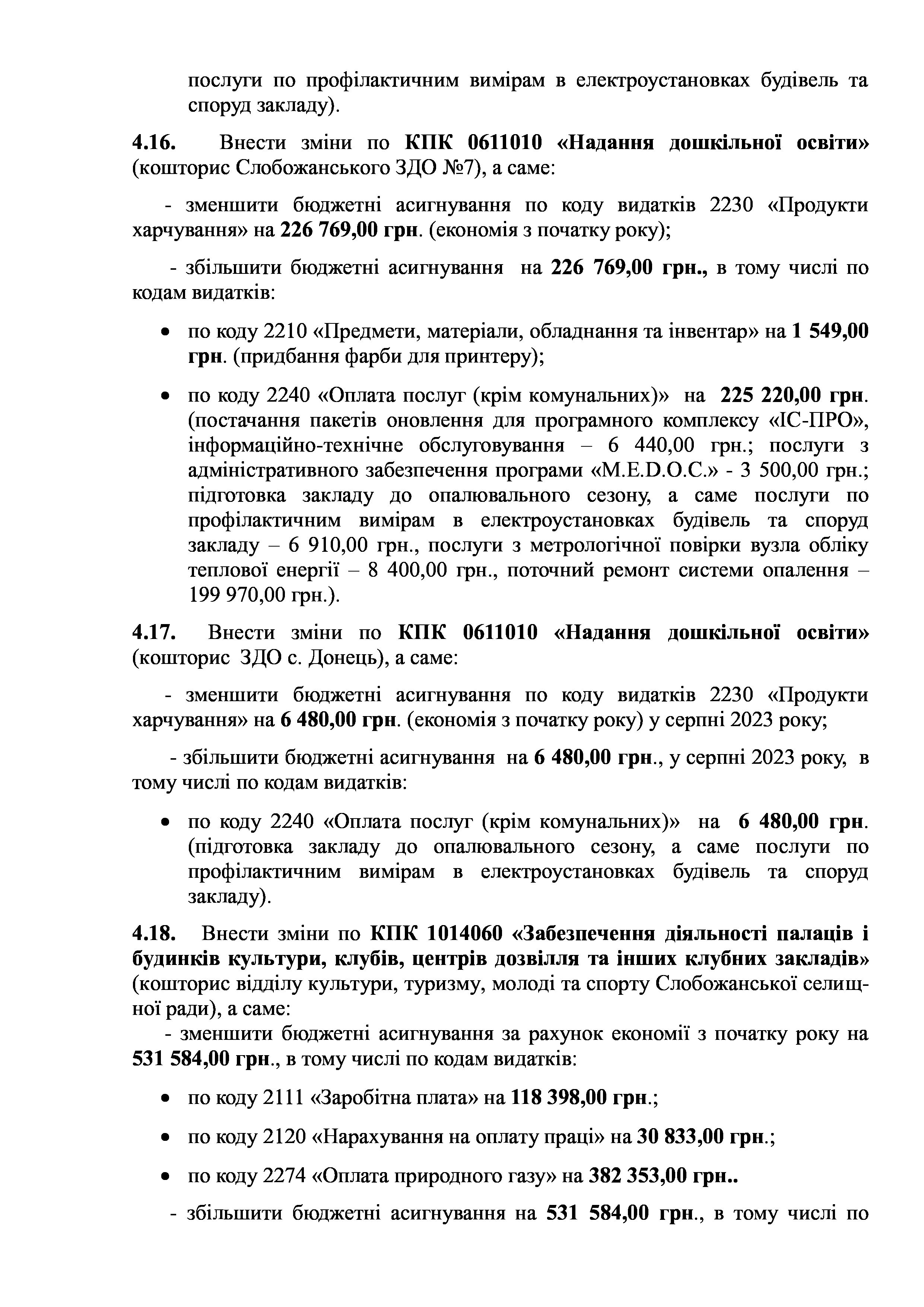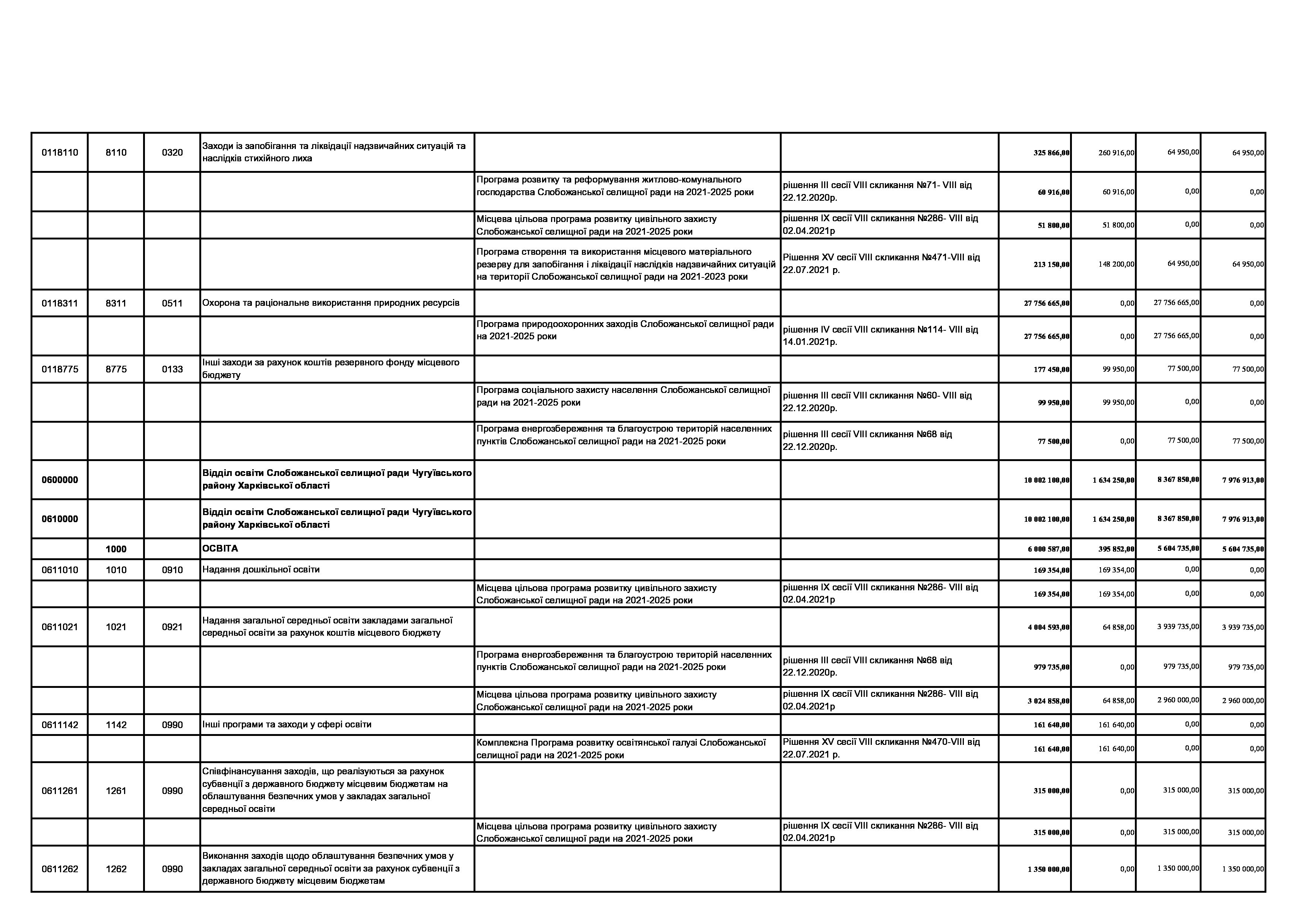 Рішення сесії №1806-VIII Про внесення змін до Заходів на 2023 рік до комплексної Програми розвитку освітянської галузі Слобожанської селищної ради на 2021 -2023 роки.