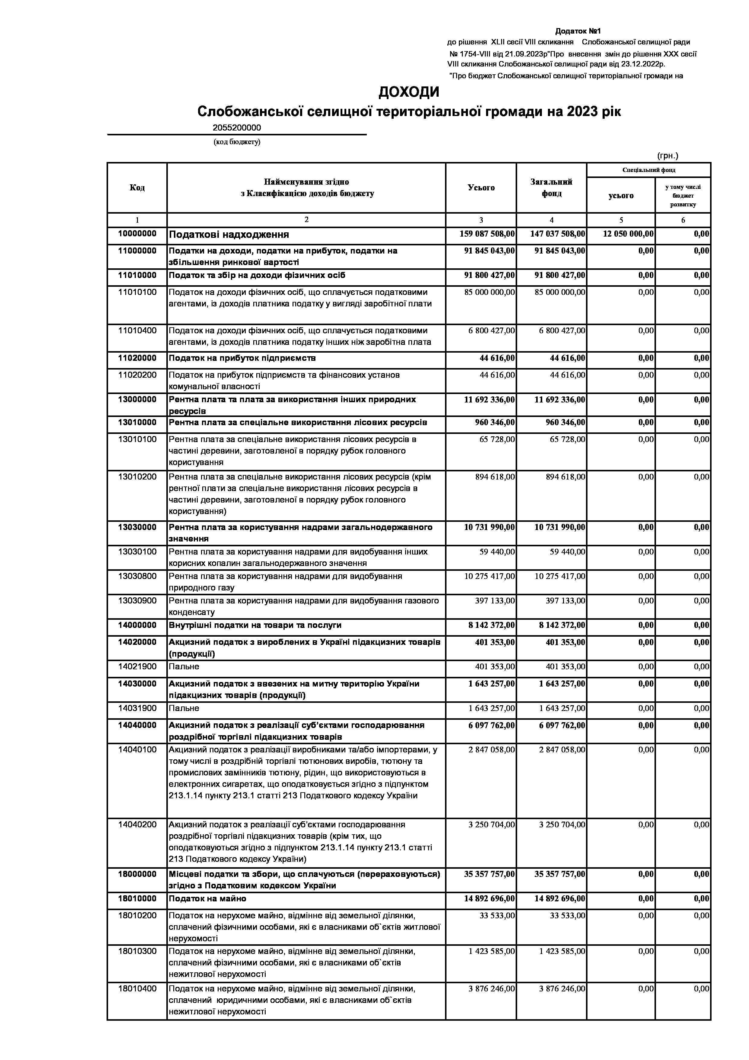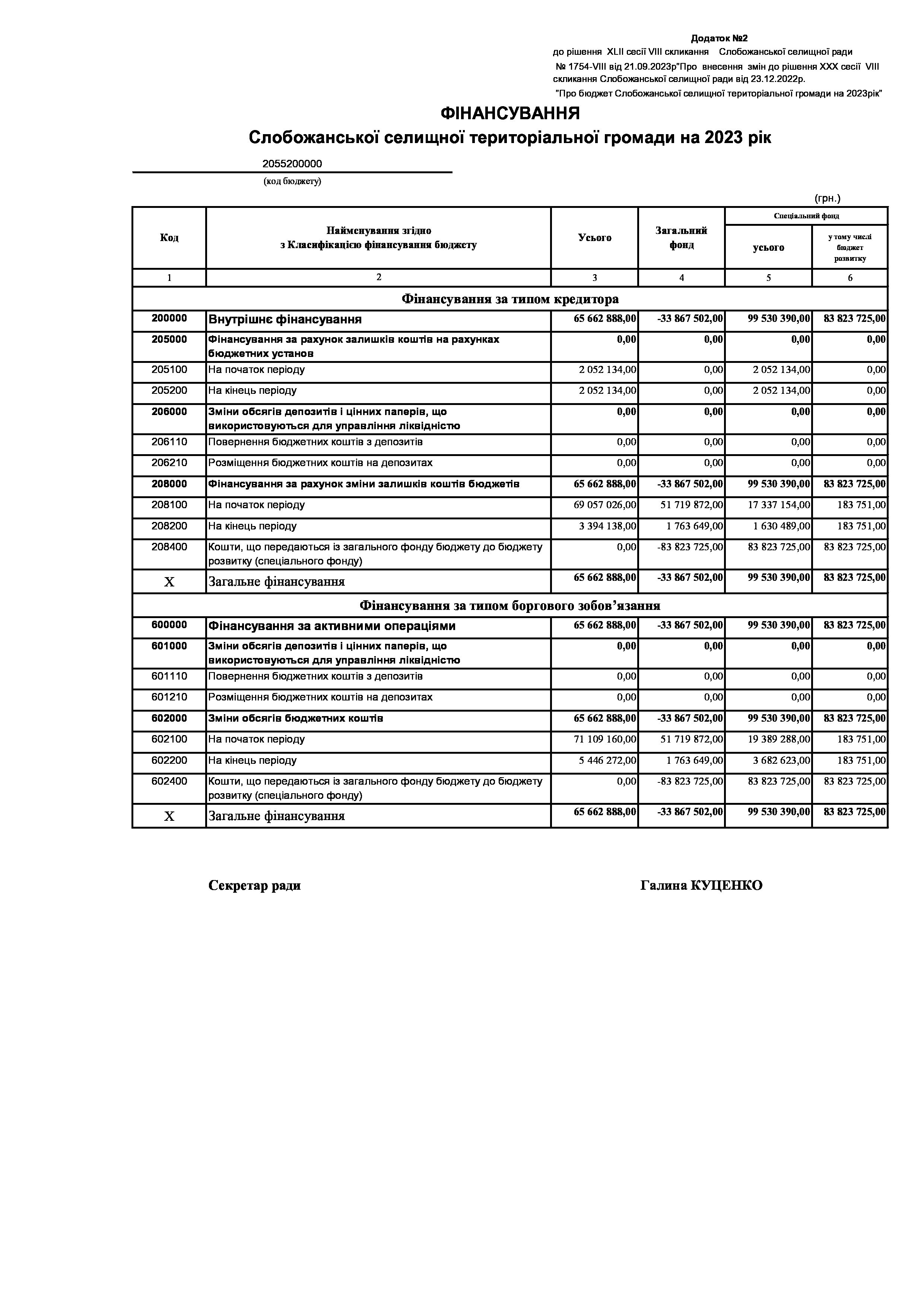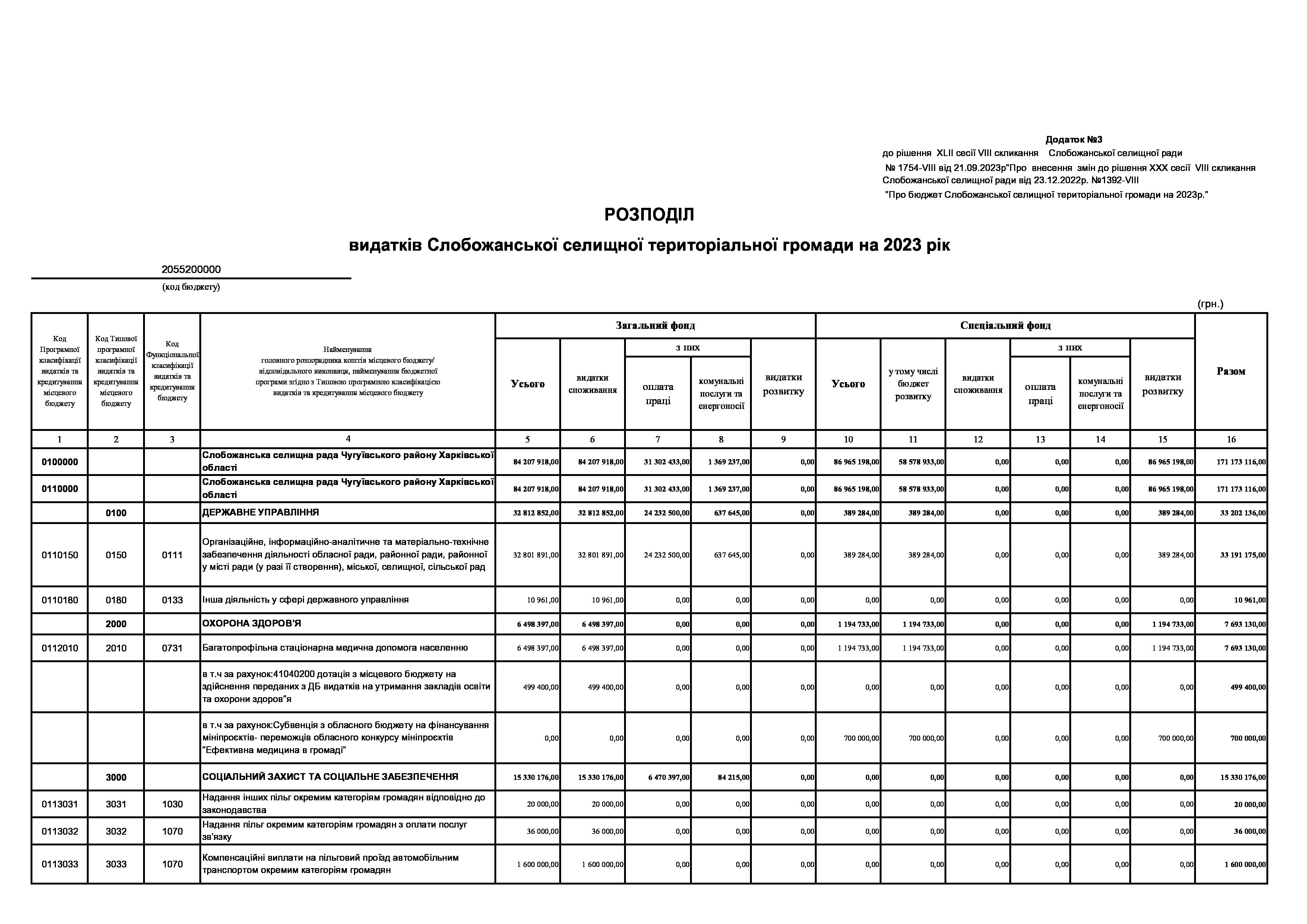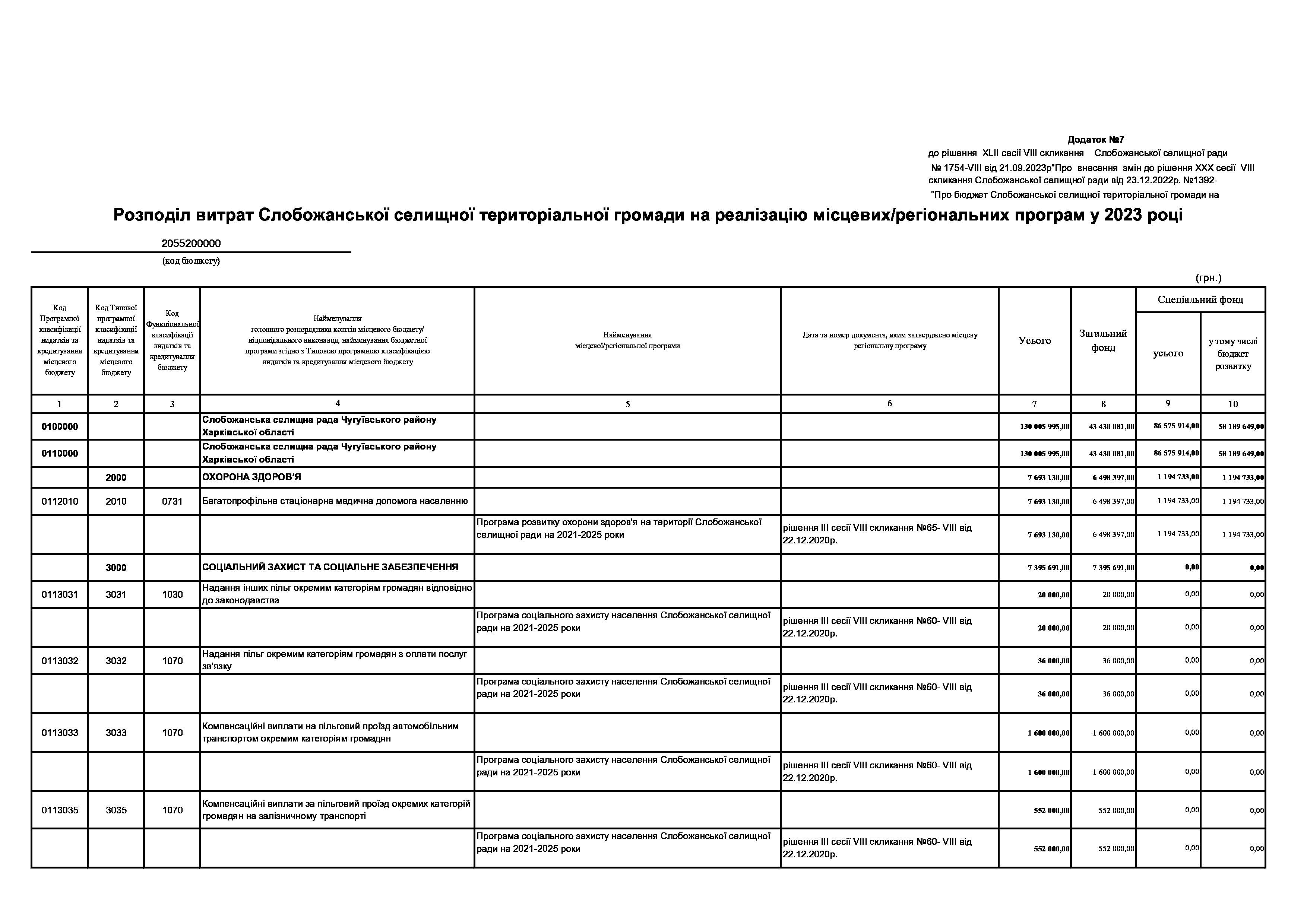 Рішення сесії №1754-VIII Про внесення змін до рішення ХХХ сесії VIІI скликання Слобожанської селищної ради від 23 грудня 2022 року №1392-VIІI «Про бюджет Слобожанської селищної територіальної громади на 2023 рік».