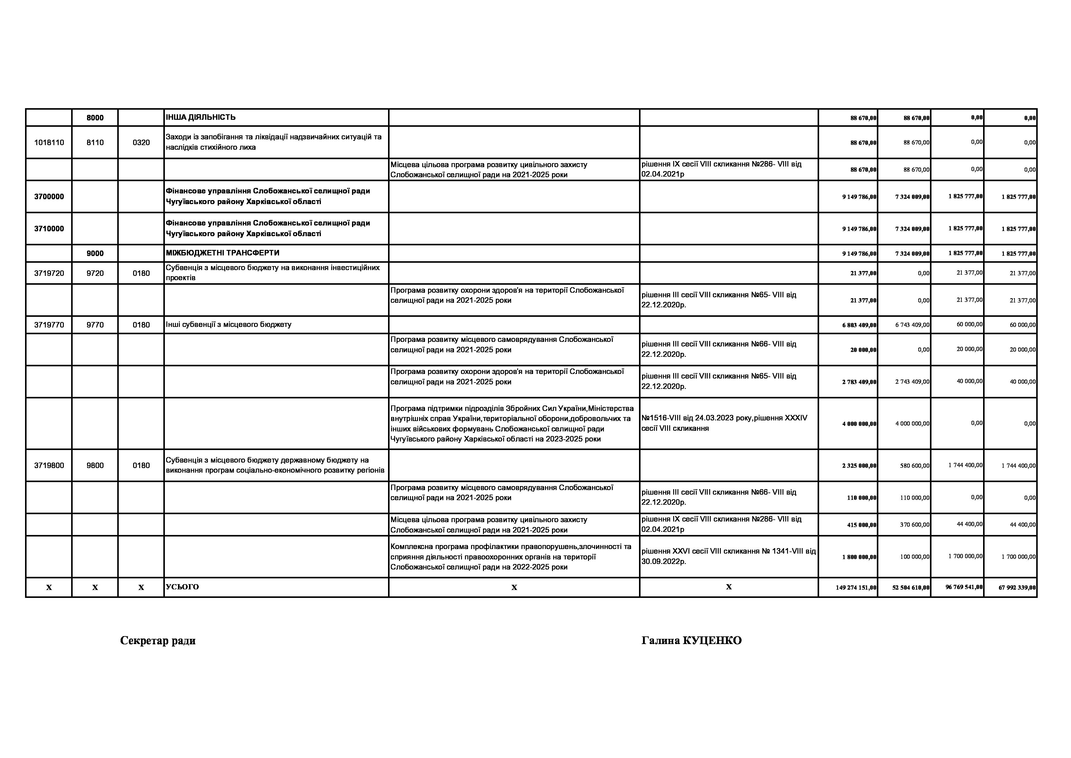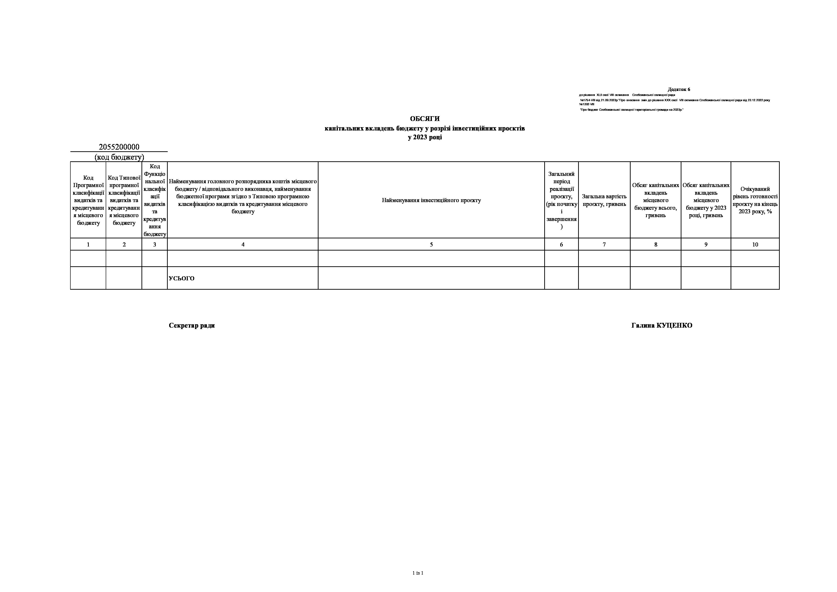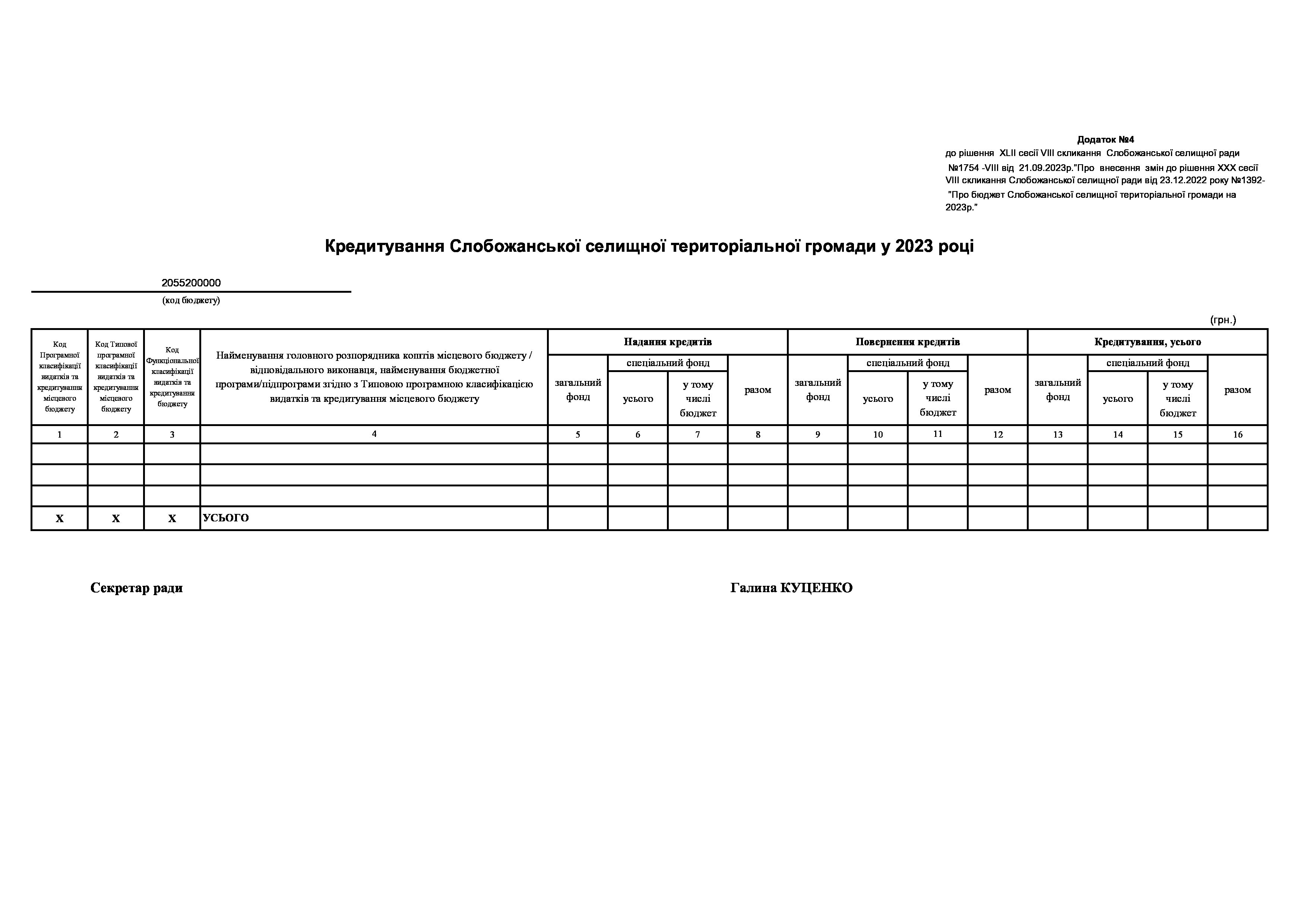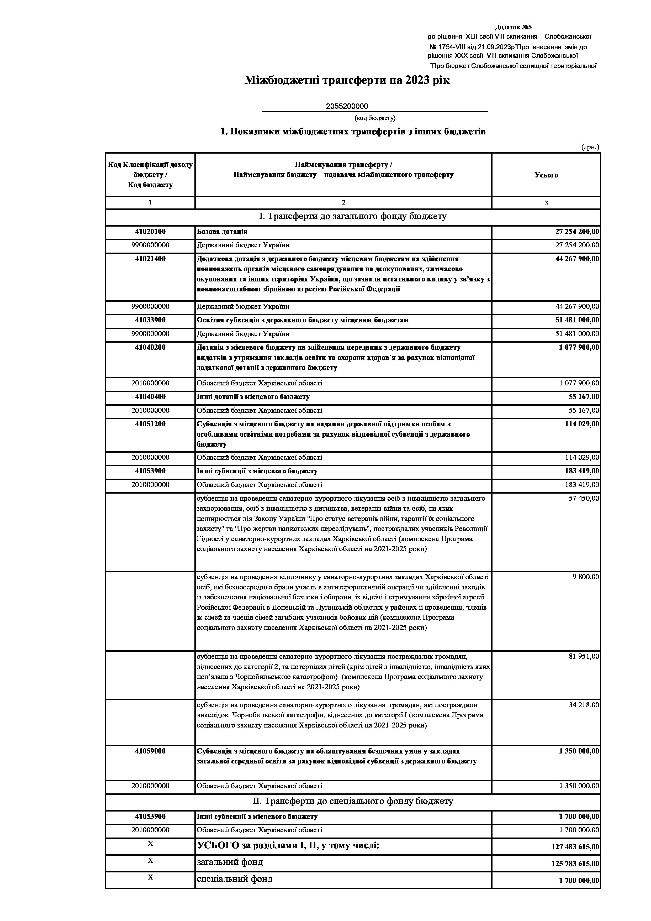 Рішення сесії №1754-VIII Про внесення змін до рішення ХХХ сесії VIІI скликання Слобожанської селищної ради від 23 грудня 2022 року №1392-VIІI «Про бюджет Слобожанської селищної територіальної громади на 2023 рік».