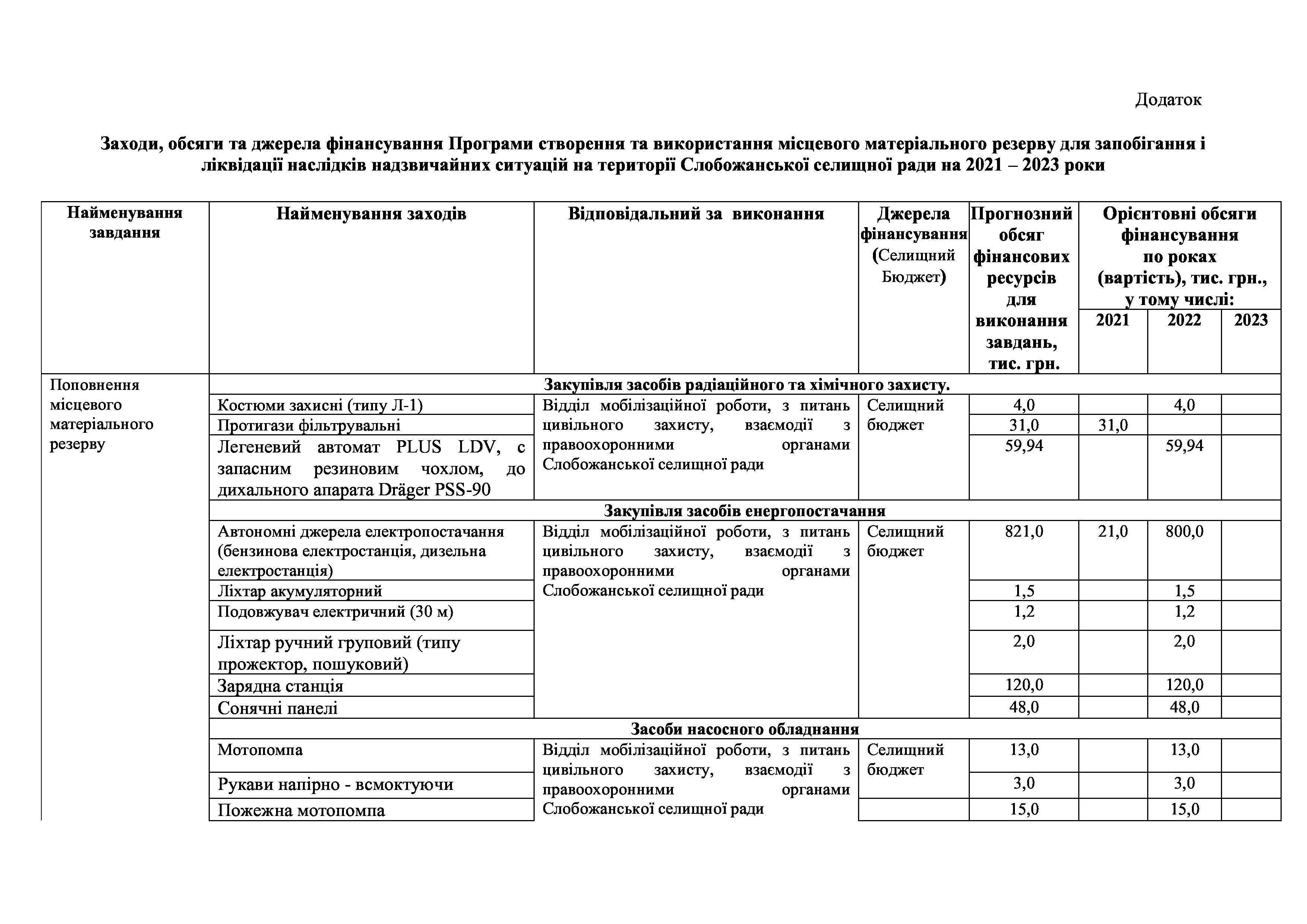 Рішення сесії №1764-VIII Про внесення змін до Програми створення та використання місцевого матеріального резерву для запобігання і ліквідації наслідків надзвичайних ситуацій на території Слобожанської селищної ради на 2021-2025 роки.