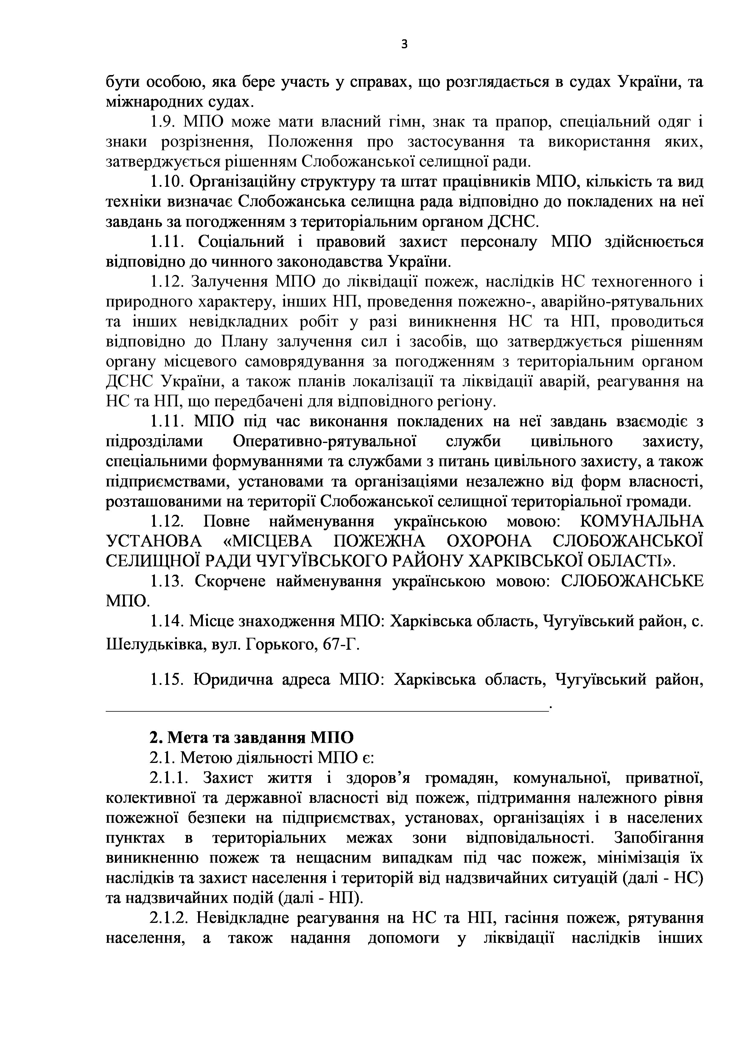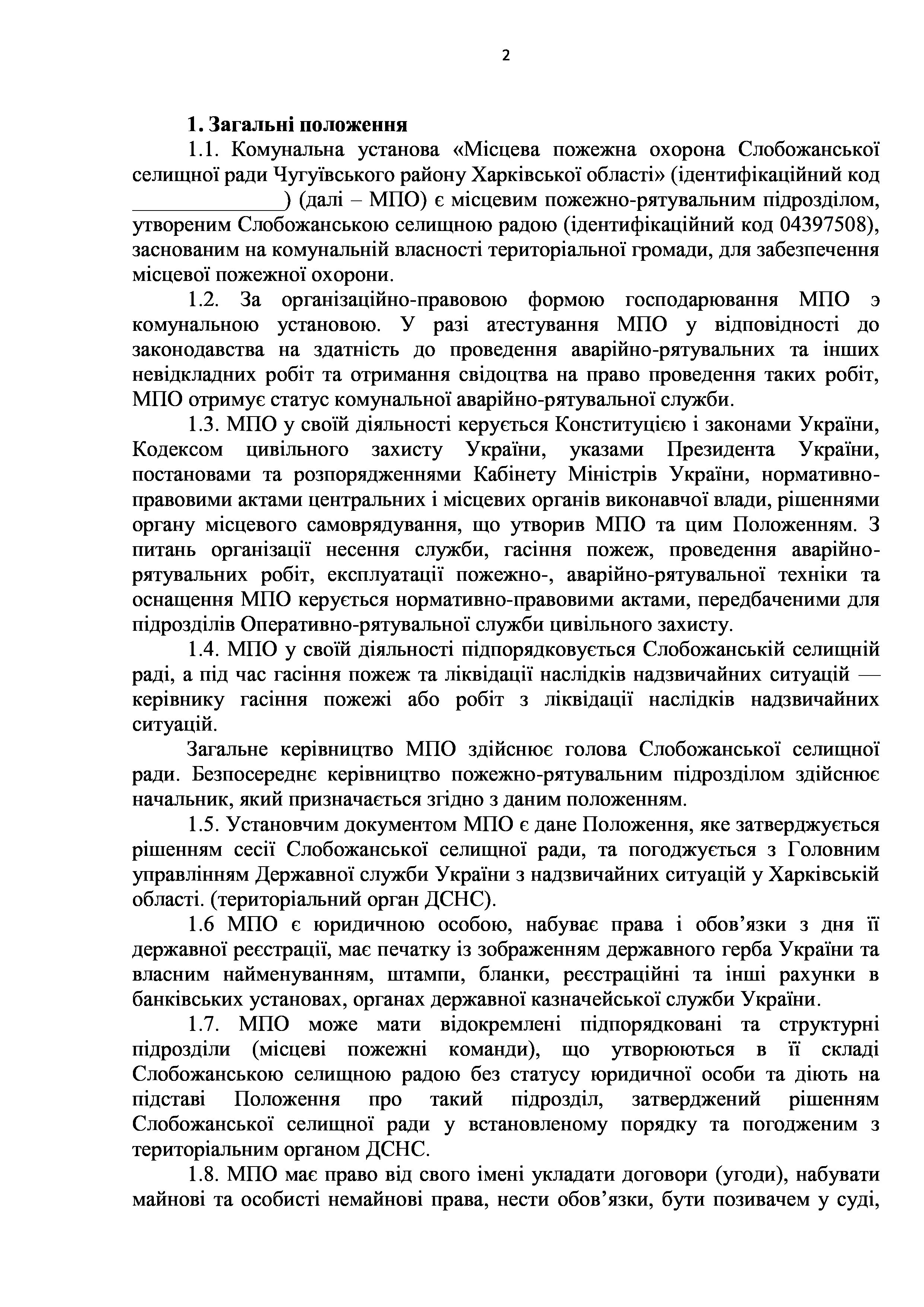 Рішення сесії №1766-VIII Про затвердження Положення про комунальну установу «Місцева пожежна охорона Слобожанської селищної ради Чугуївського району Харківської області».