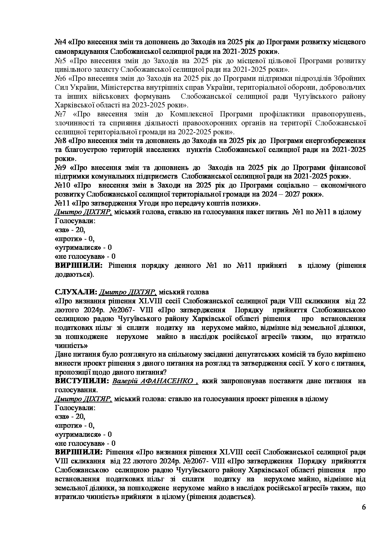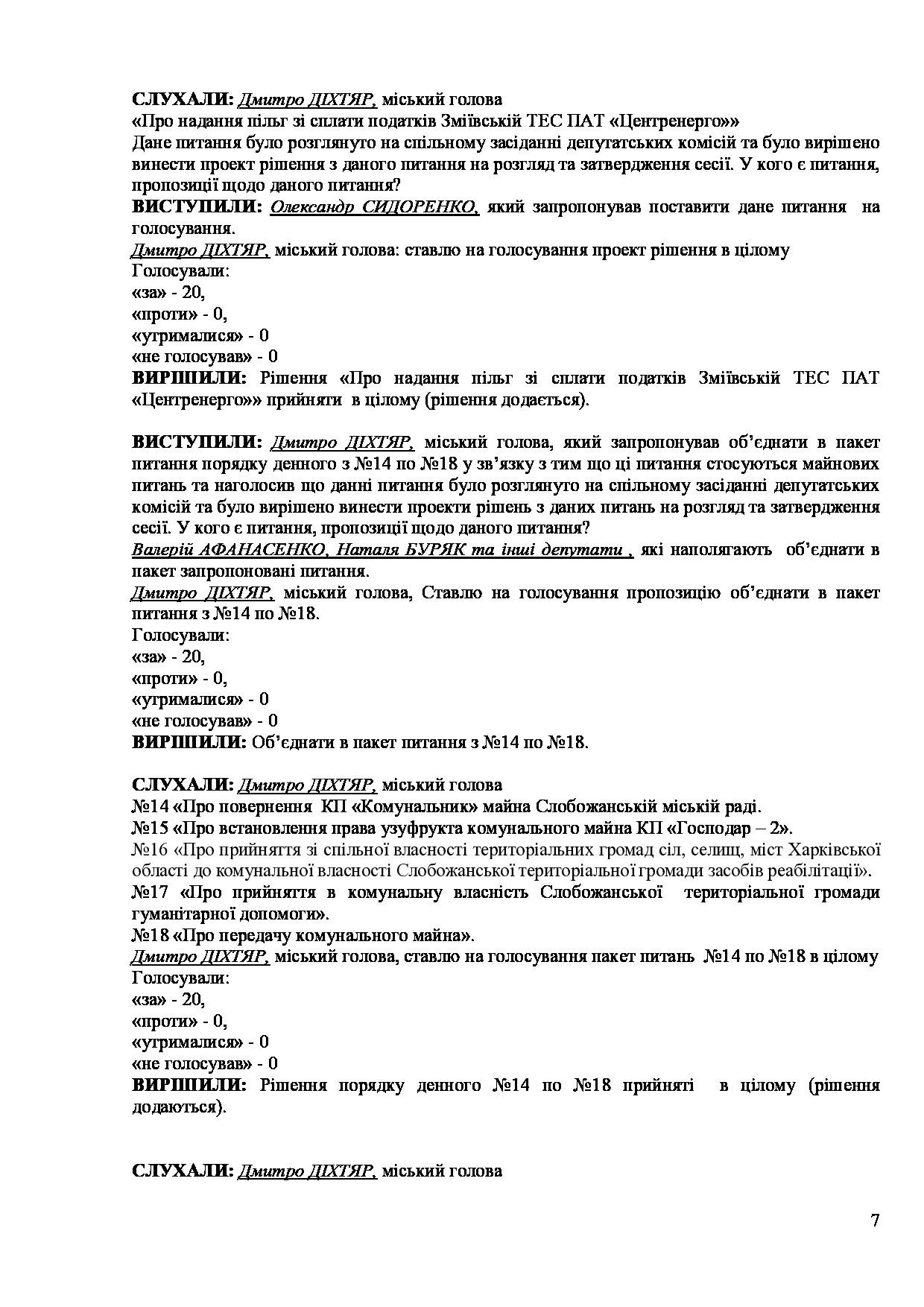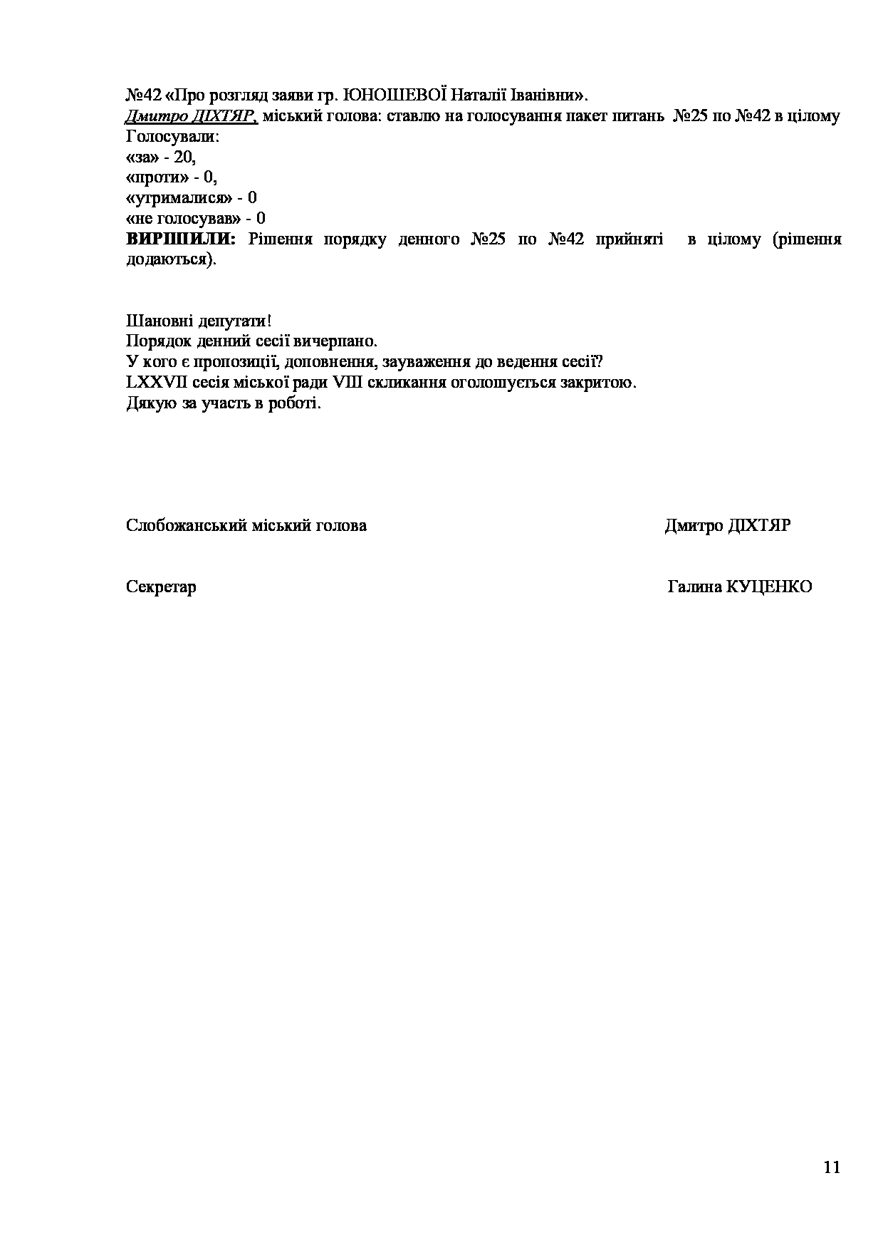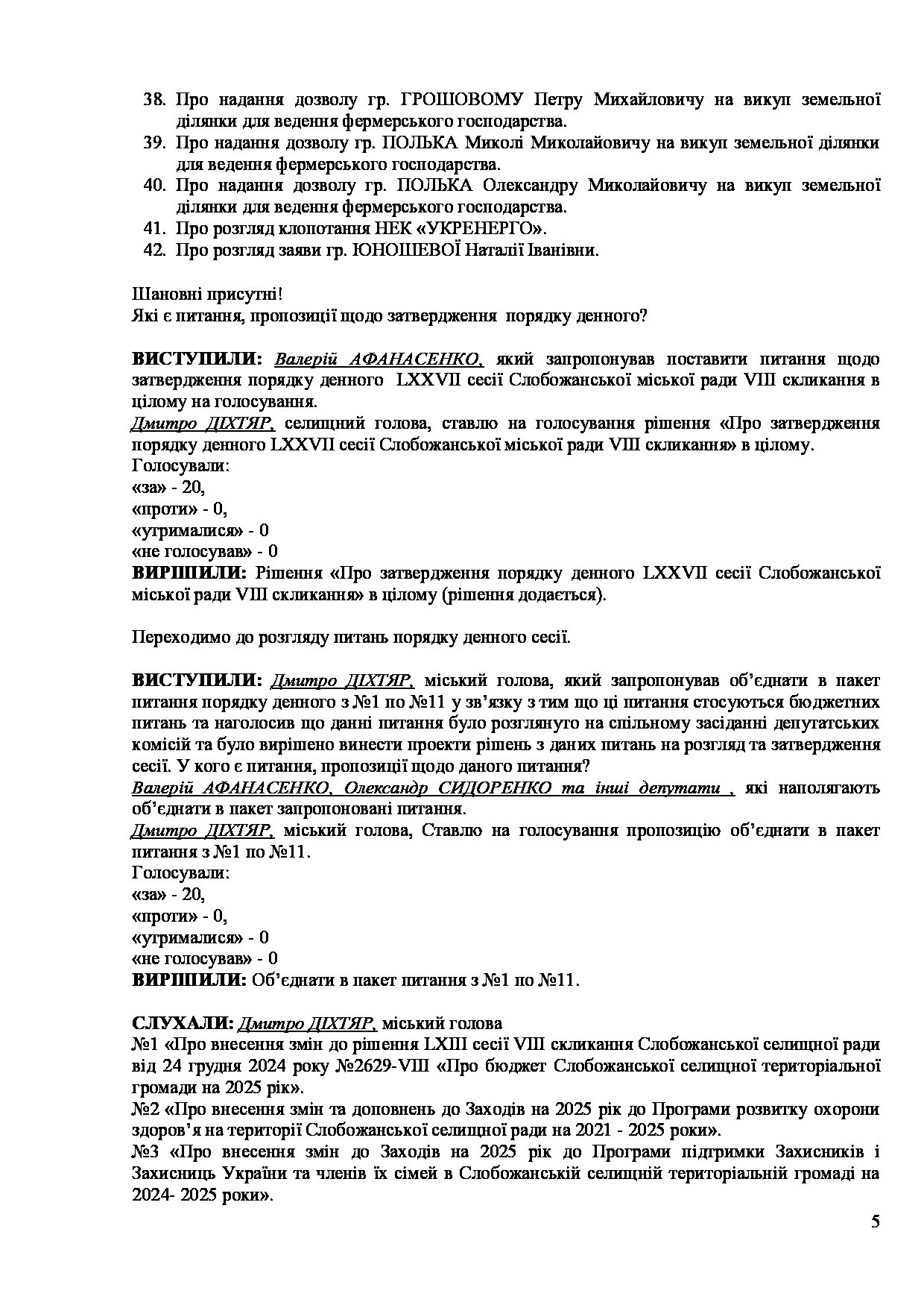Протокол № 77 засідання LХXVII сесії Слобожанської міської ради VIII скликання Чугуївського району Харківської області