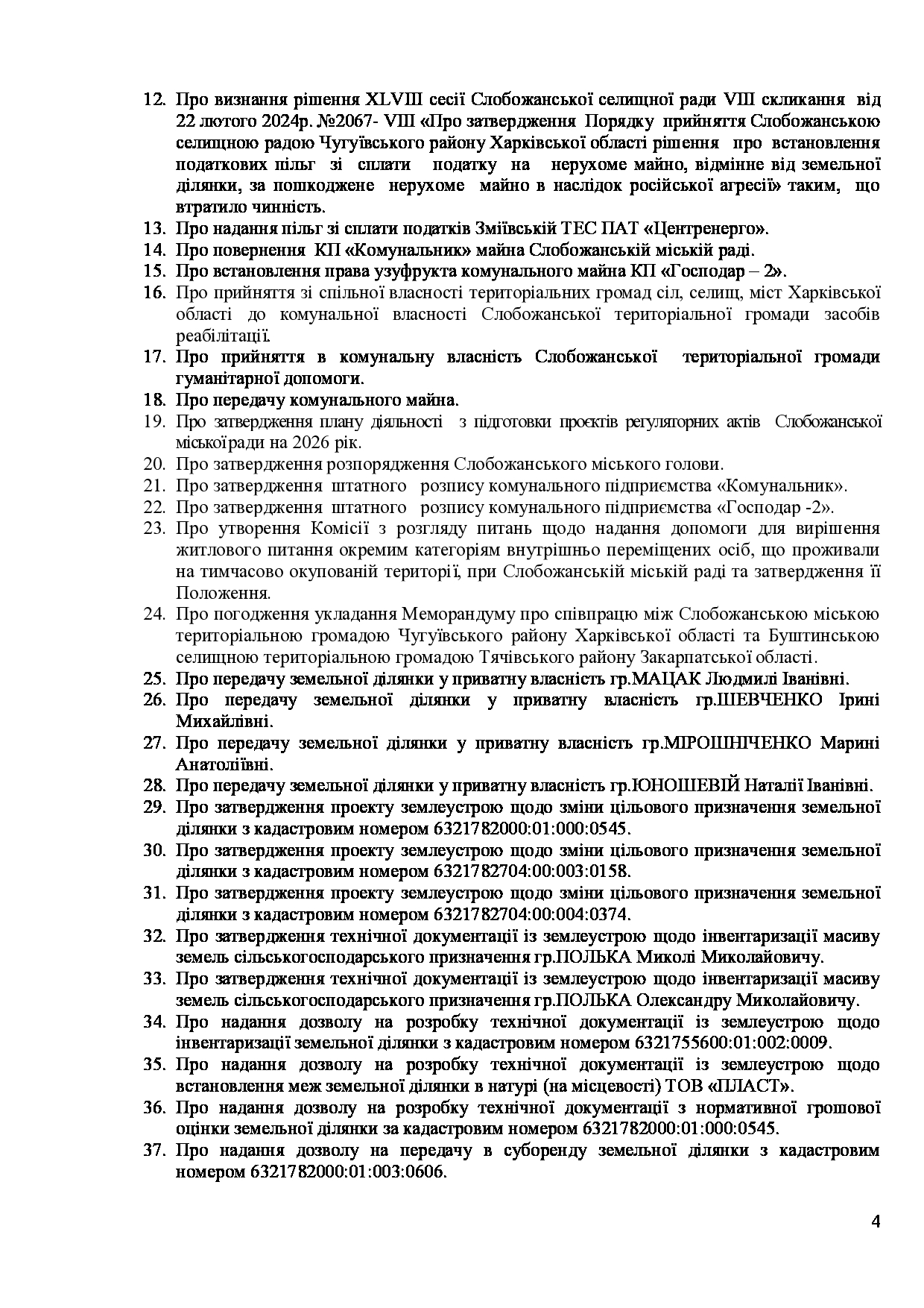 • Засідання LXXVII сесії Слобожанської міської ради VIII скликання 18.11.2025 року