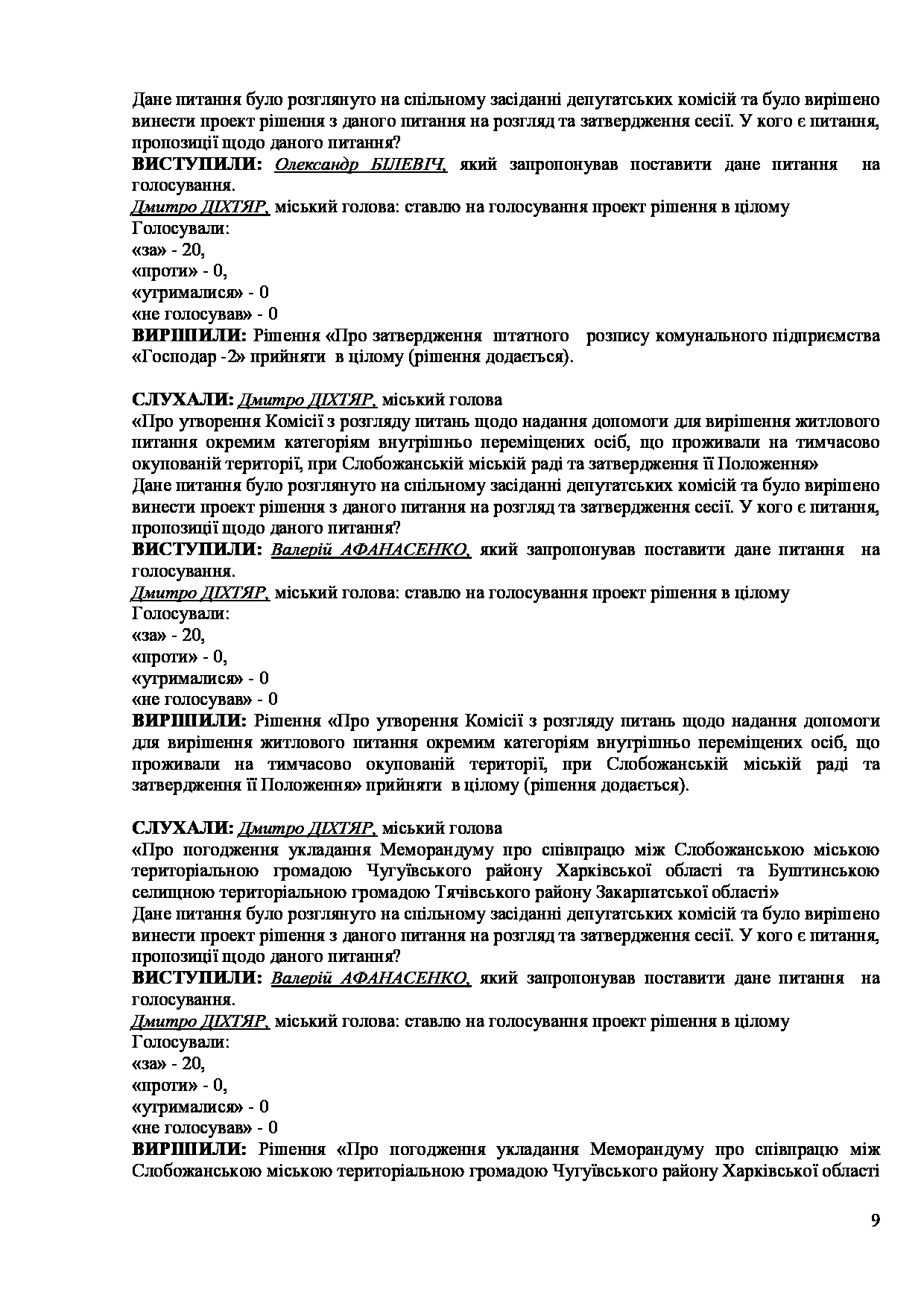 • Протокол № 76 засідання LХXVI сесії Слобожанської міської ради VIII скликання Чугуївського району Харківської області