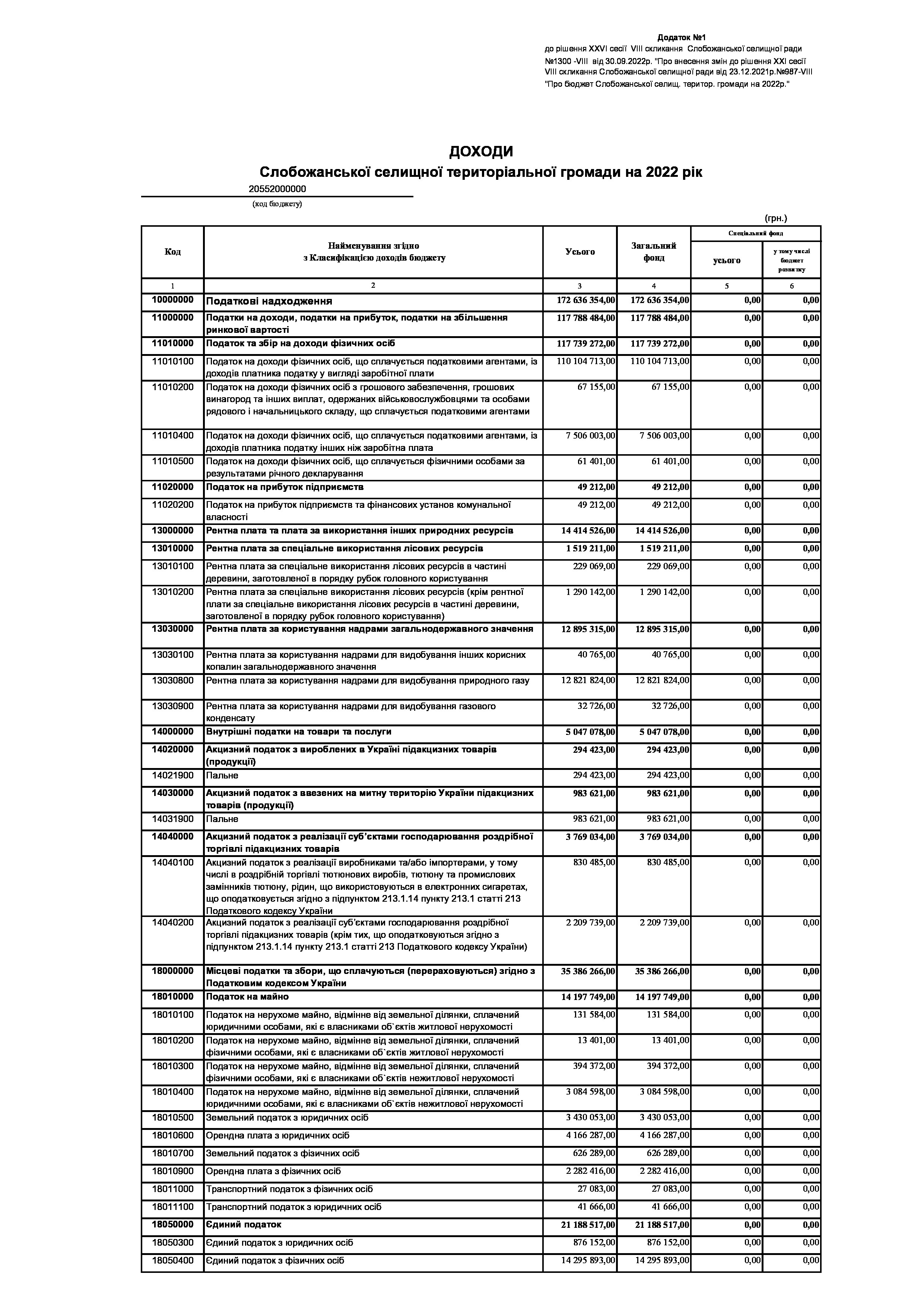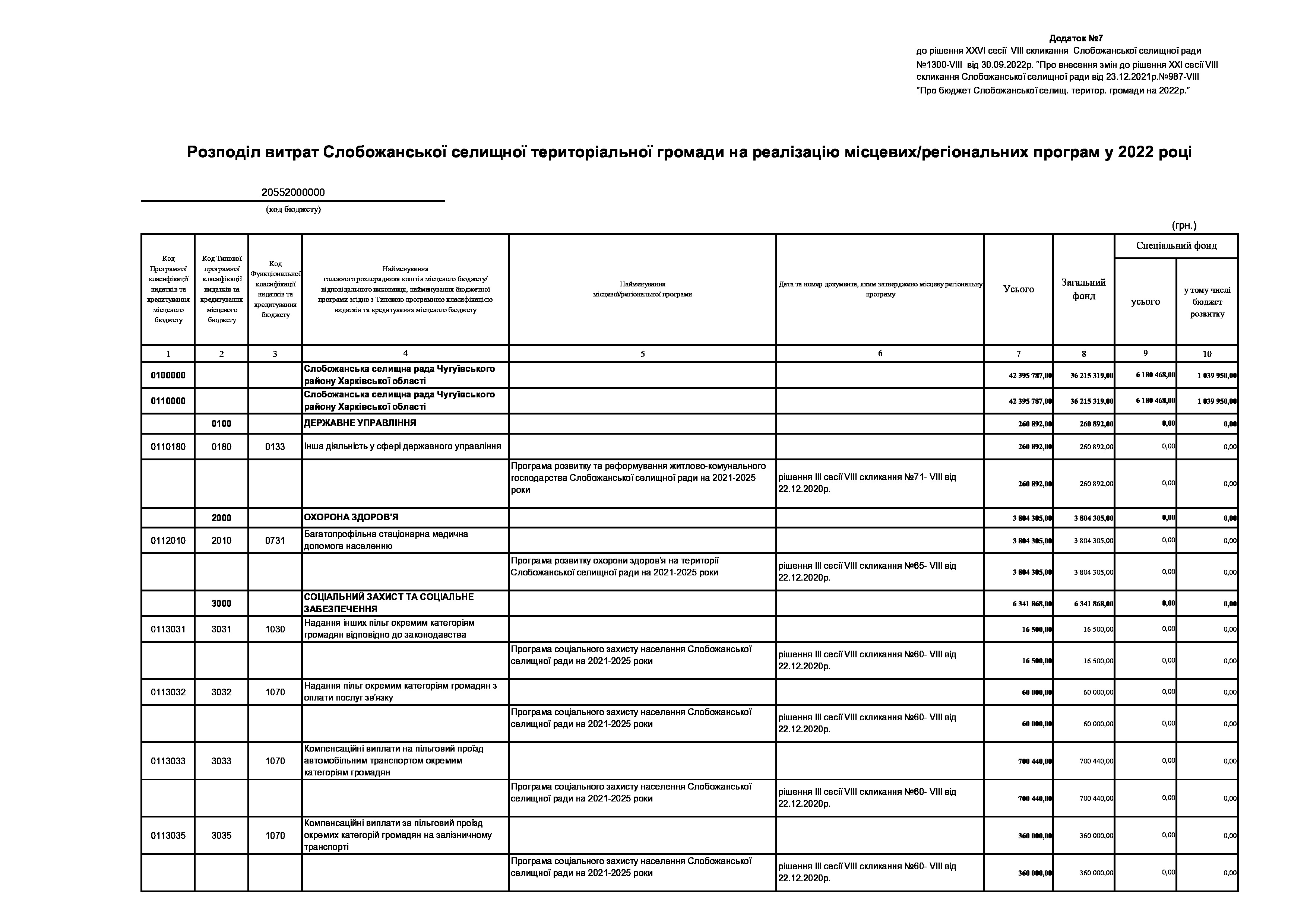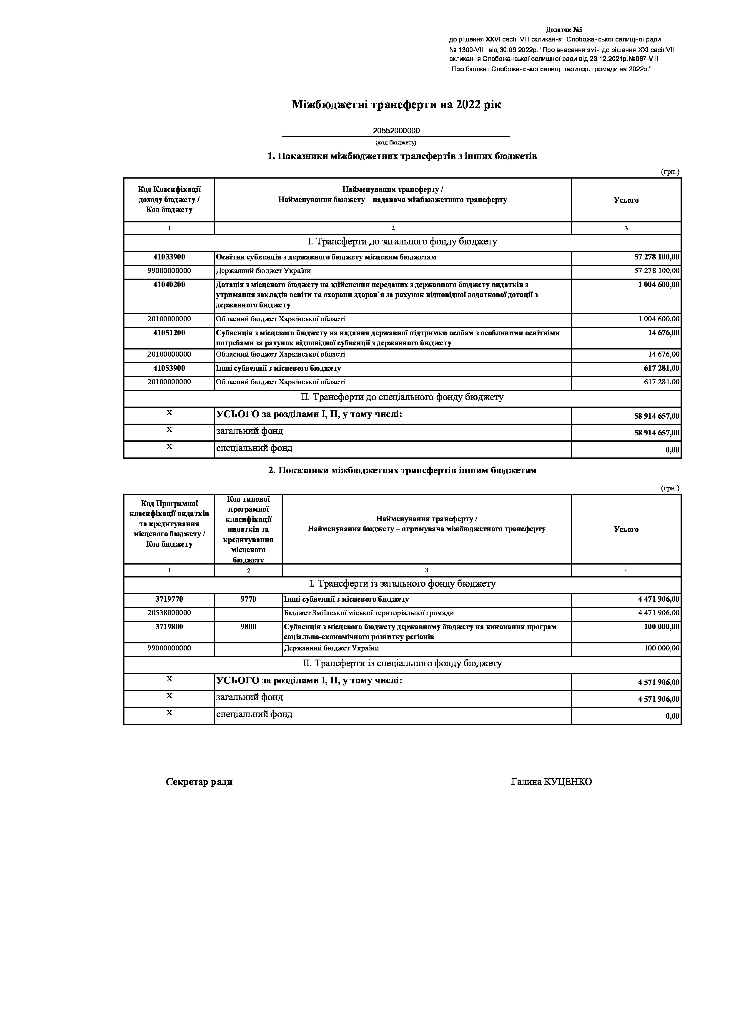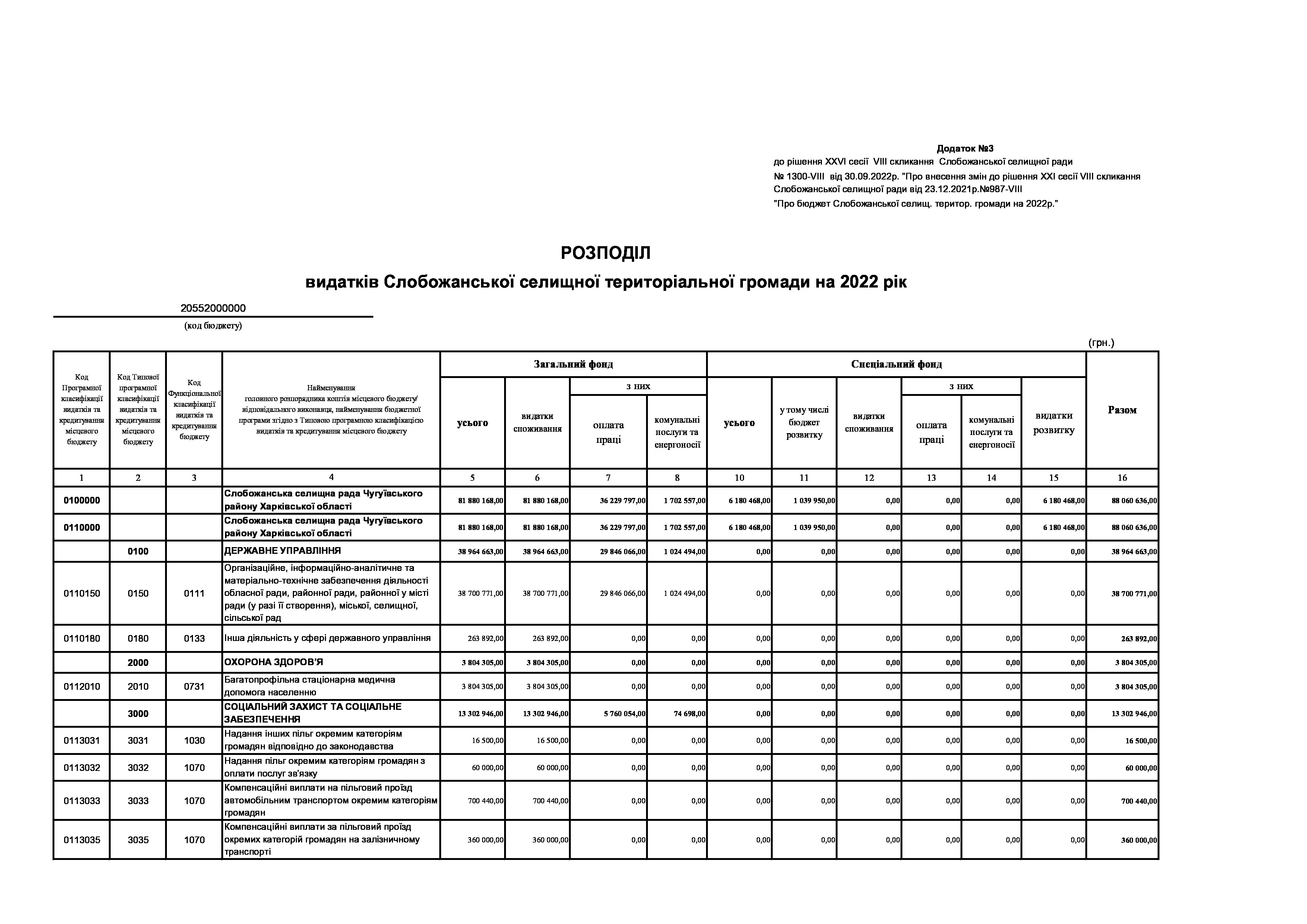 Рішення сесії №1300-VIII Про внесення змін до рішення ХХІ сесії VIІI скликання Слобожанської селищної ради від 23 грудня 2021 року №987-VIІI «Про бюджет Слобожанської селищної територіальної громади на 2022 рік».