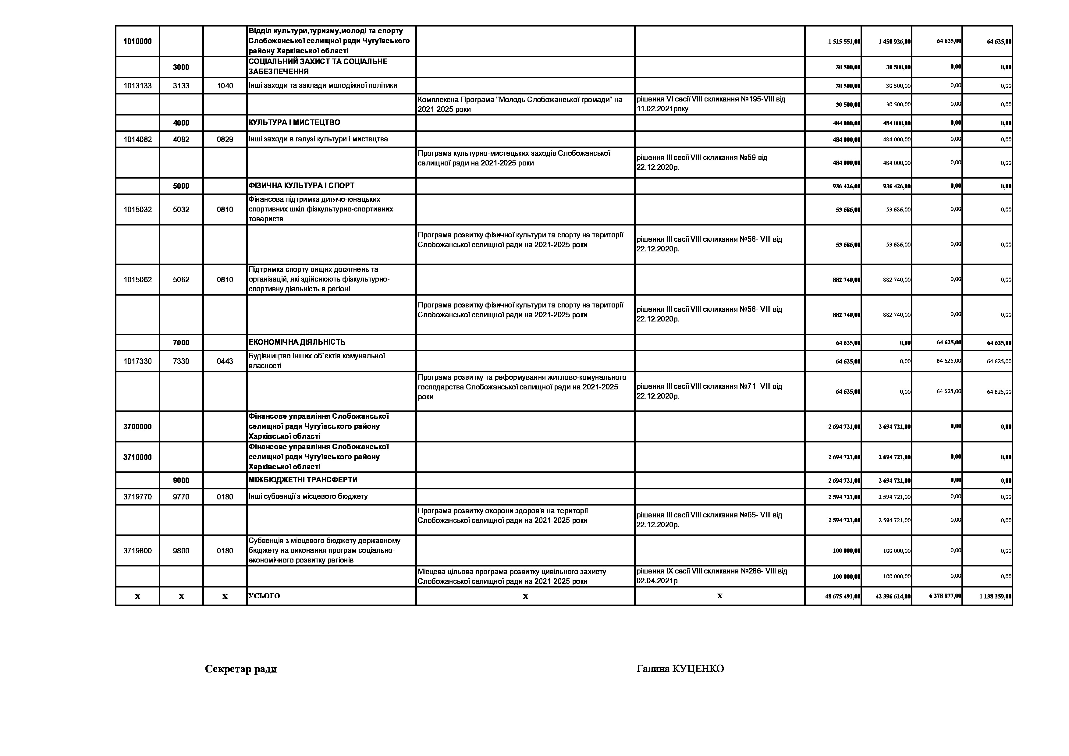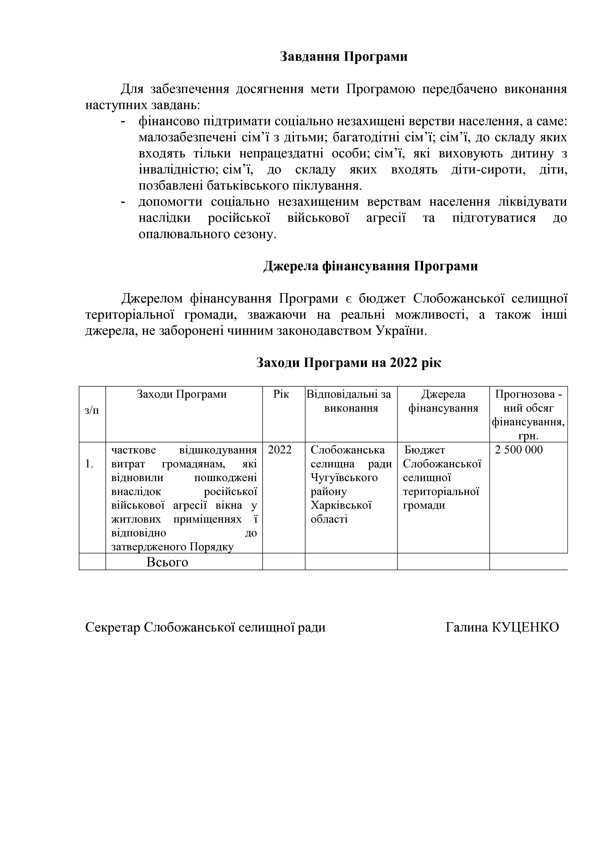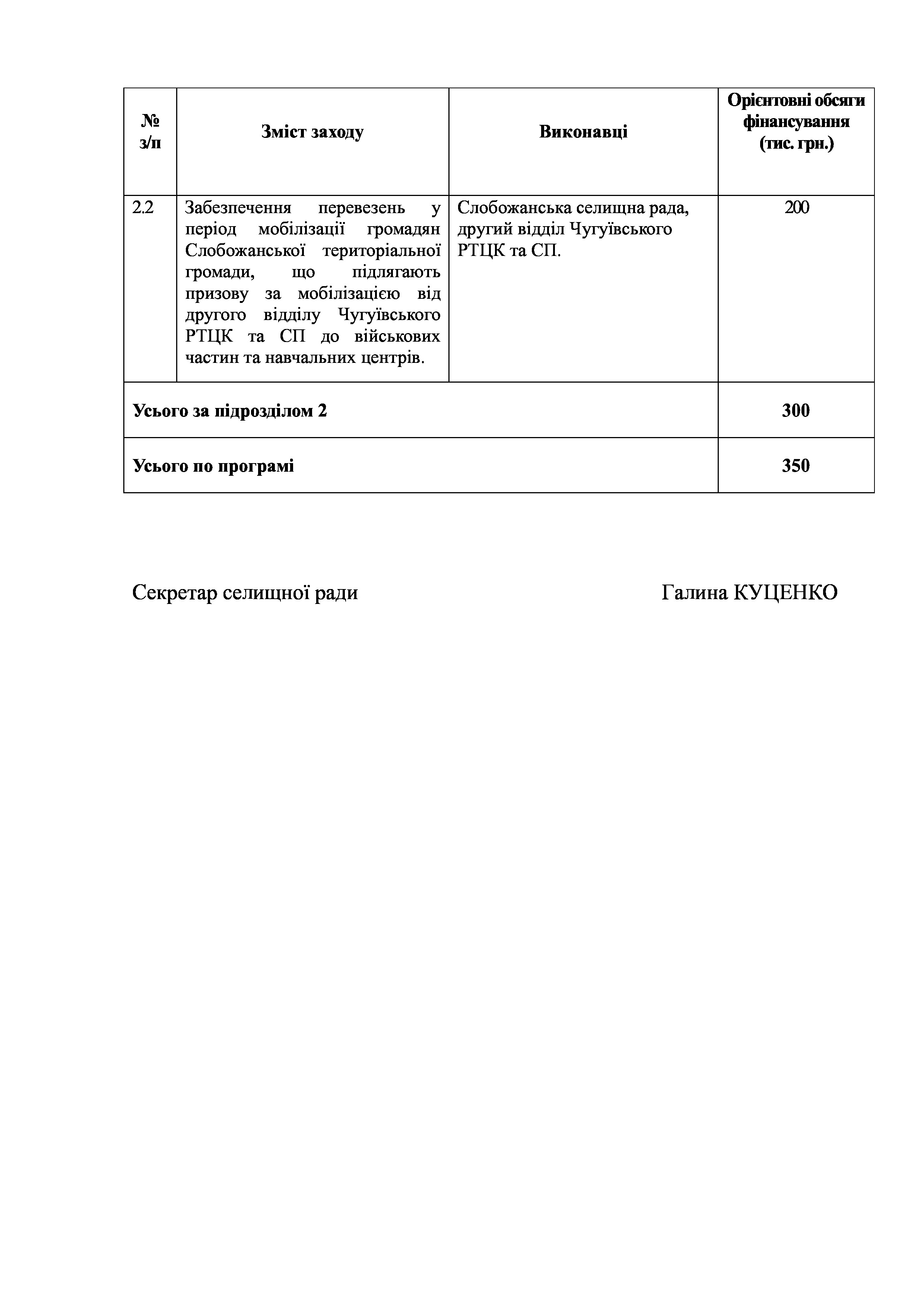 Рішення сесії №1311-VIII Про затвердження Програми сприяння проведення мобілізаційних заходів на території Слобожанської селищної ради Чугуївського району Харківської області на 2022 рік.
