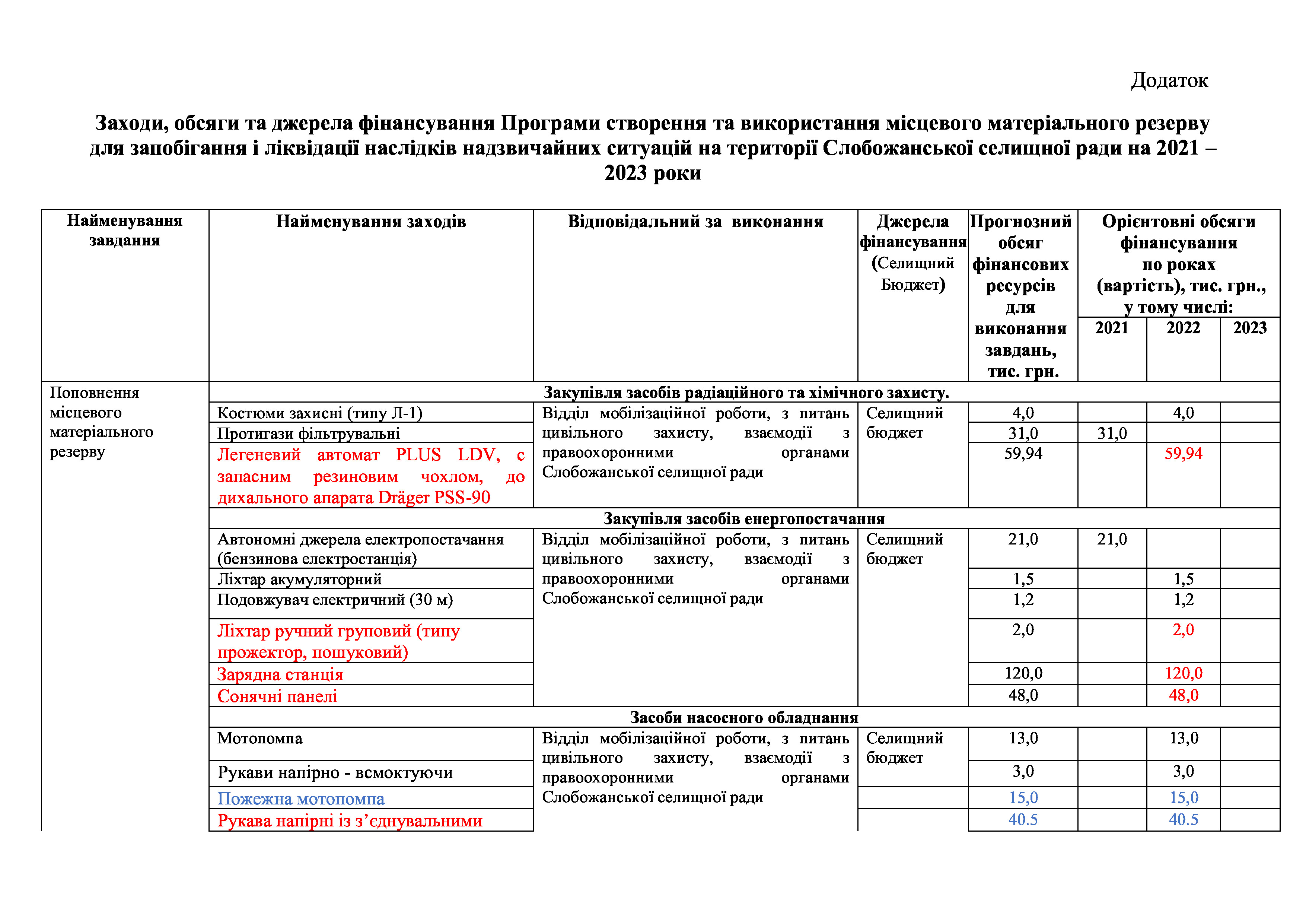 Рішення сесії №1307-VIII Про внесення змін до Програми створення та використання місцевого матеріального резерву для запобігання і ліквідації наслідків надзвичайних ситуацій на території Слобожанської селищної ради на 2021 – 2023 роки.