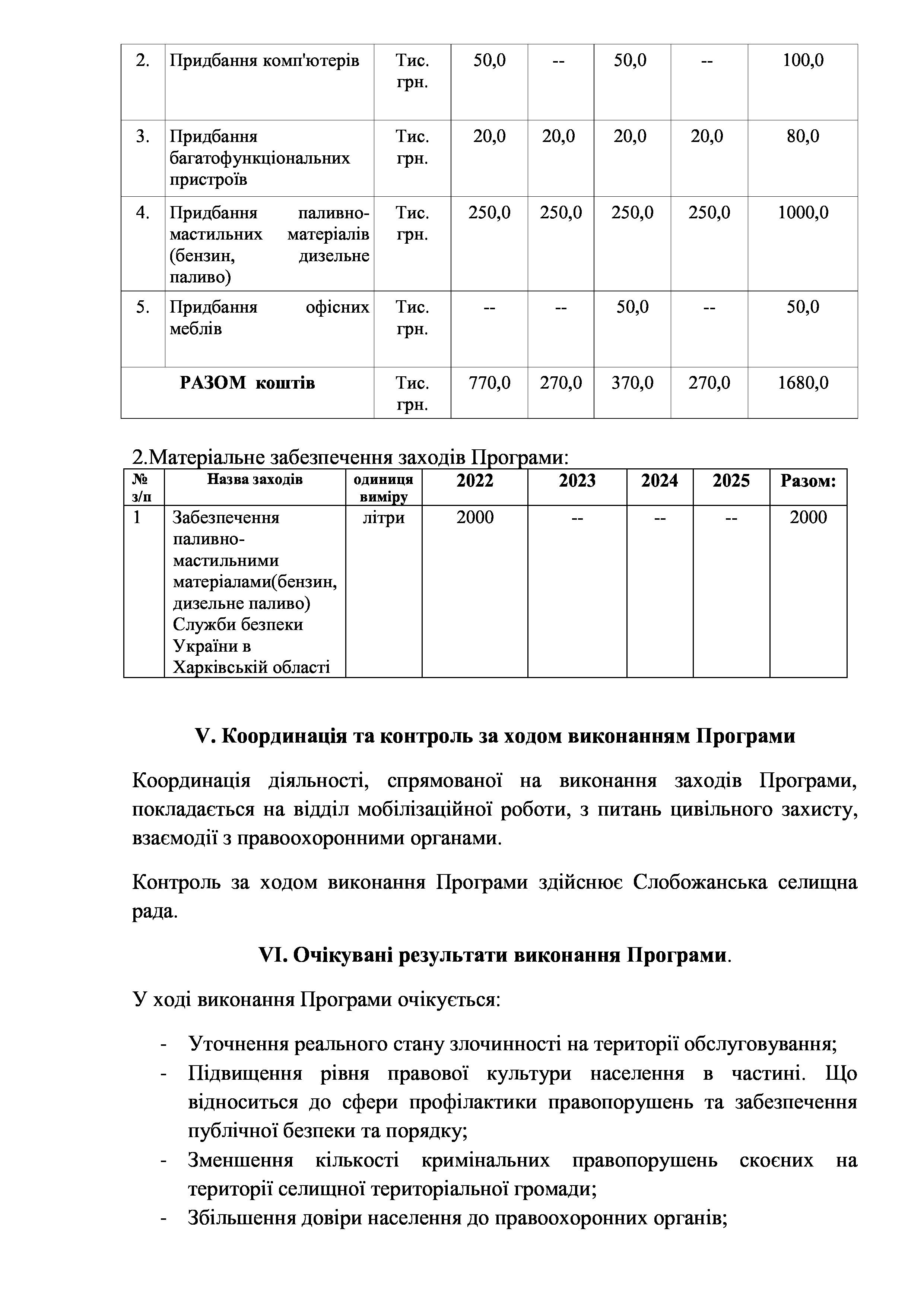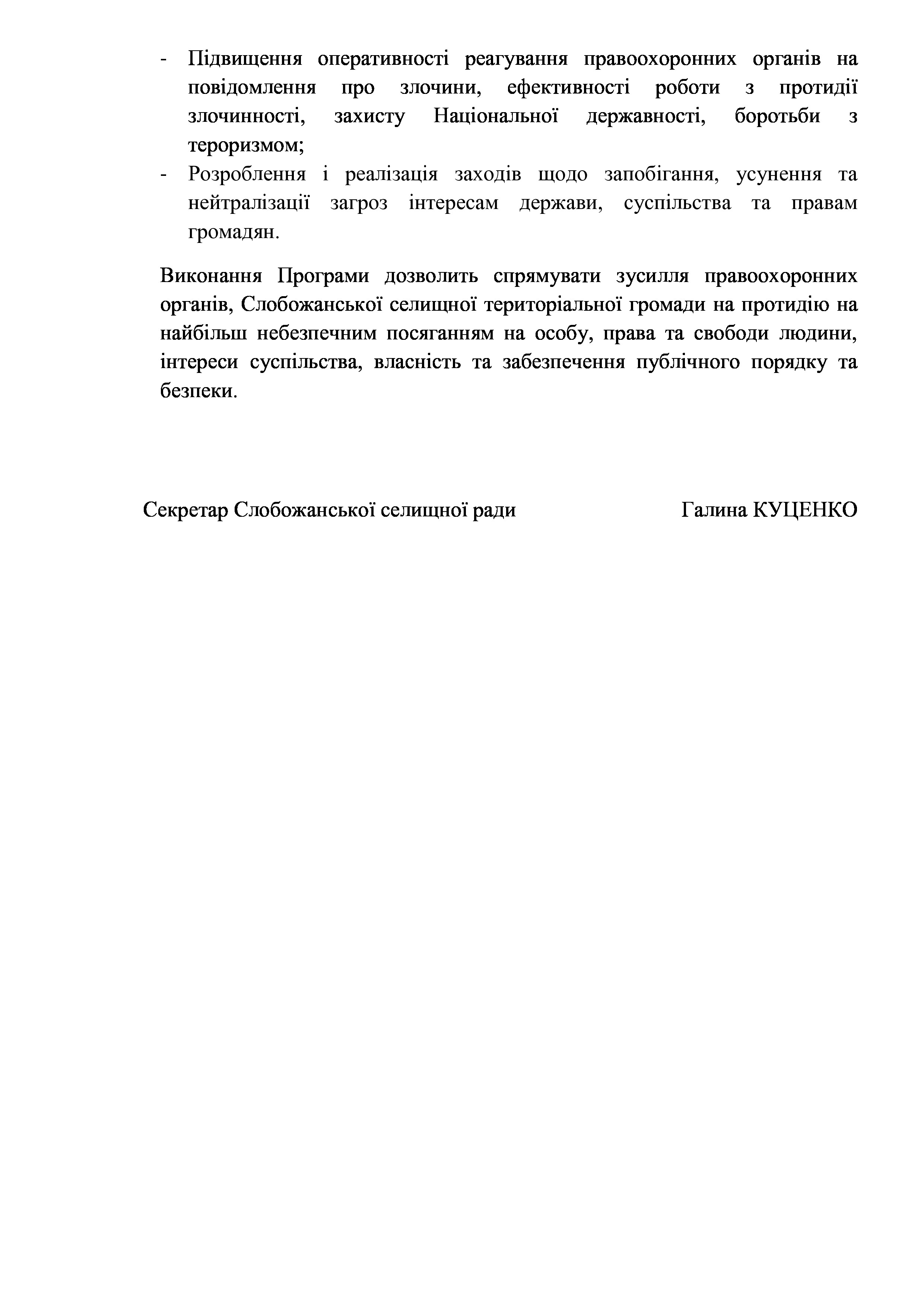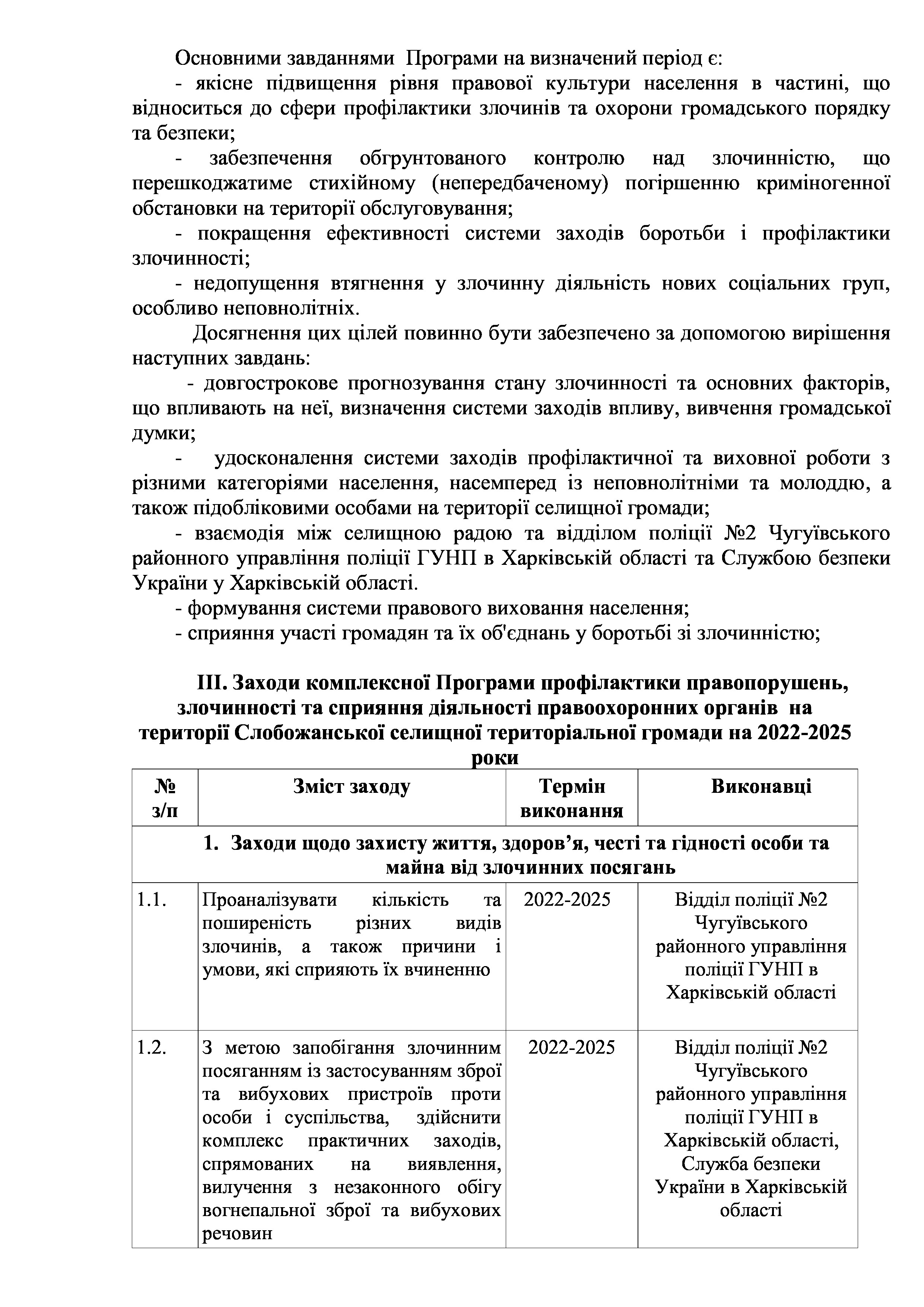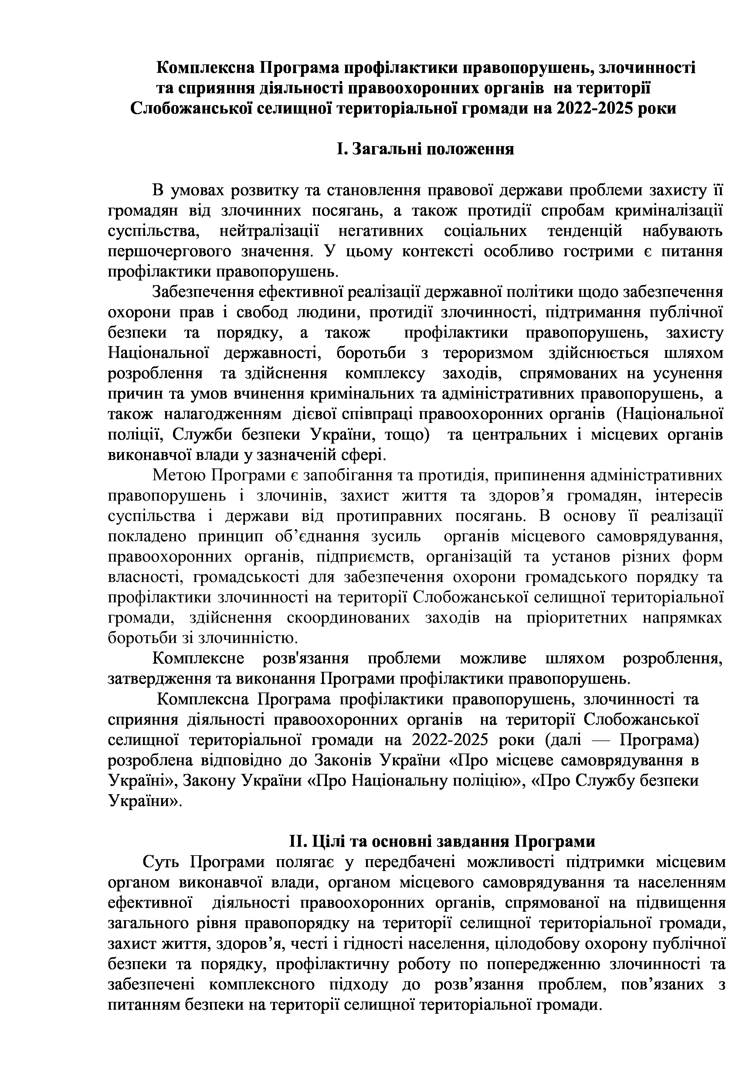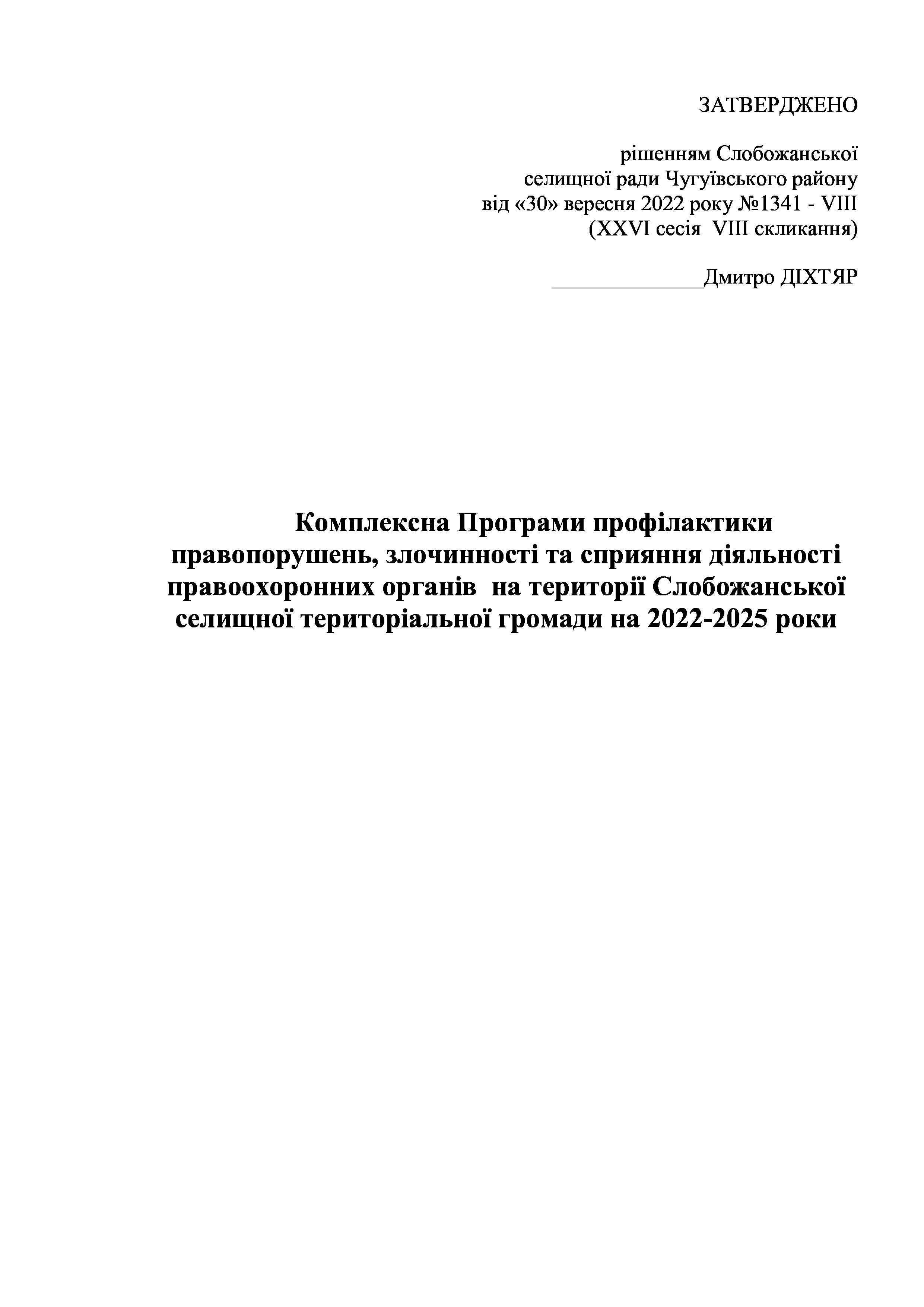 Рішення сесії №1341-VIII Про затвердження Комплексної Програми профілактики правопорушень, злочинності та сприяння діяльності правоохоронних органів на території Слобожанської селищної територіальної громади на 2022-2025 роки.