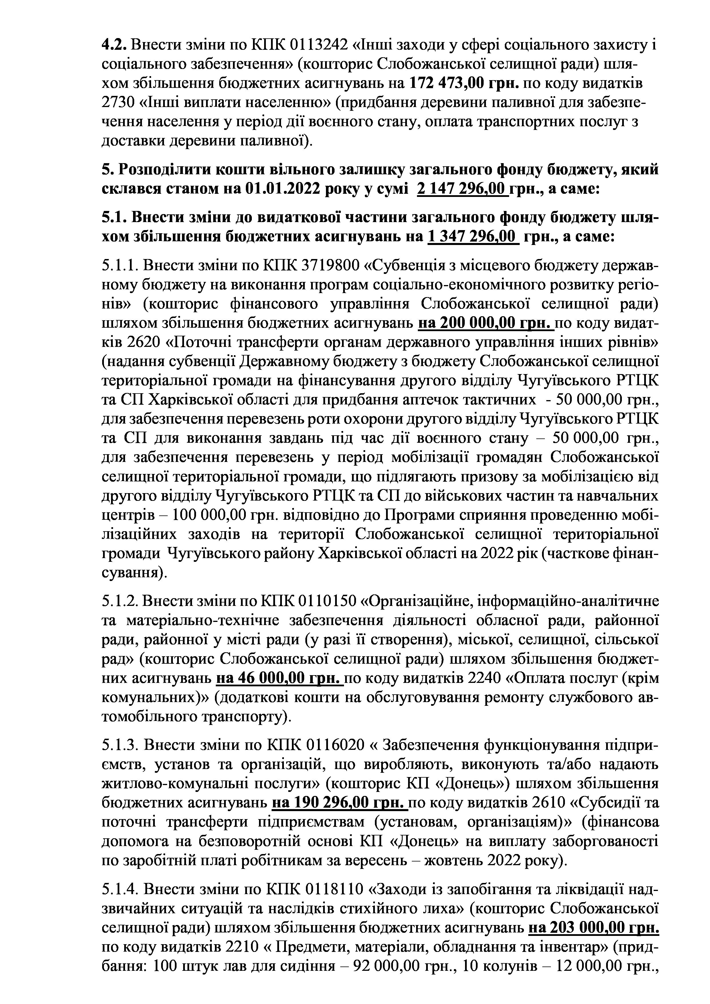 Рішення сесії №1355-VIII Про внесення змін до рішення ХХІ сесії VIІI скликання Слобожанської селищної ради від 23 грудня 2021 року №987-VIІI «Про бюджет Слобожанської селищної територіальної громади на 2022 рік».
