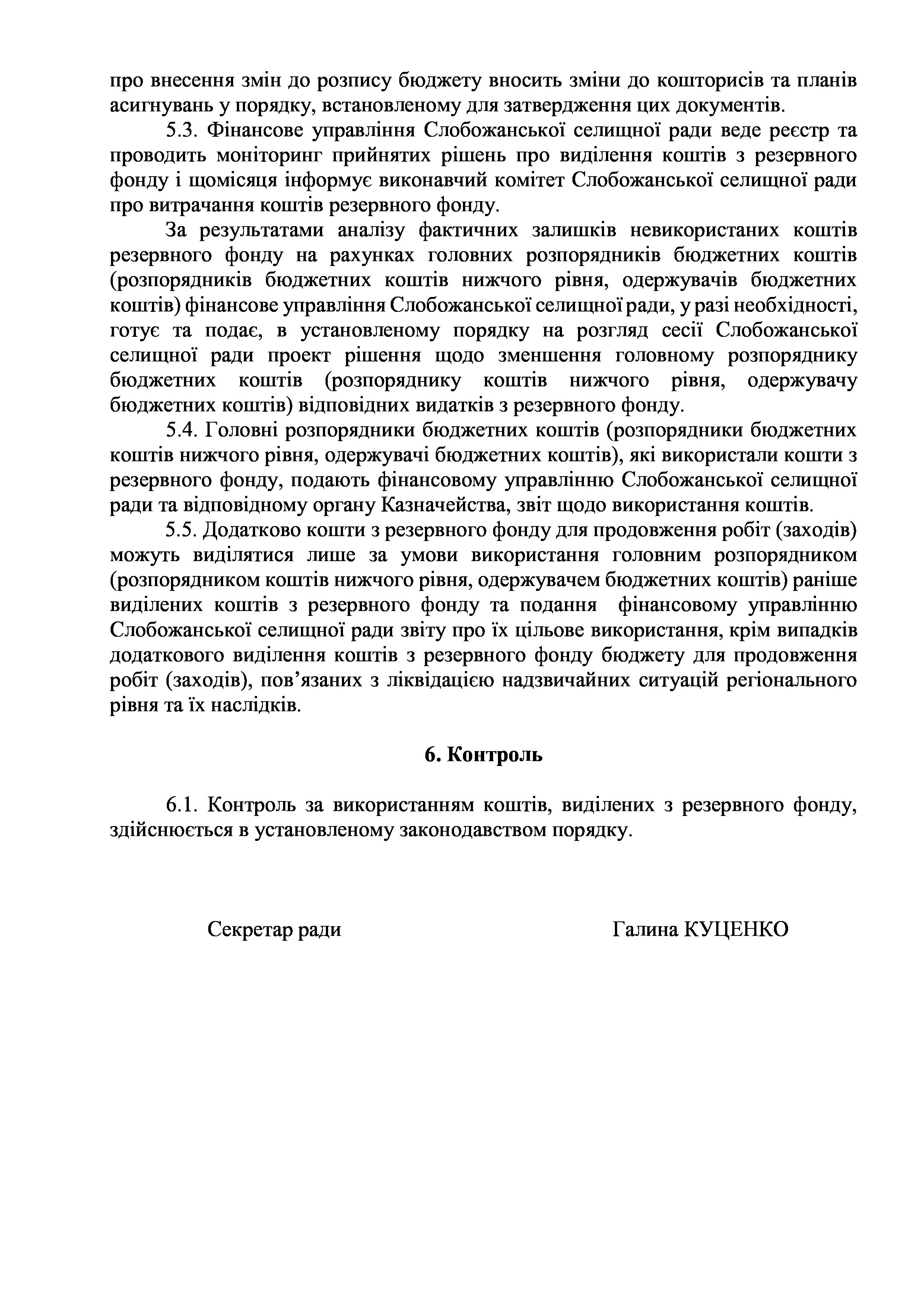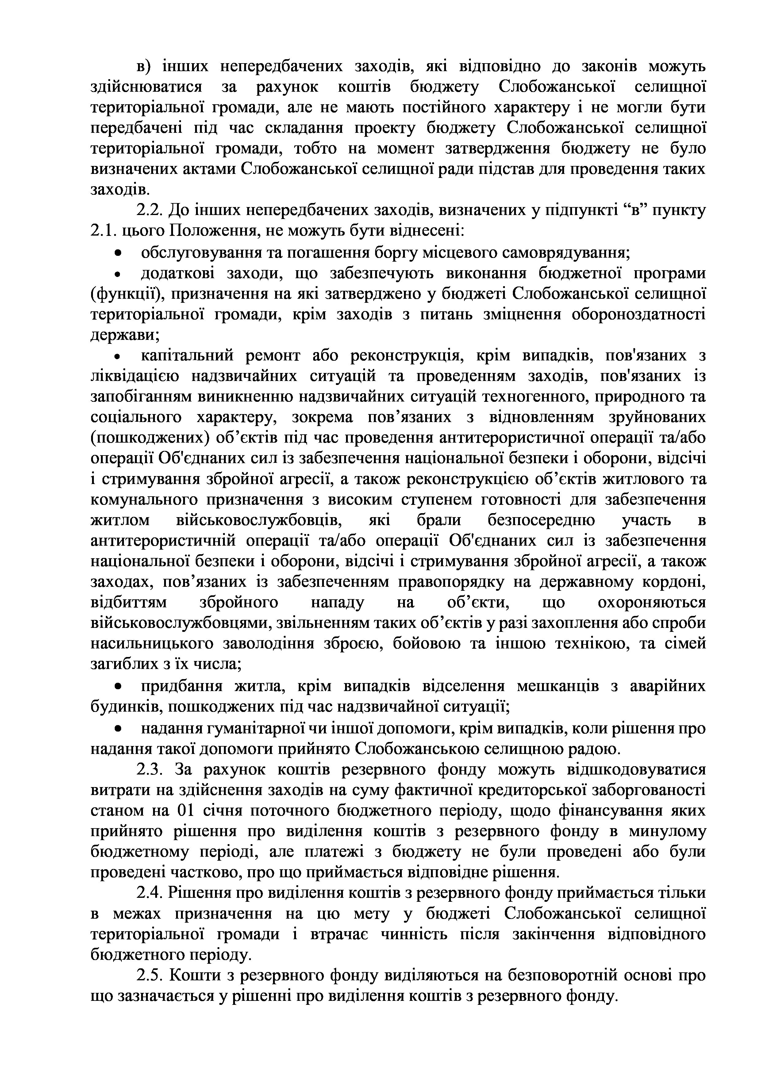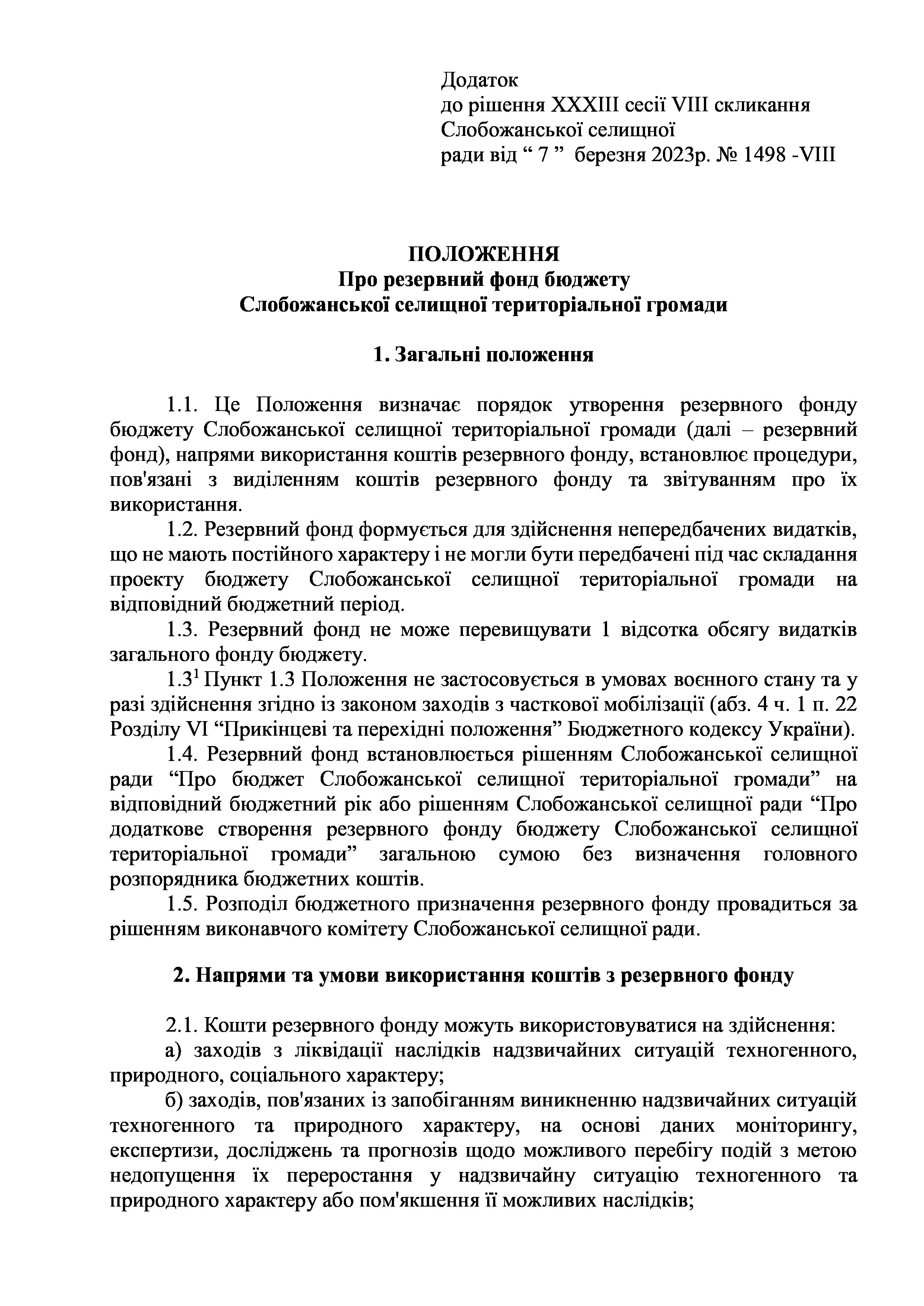 Рішення сесії №1498-VIII Про затвердження Положення про резервний фонд бюджету Слобожанської селищної територіальної громади.