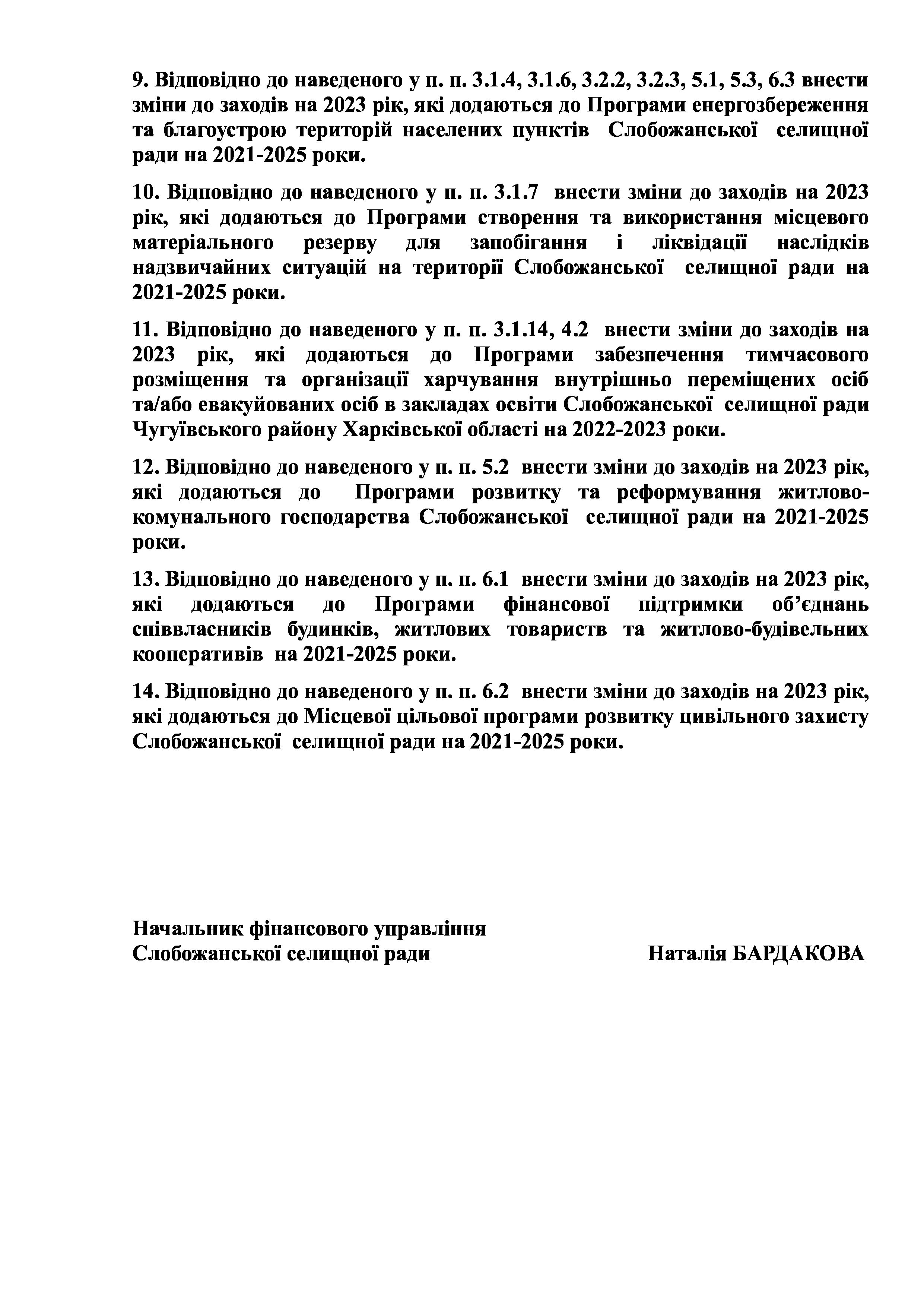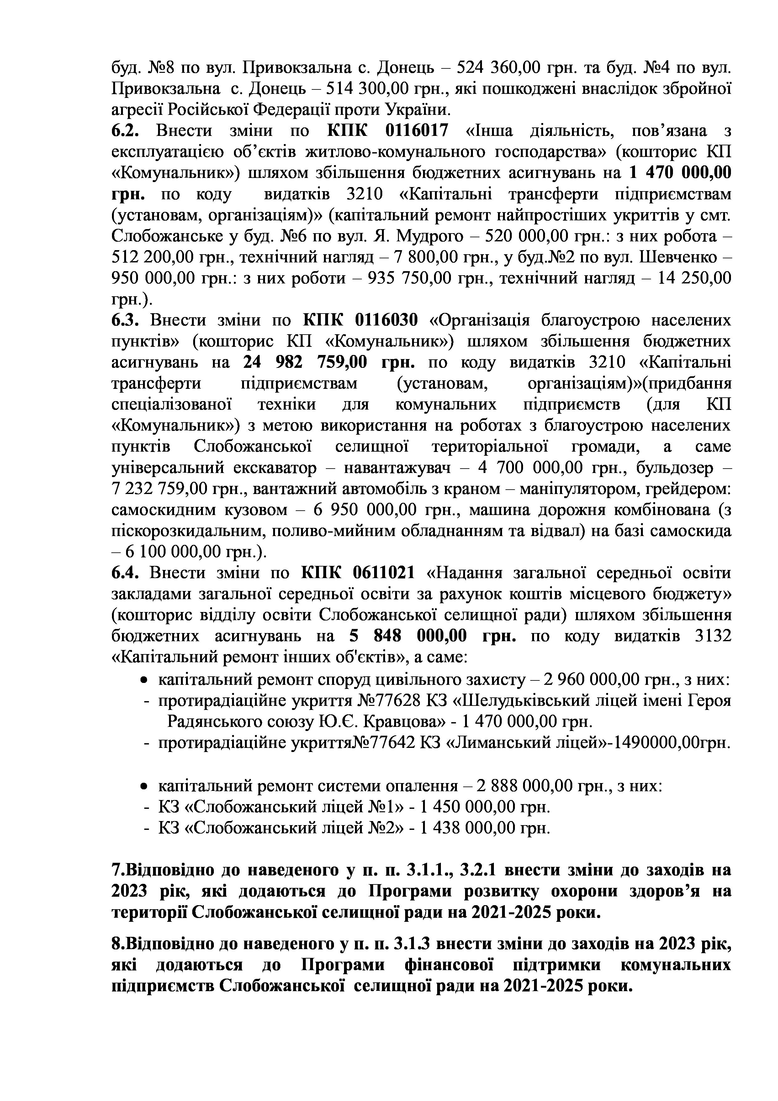 Рішення сесії №1511-VIII Про внесення змін та доповнень до Заходів на 2023 рік до Програми розвитку і реформування житлово-комунального господарства Слобожанської селищної ради на 2021-2025 роки.