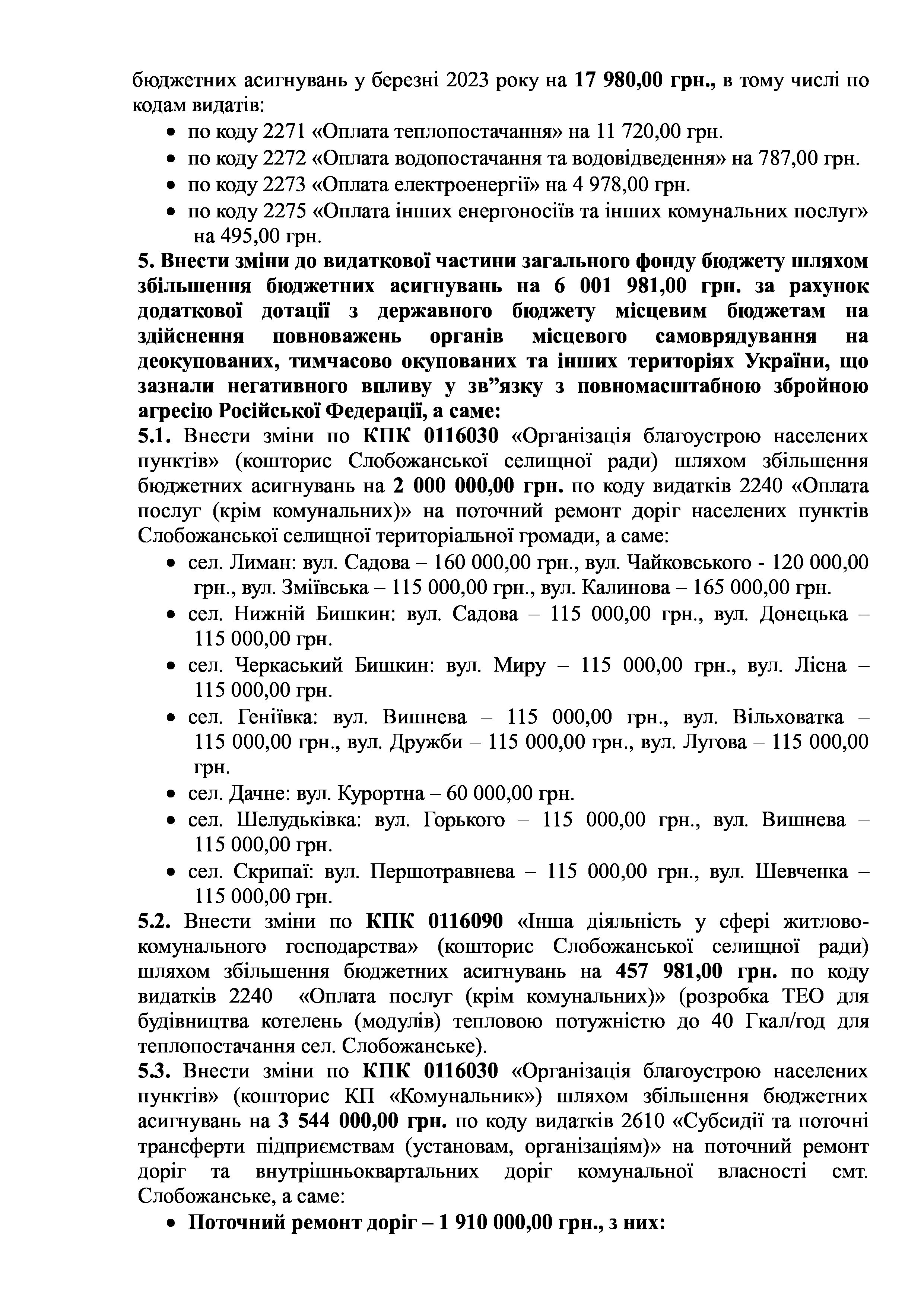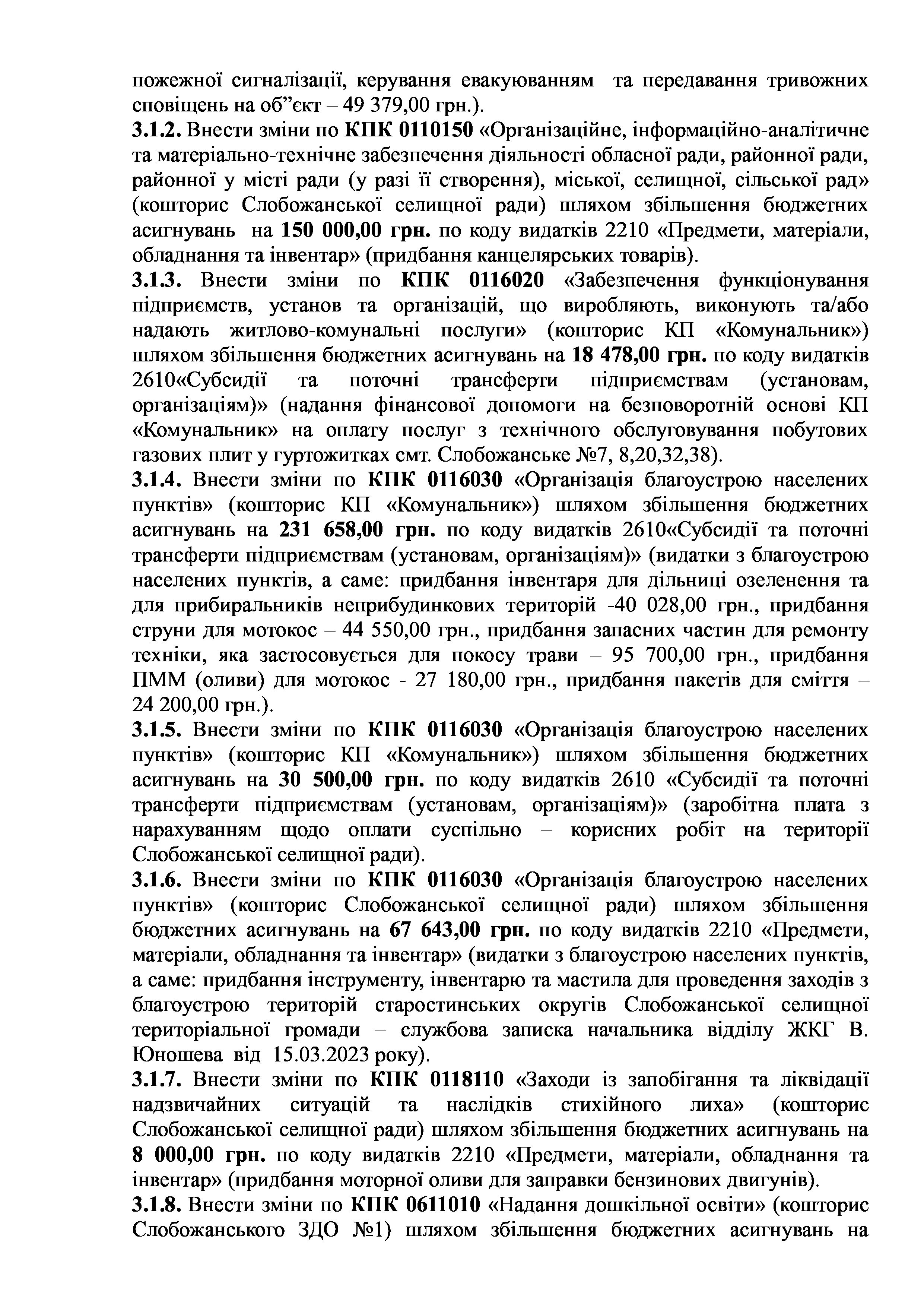Рішення сесії №1510-VIII Про внесення змін та доповнень до Заходів на 2023 рік до Програми енергозбереження та благоустрою територій населених пунктів Слобожанської селищної ради на 2021-2025 роки.