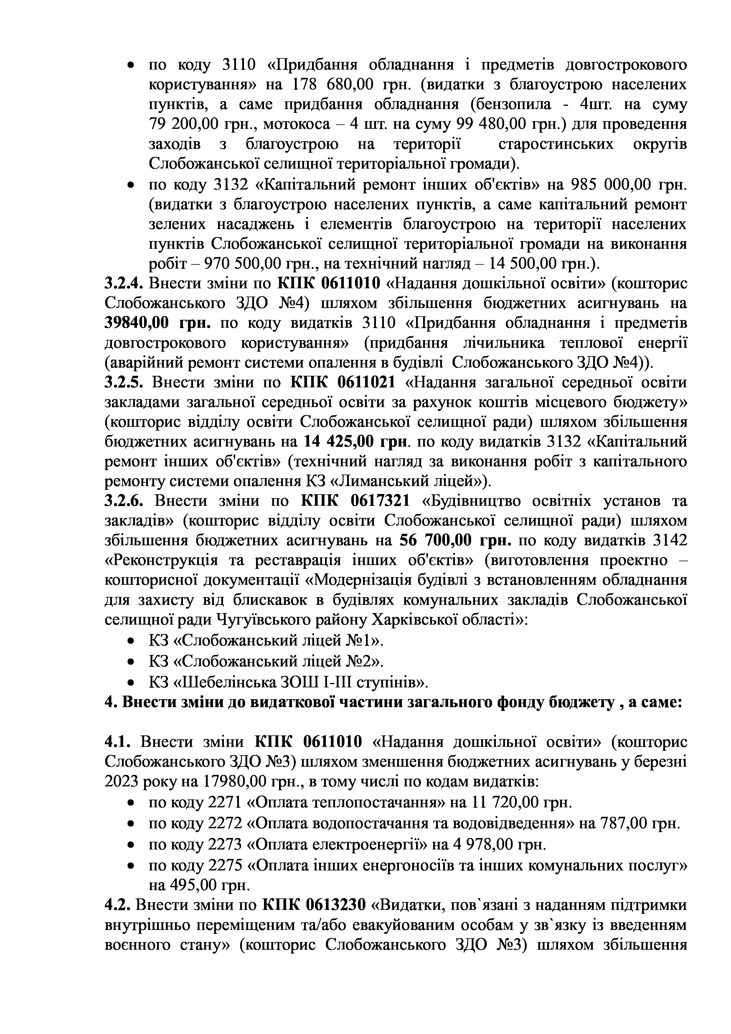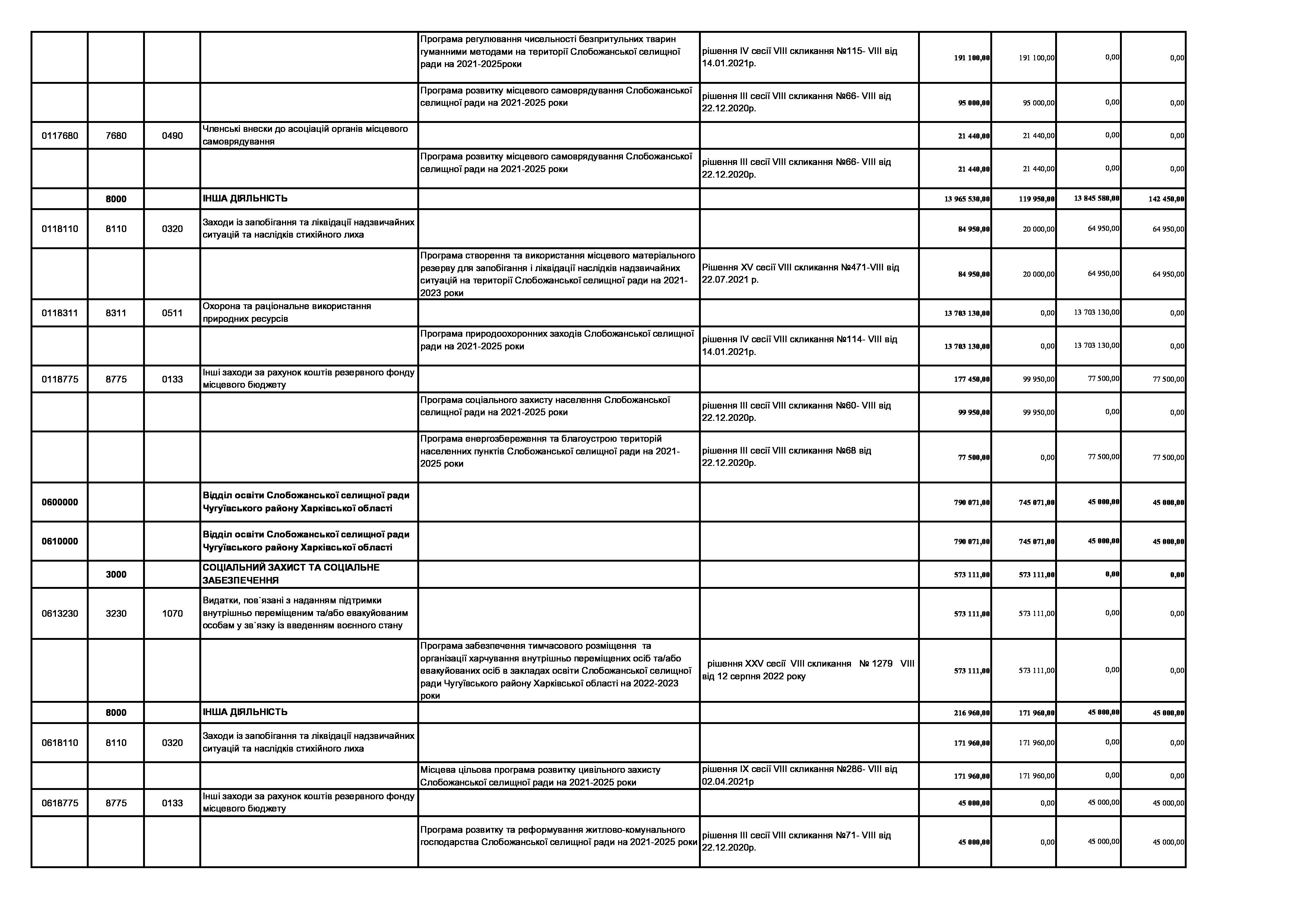 Рішення сесії №1512-VIII Про внесення змін до Заходів на 2023 рік до Програми забезпечення тимчасового розміщення та організації харчування внутрішньо переміщених осіб та/або евакуйованих осіб, які перемістилися на територію Слобожанської селищної територіальної громади після 24.02.2022 р., в закладах освіти Слобожанської селищної ради Чугуївського району Харківської області на 2022 – 2023 роки.