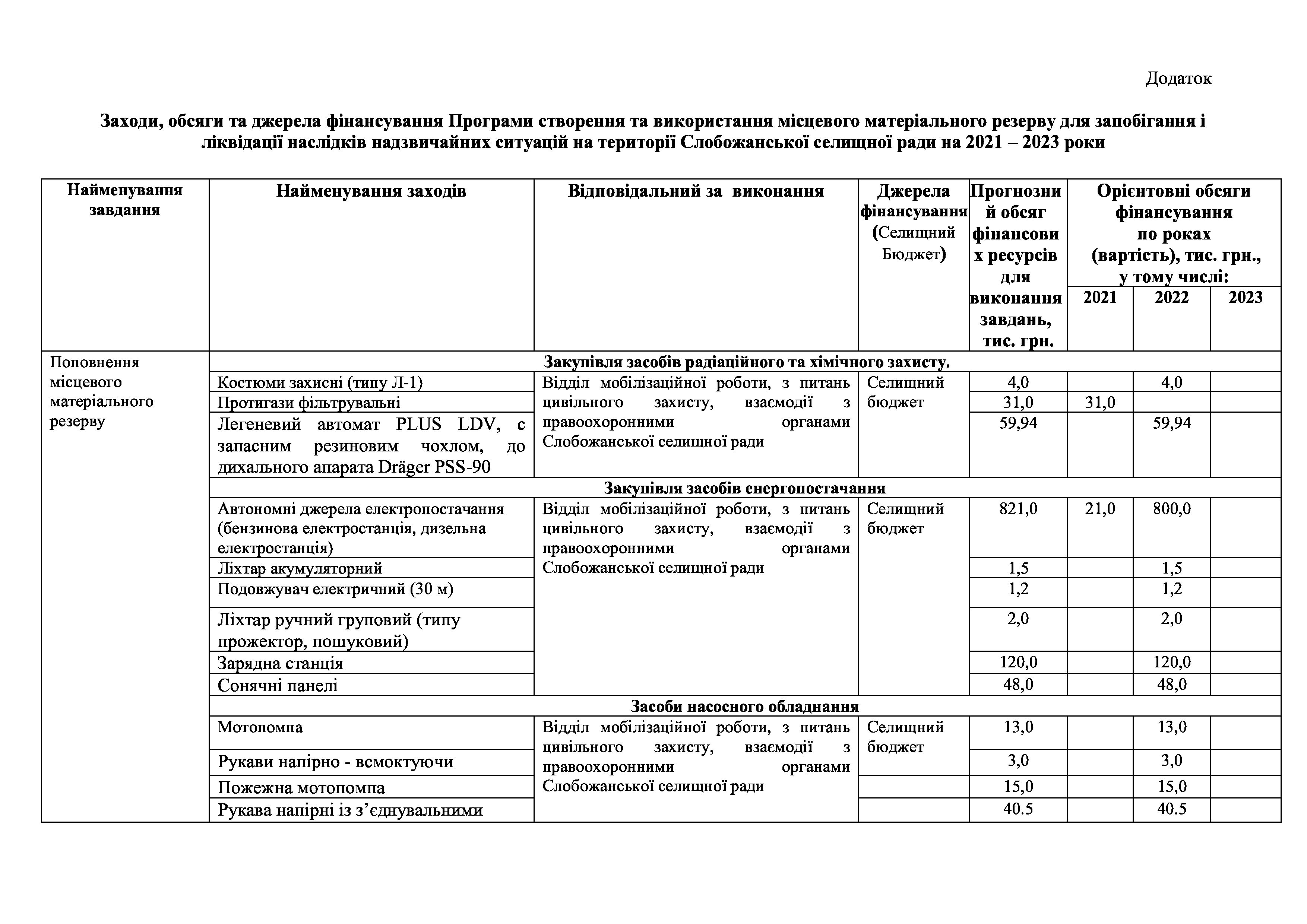 Рішення сесії №1515-VIII Про внесення змін до Програми створення та використання місцевого матеріального резерву для запобігання і ліквідації наслідків надзвичайних ситуацій на території Слобожанської селищної ради на 2021 – 2023 роки.