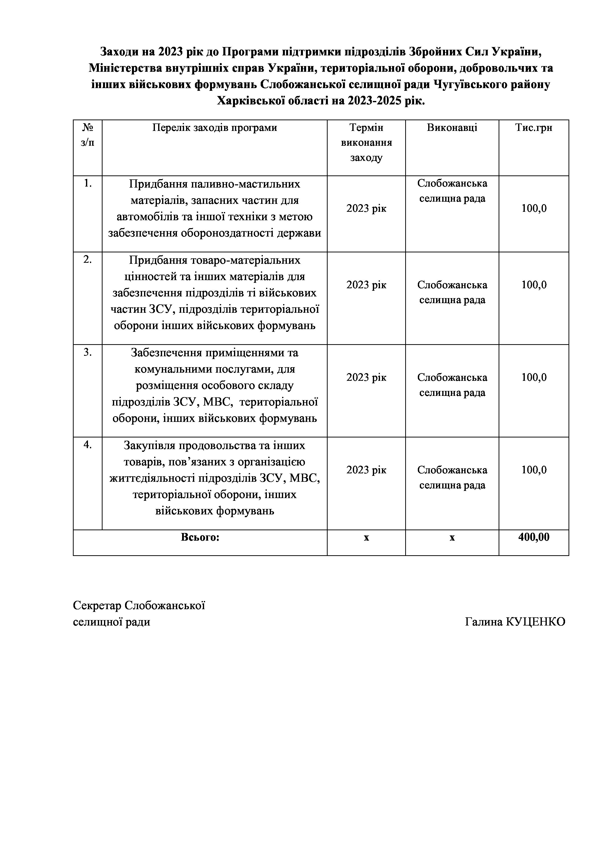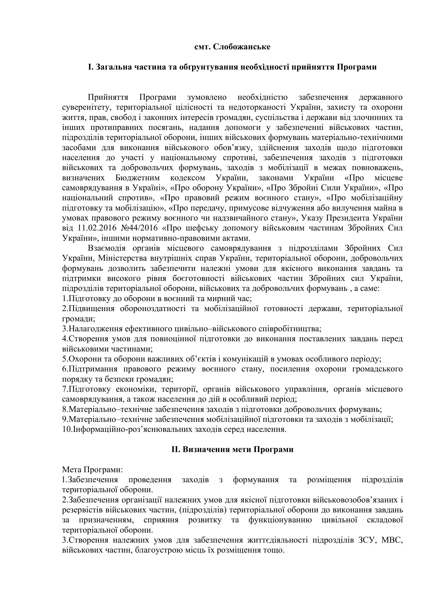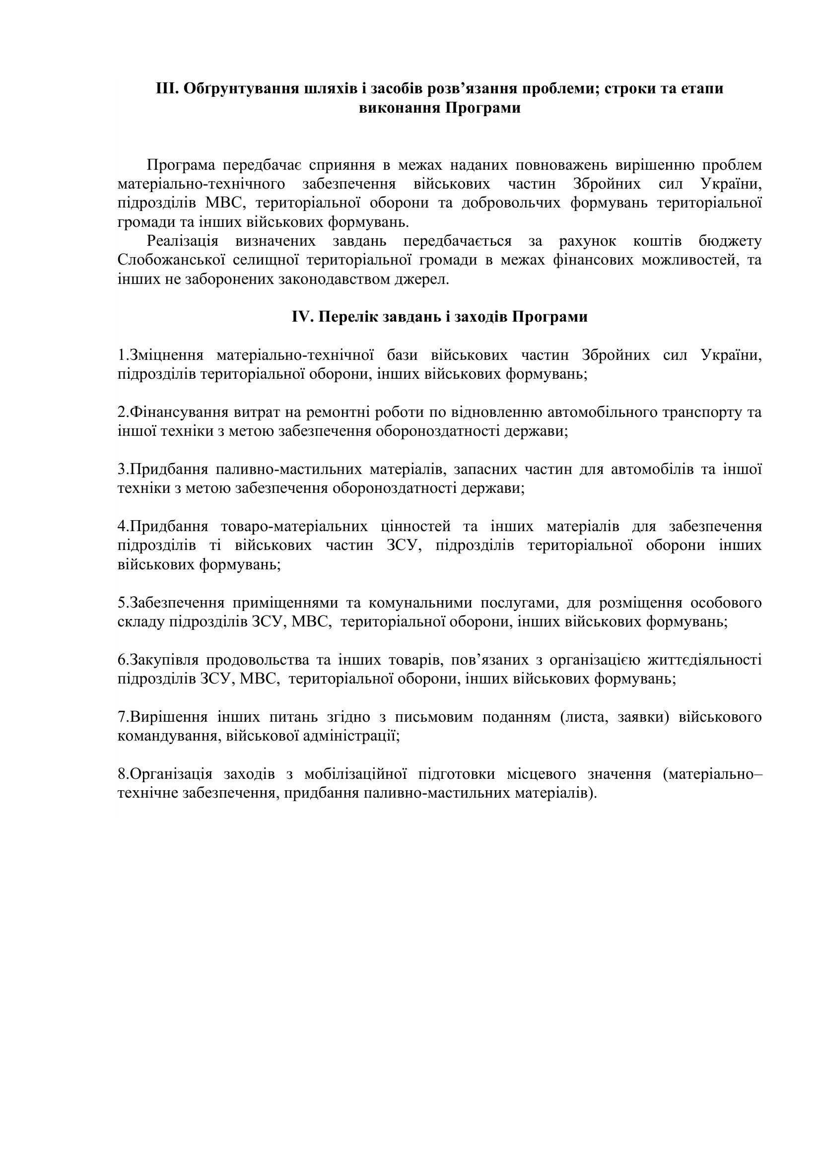 Рішення сесії №1516-VIII Про затвердження Програми підтримки підрозділів Збройних Сил України, Міністерства внутрішніх справ України, територіальної оборони, добровольчих та інших військових формувань Слобожанської селищної ради Чугуївського району Харківської області на 2023 – 2025 роки.