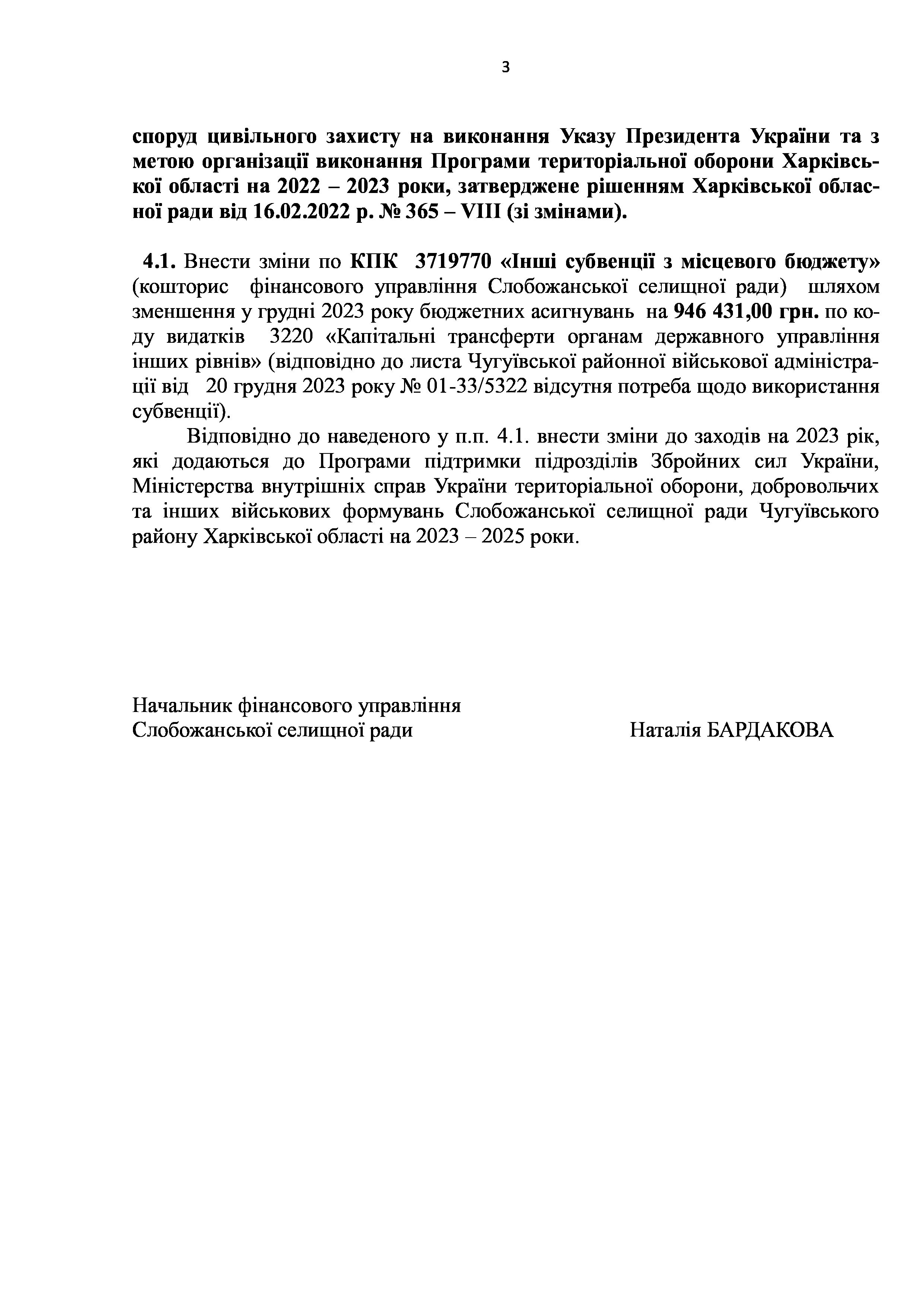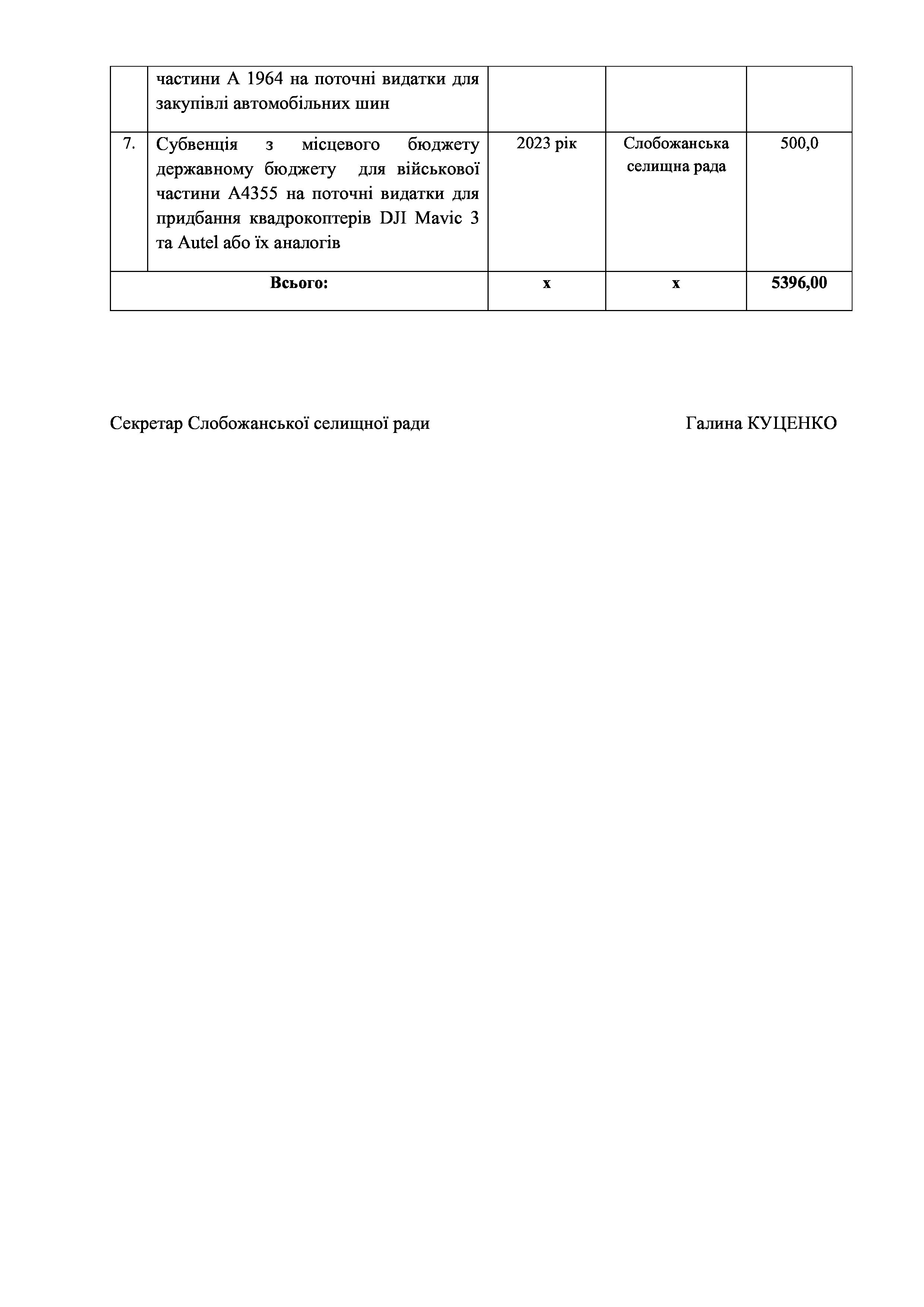 Рішенння сесії №1932-VIII Про внесення змін до Заходів на 2023 рік до Програми забезпечення тимчасового розміщення та організації харчування внутрішньо переміщених осіб та/або евакуйованих осіб, які перемістилися на територію Слобожанської селищної територіальної громади після 24.02.2022 р., в закладах освіти Слобожанської селищної ради Чугуївського району Харківської області на 2022 – 2023 роки.