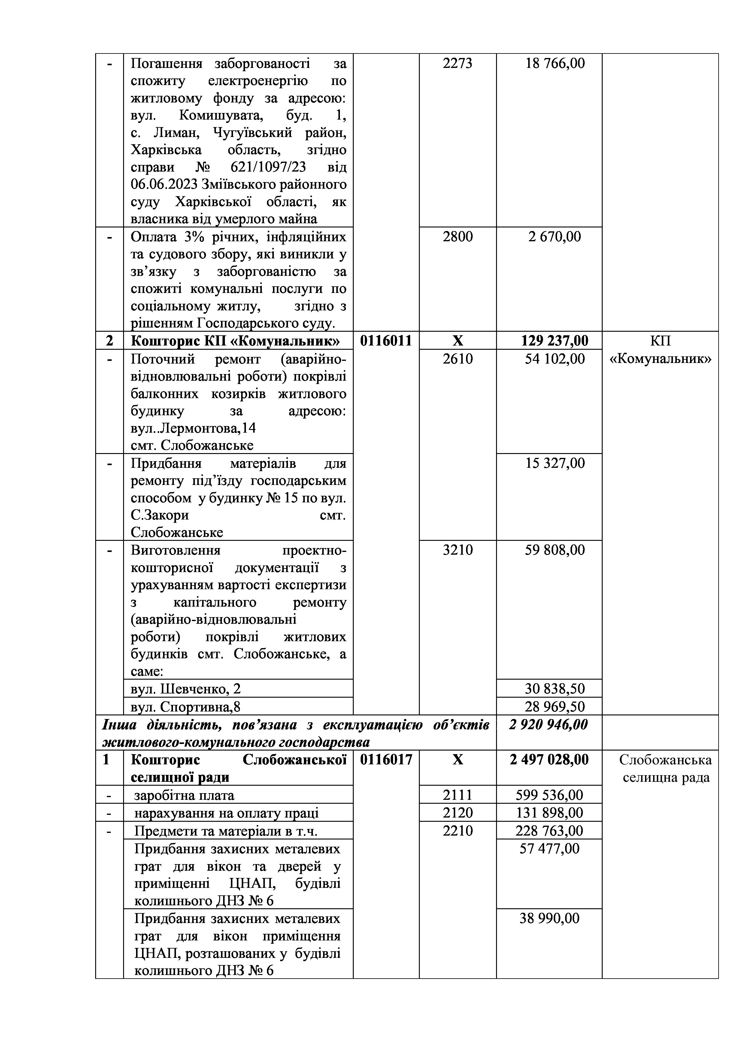 Рішенння сесії №1935-VIII Про бюджет Слобожанської селищної територіальної громади на 2024 рік.