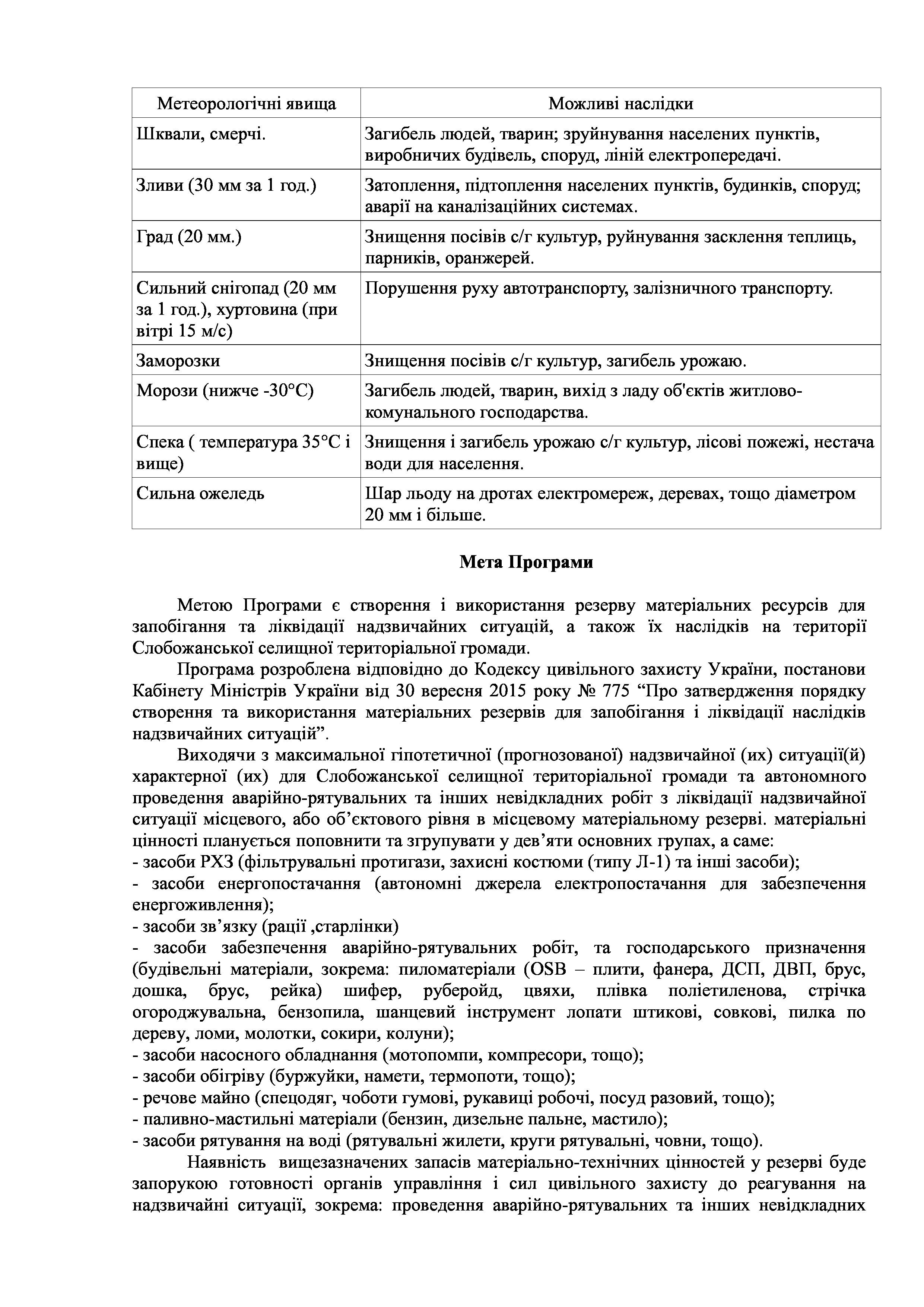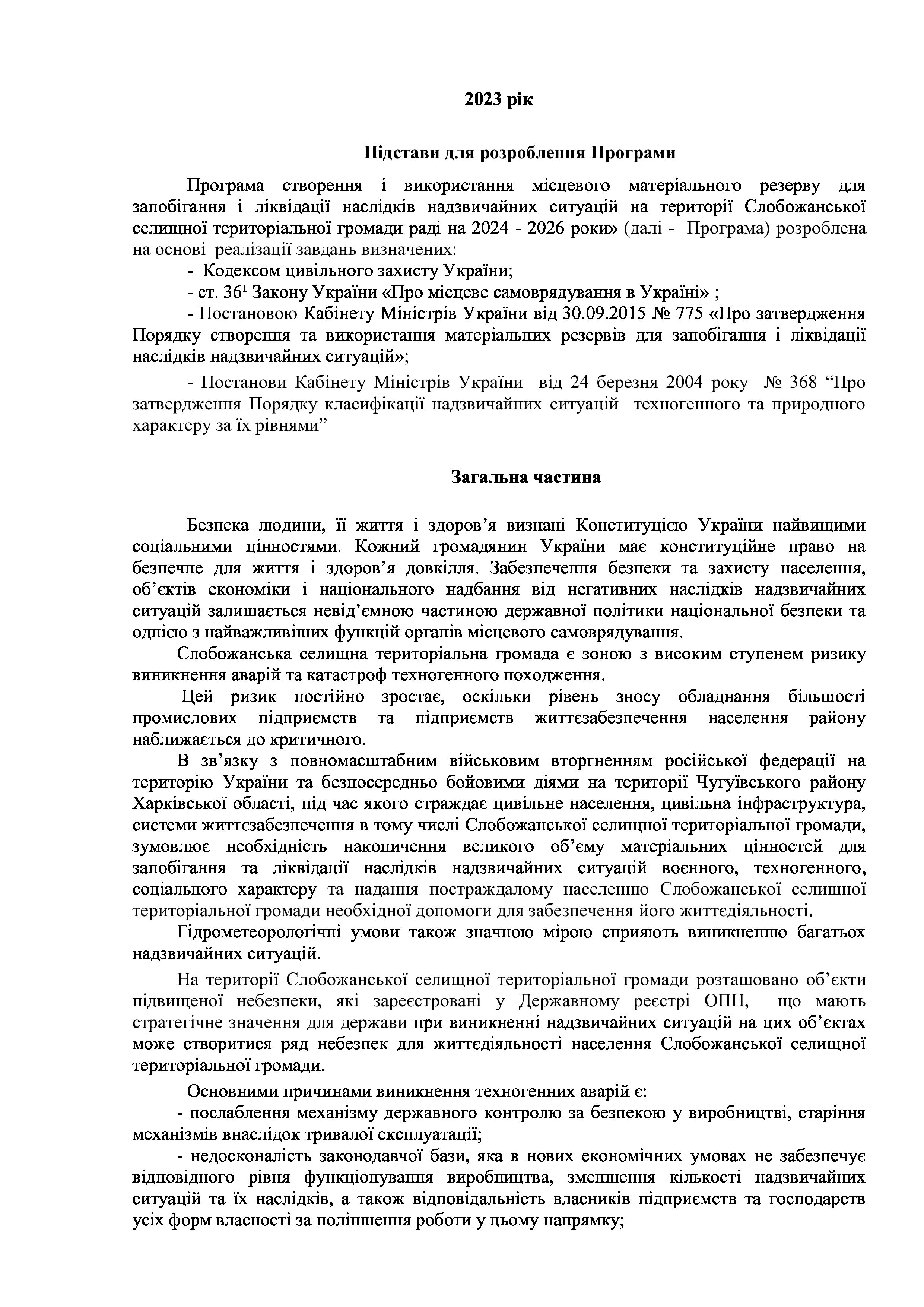 Рішенння сесії №1941-VIII Про затвердження Програми створення і використання місцевого матеріального резерву для запобігання і ліквідації наслідків надзвичайних ситуацій на території Слобожанської селищної територіальної громади на 2024 - 2026 роки».