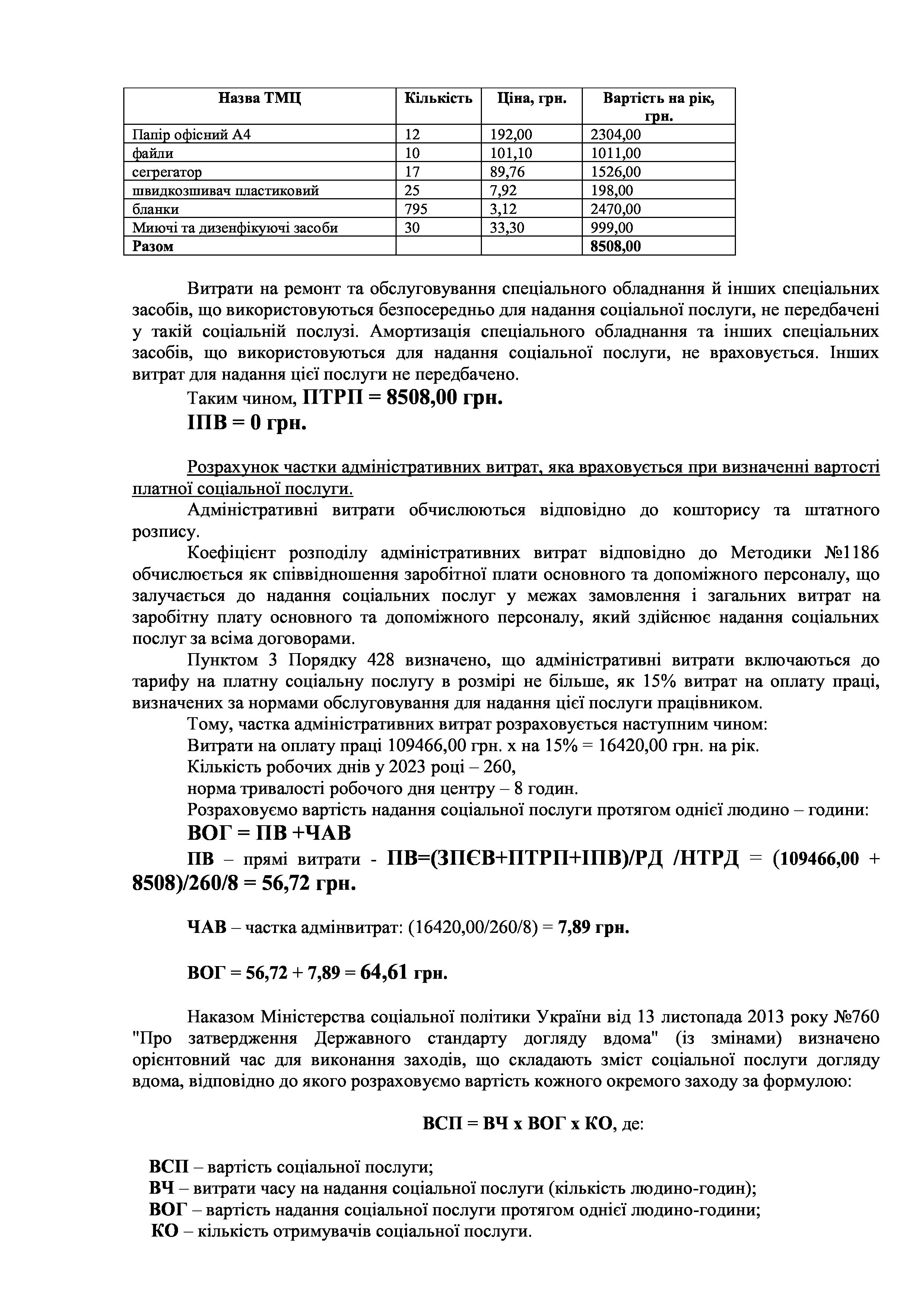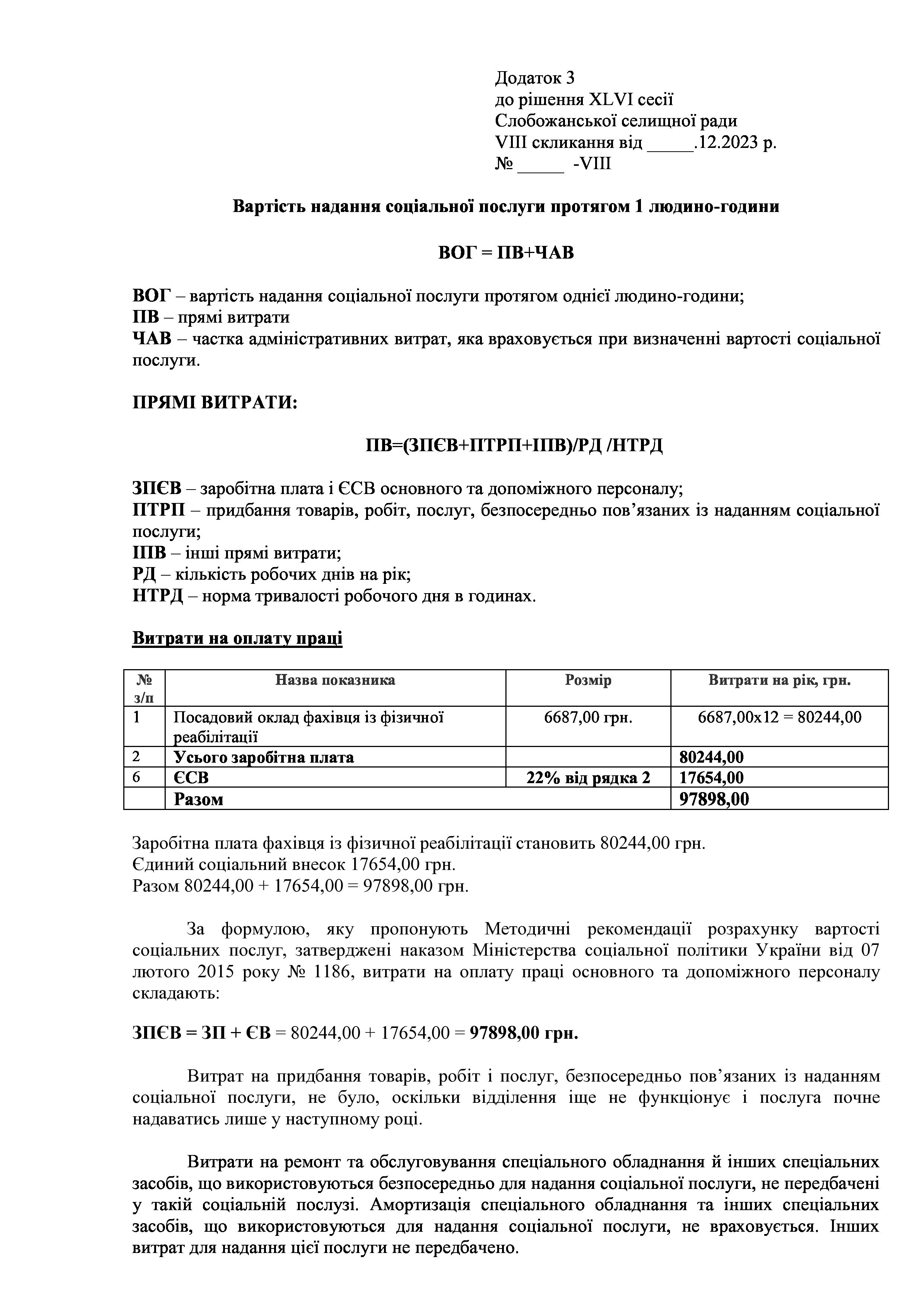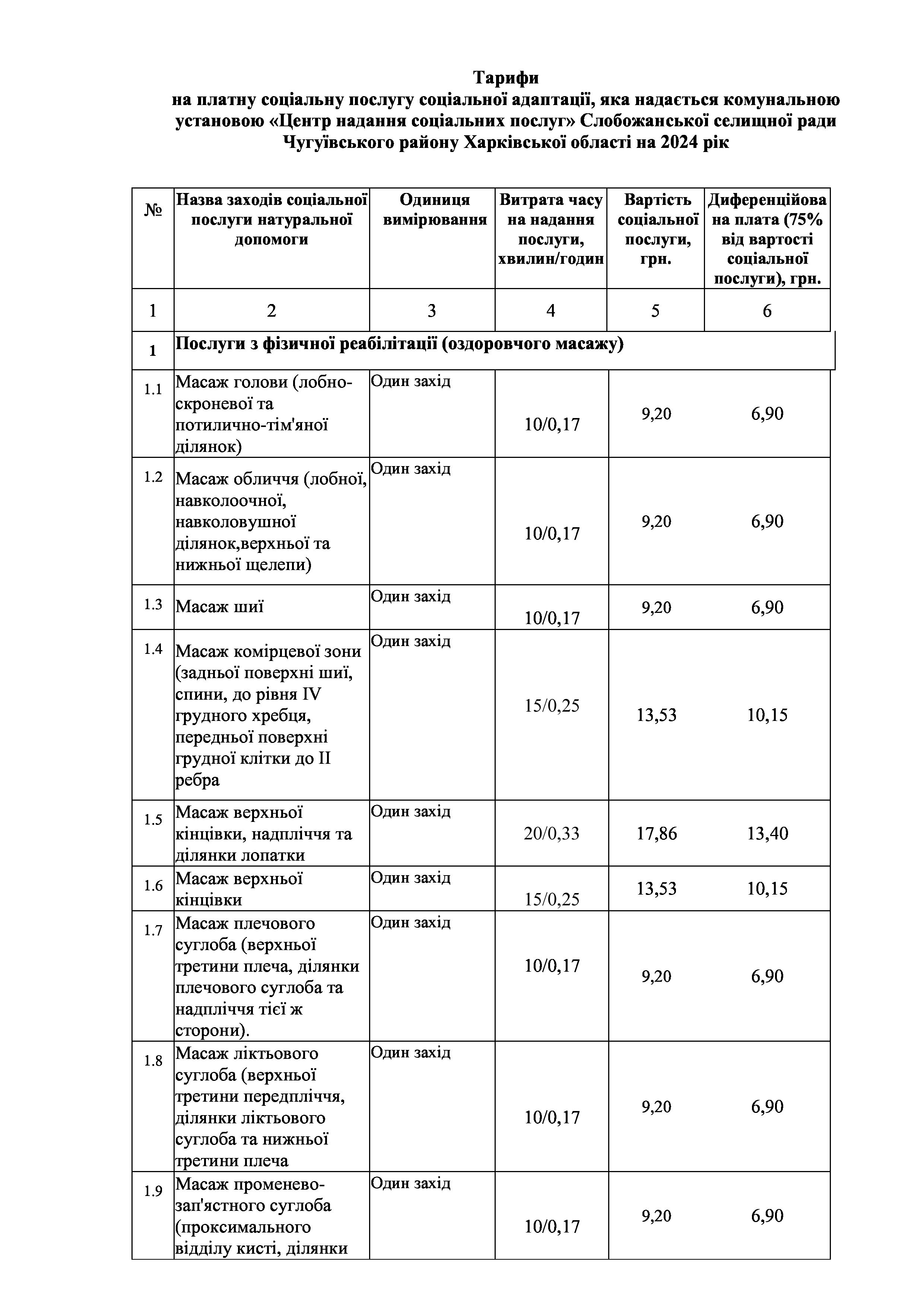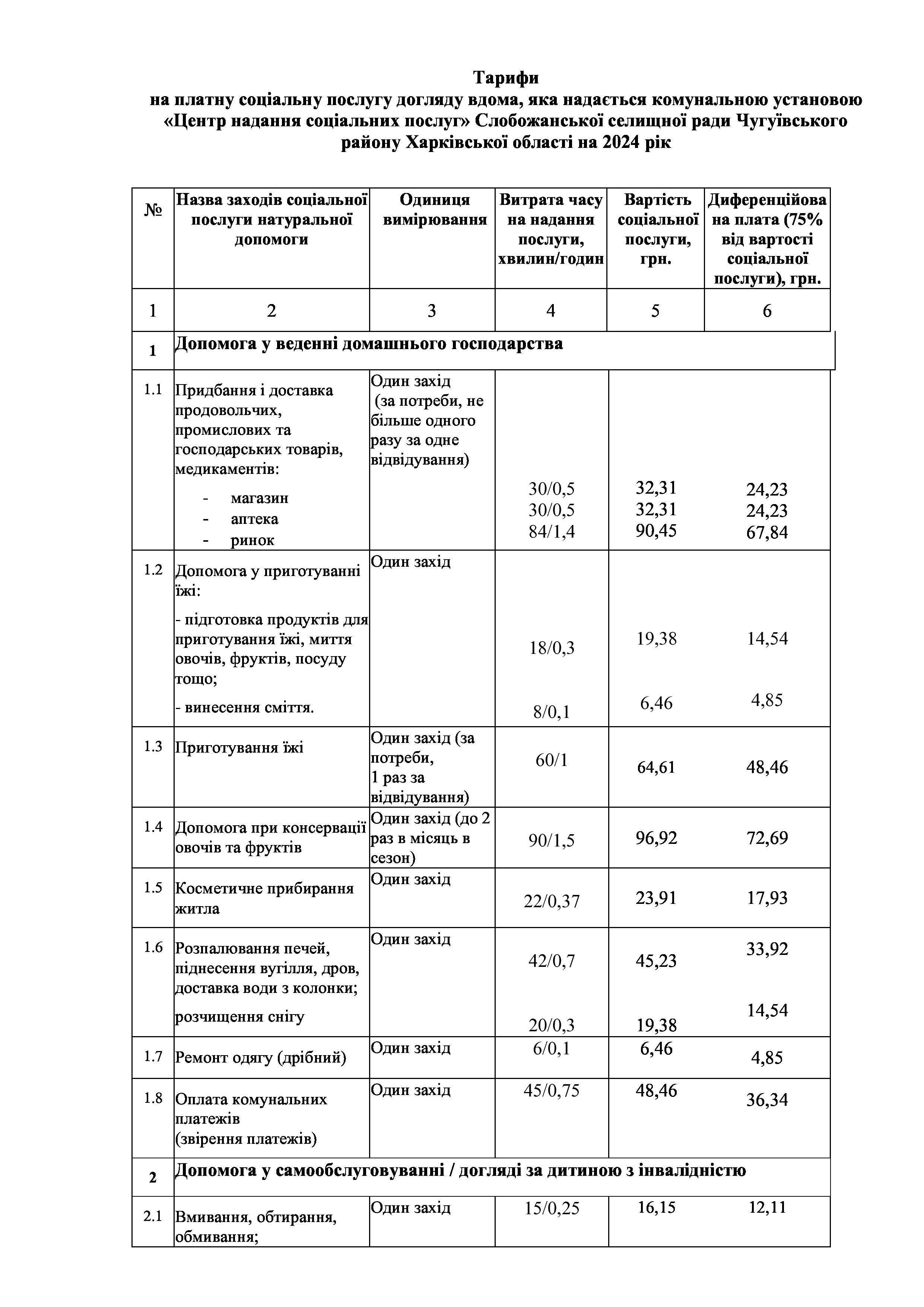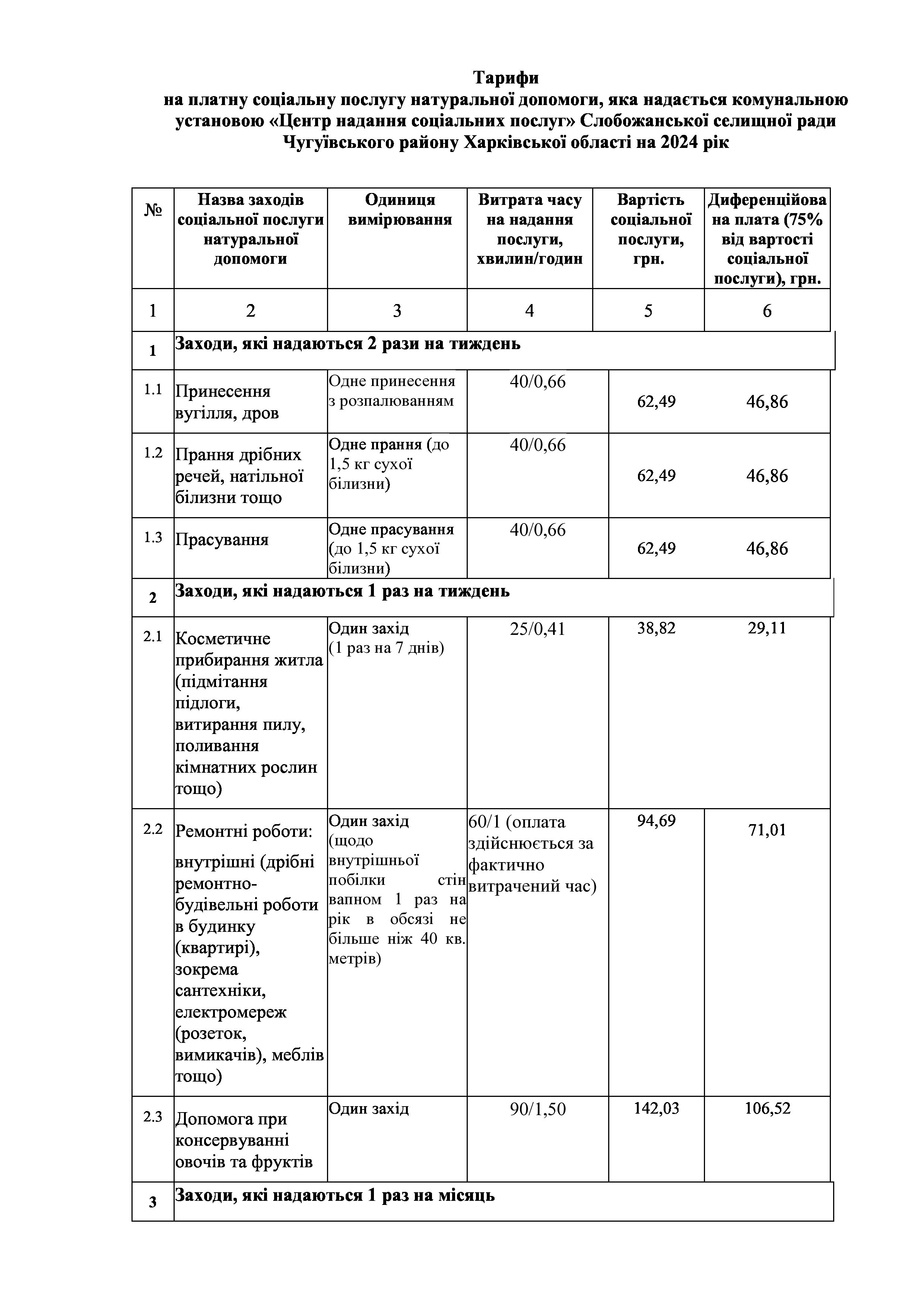 Рішенння сесії №1944-VIII Про затвердження тарифів на платні соціальні послуги, які надаються Комунальною установою «Центр надання соціальних послуг» Слобожанської селищної ради Чугуївського району Харківської області на 2024 рік.