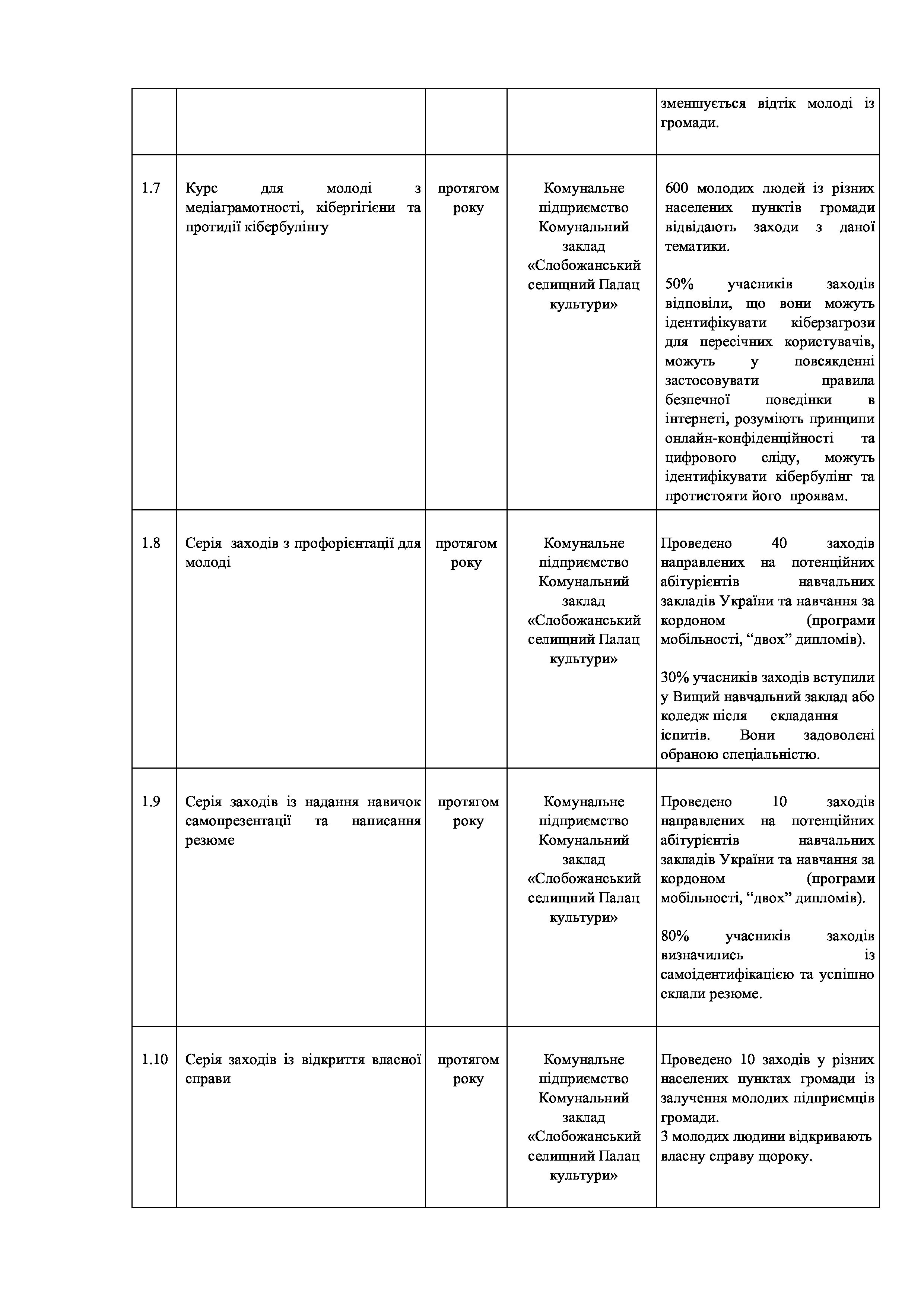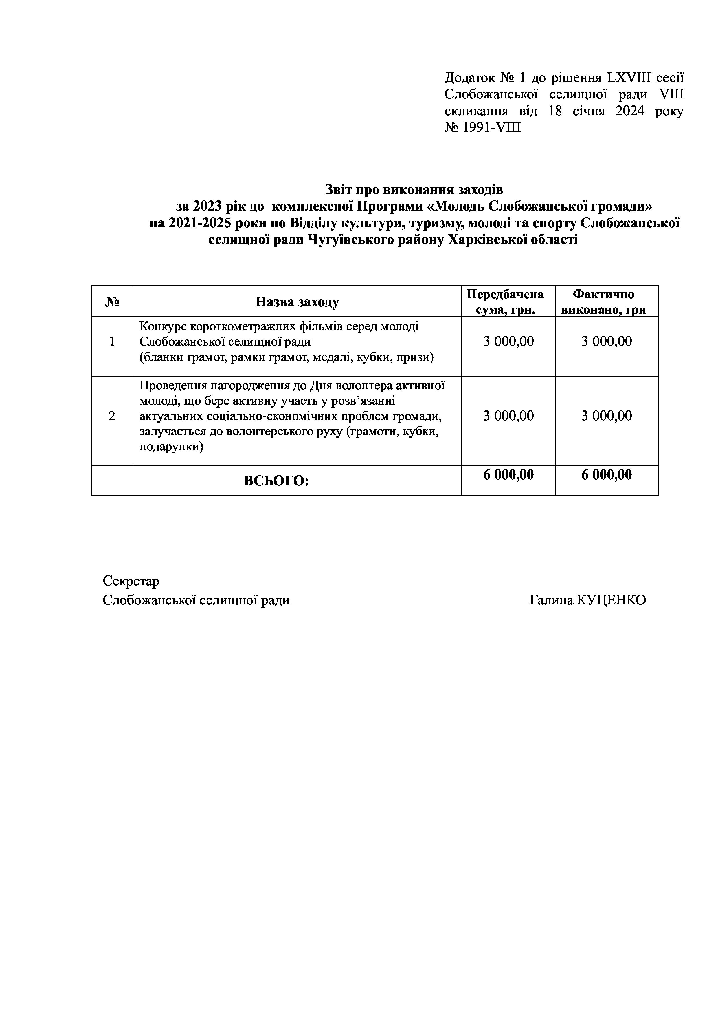 Рішення сесії №1991 Про затвердження звіту про виконання заходів за 2023 рік до комплексної Програми «Молодь Слобожанської громади» на 2021-2025 роки.