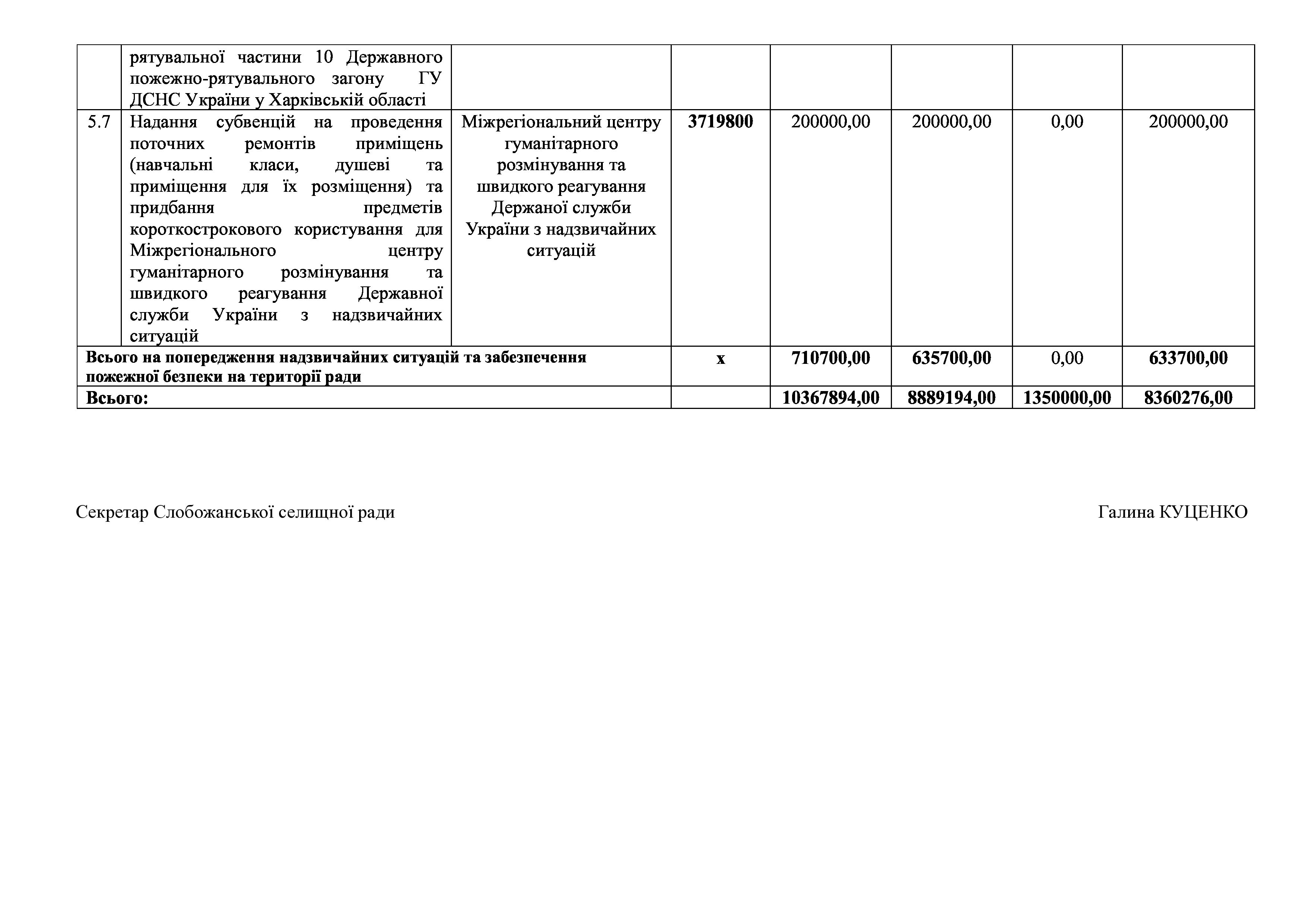 Рішення сесії №2012 Про внесення змін до місцевої цільової Програми розвитку цивільного захисту Слобожанської селищної ради на 2021-2025 роки.