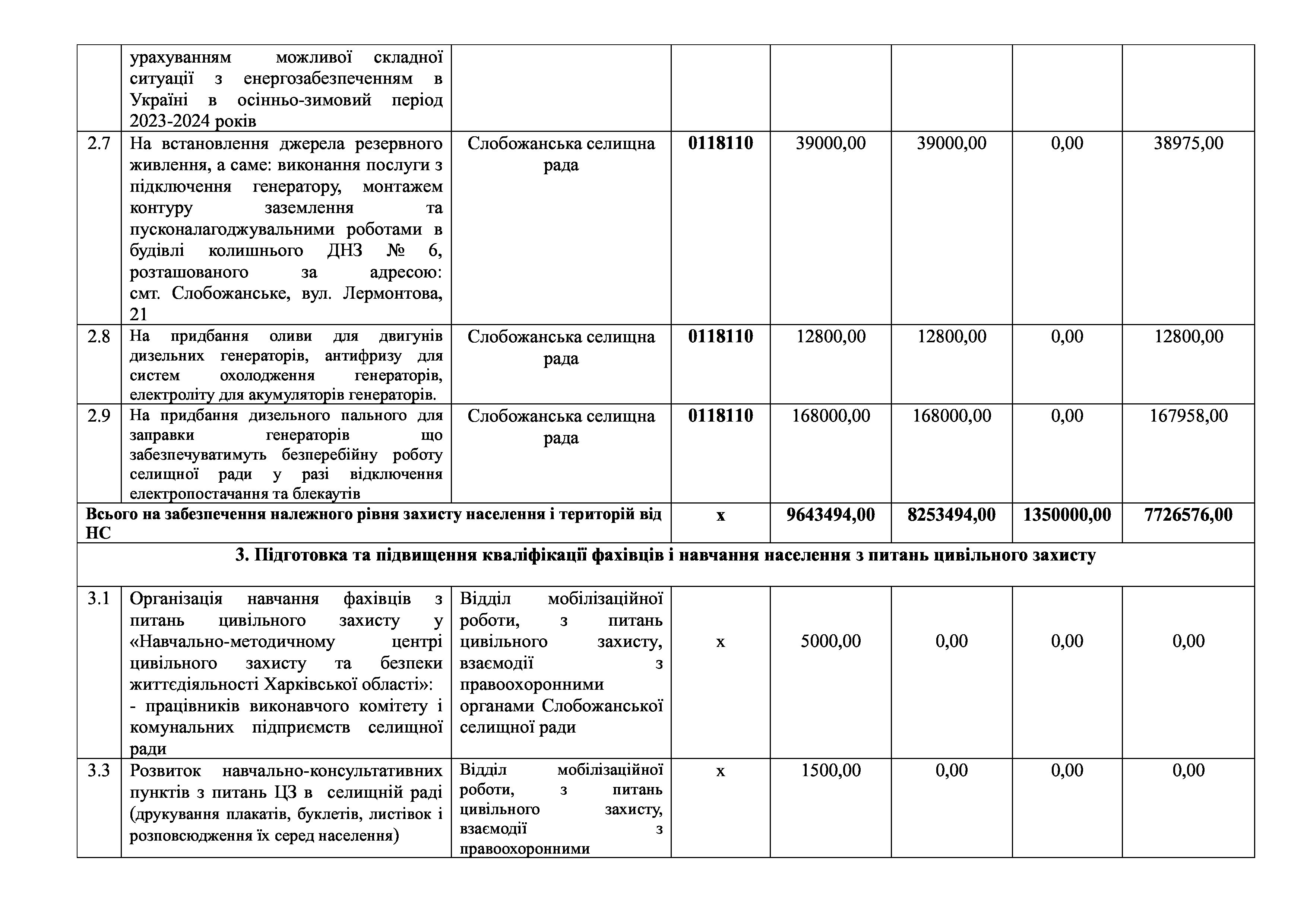 Рішення сесії №1993 Про затвердження звіту про виконання Заходів на 2023 рік до місцевої цільової Програми розвитку цивільного захисту Слобожанської селищної ради на 2021-2025 роки.