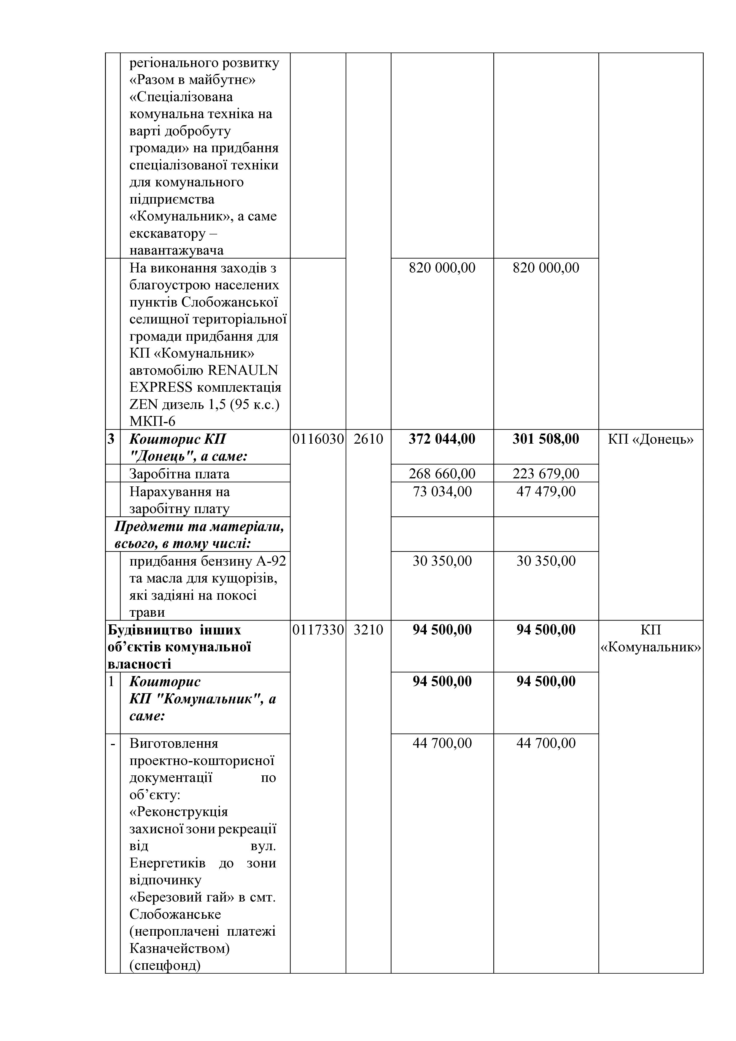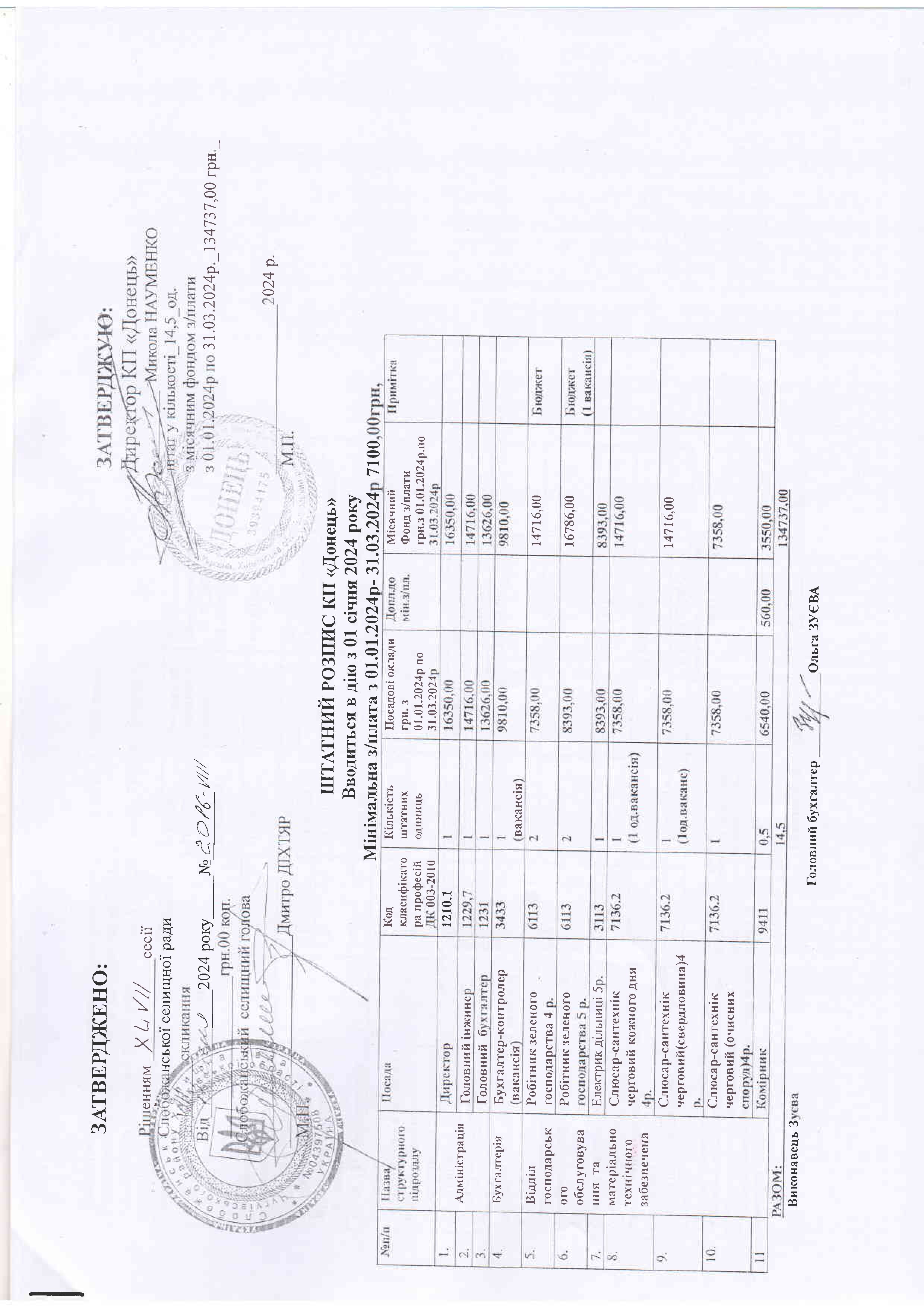 Рішення сесії №2016 Про затвердження штатного розпису комунального підприємства «Донець» з 01 січня 2024 року.