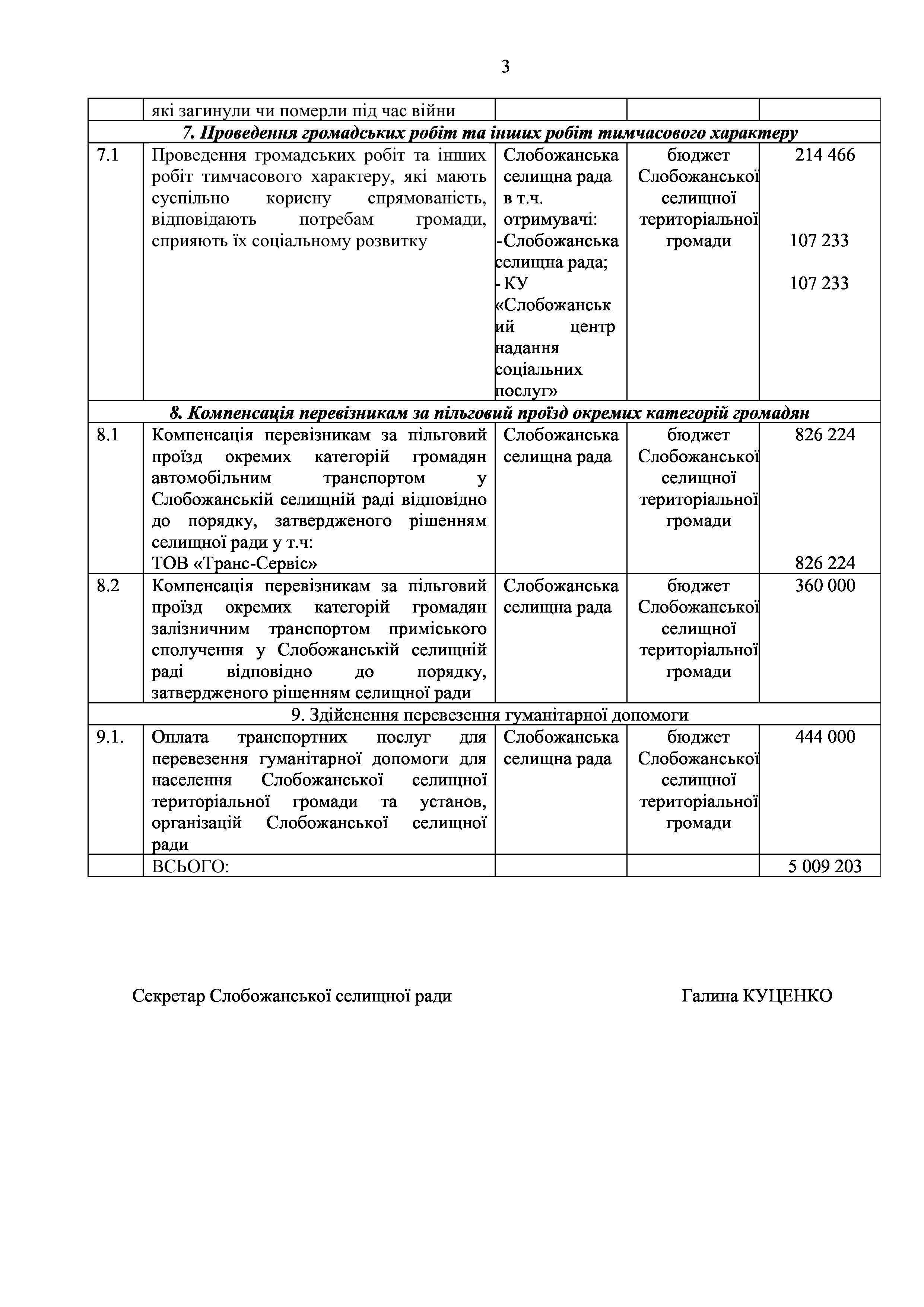 Рішення сесії №2009 Про внесення змін до Заходів на 2024 рік до Програми соціального захисту населення Слобожанської селищної ради на 2021-2025 роки.