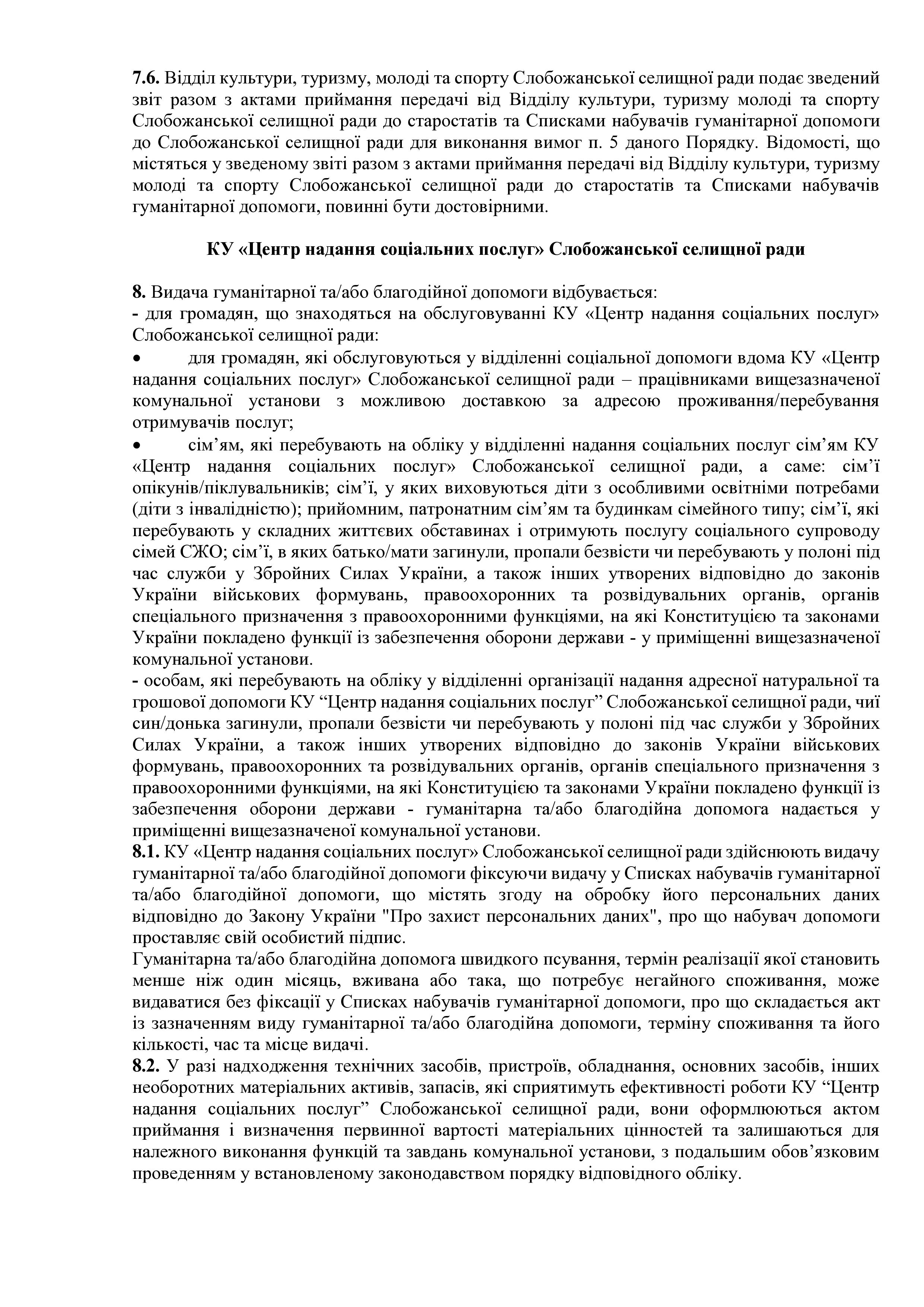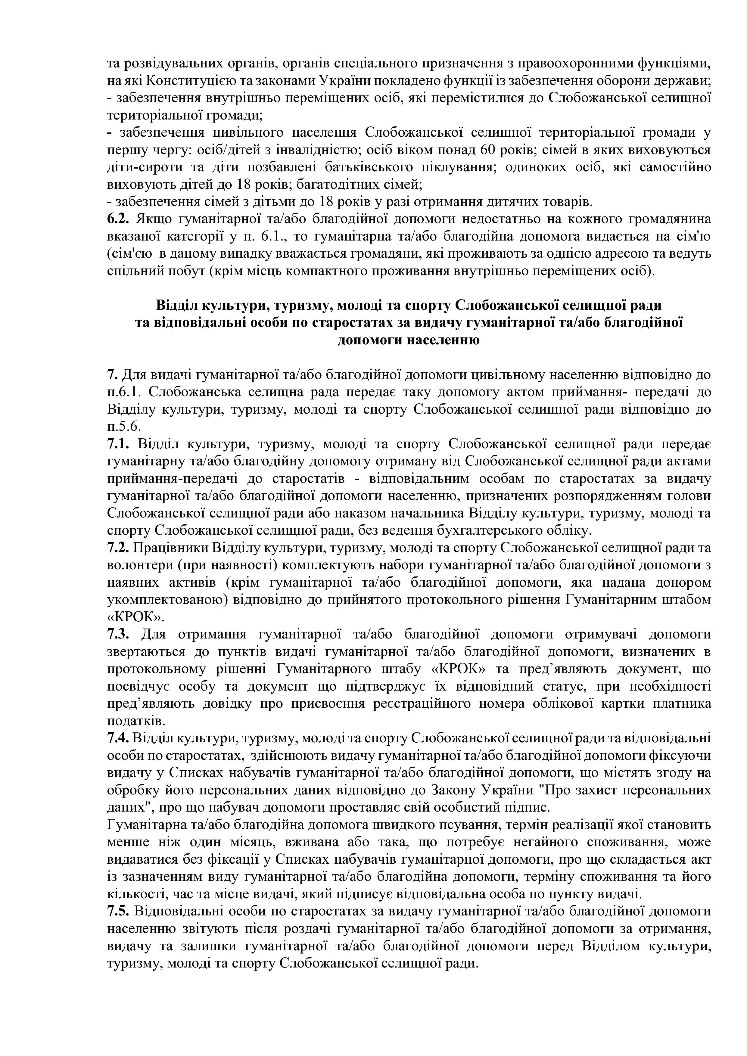 Рішення сесії №2015 Про затвердження Порядку отримання, обліку, передачі та видачі на території Слобожанської селищної територіальної громади гуманітарної та/або благодійної допомоги, що надається іноземними та вітчизняними донорами із гуманітарних мотивів, в умовах воєнного стану в Україні (нова редакція).