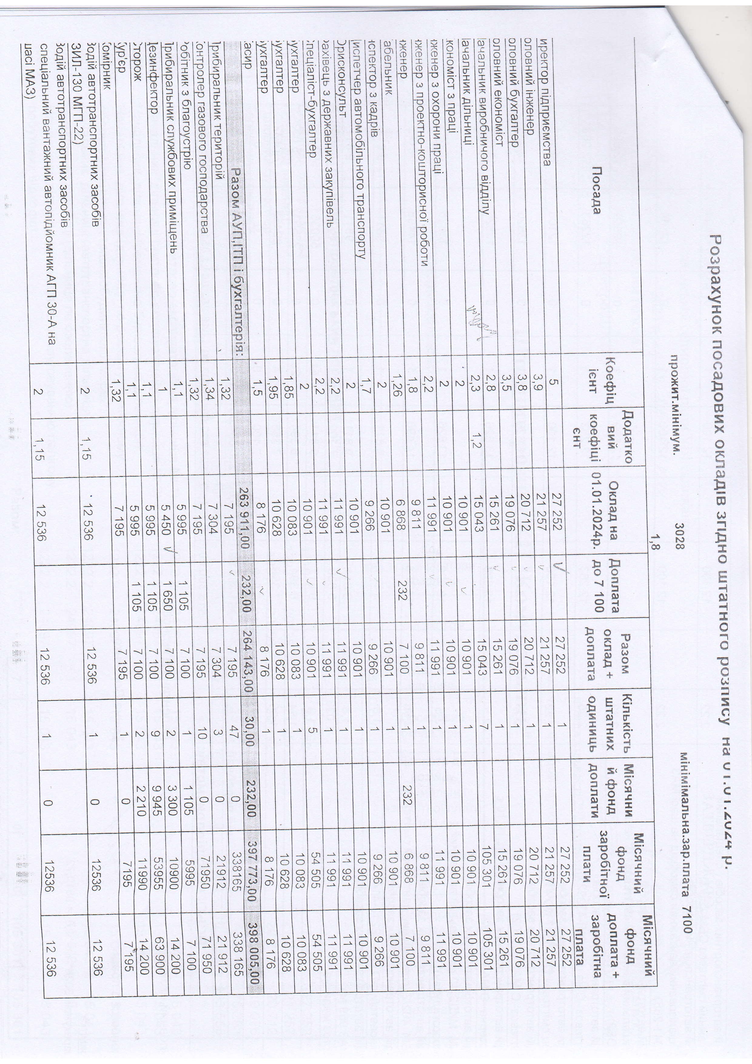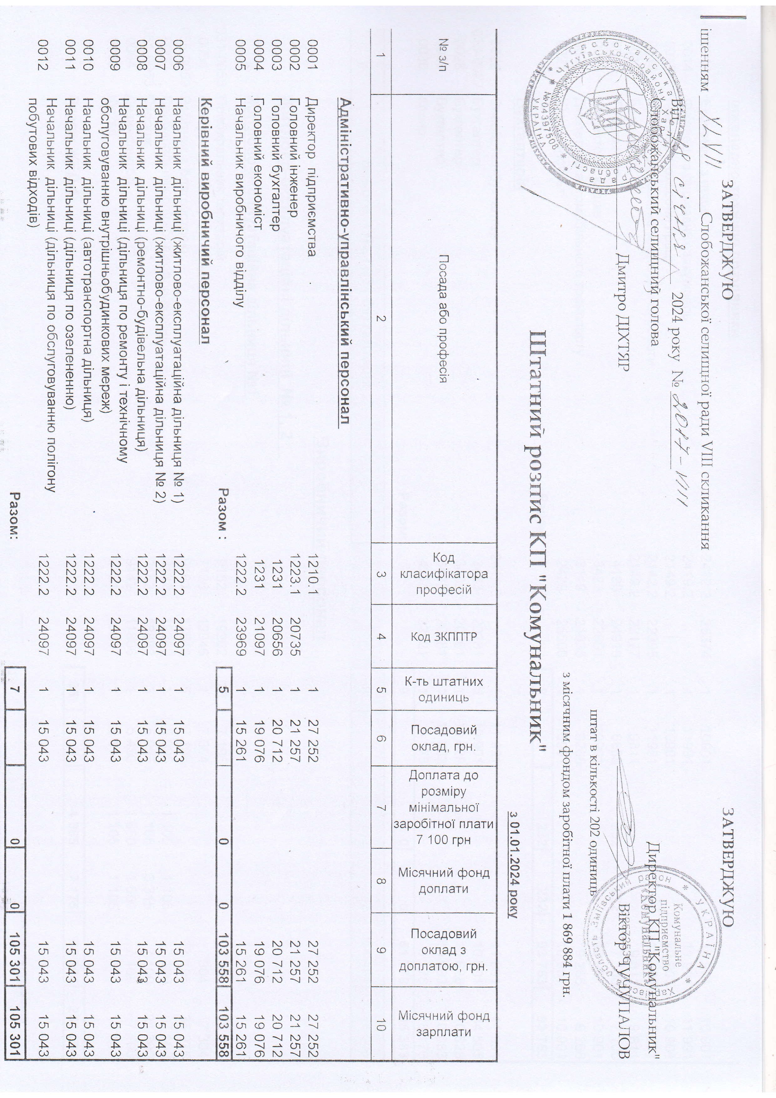 Рішення сесії №2017 Про затвердження штатного розпису комунального підприємства «Комунальник» з 01 січня 2024 року.