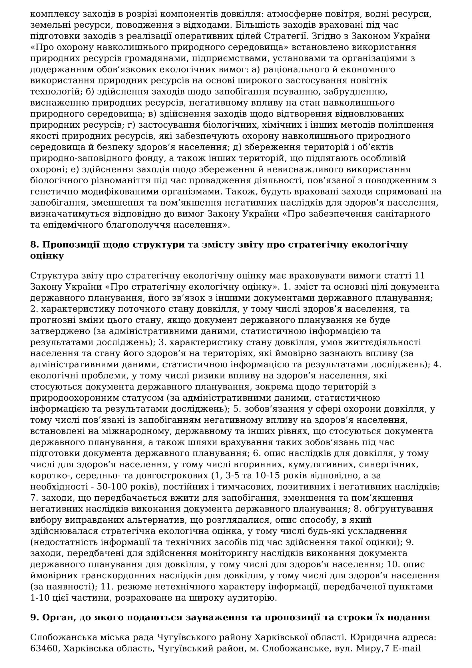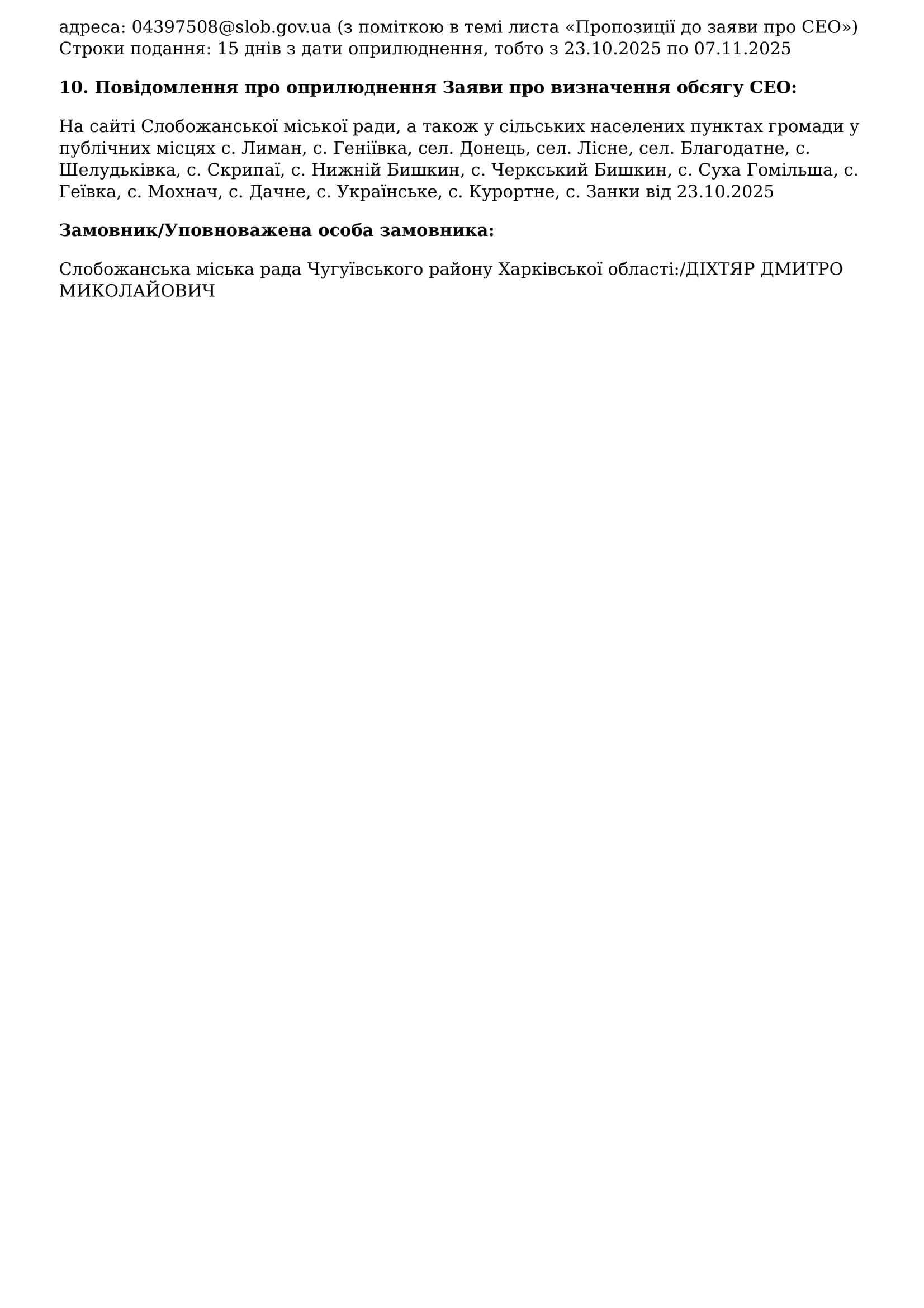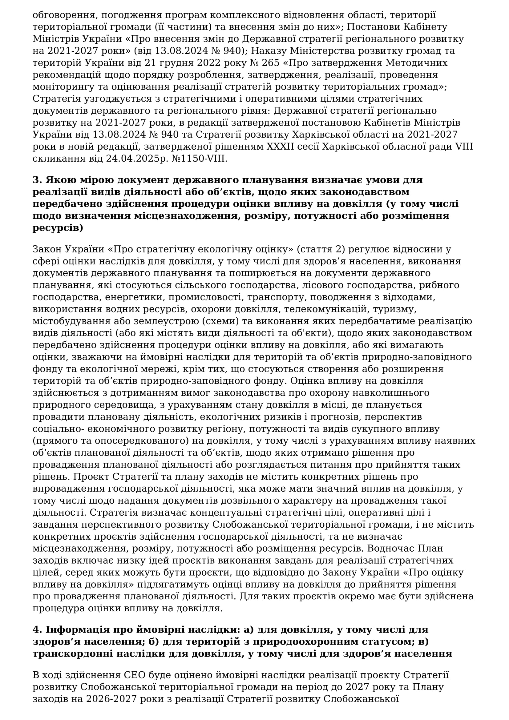 • Заява про визначення обсягу стратегічної екологічної оцінки від 23 жовтня 2025 року