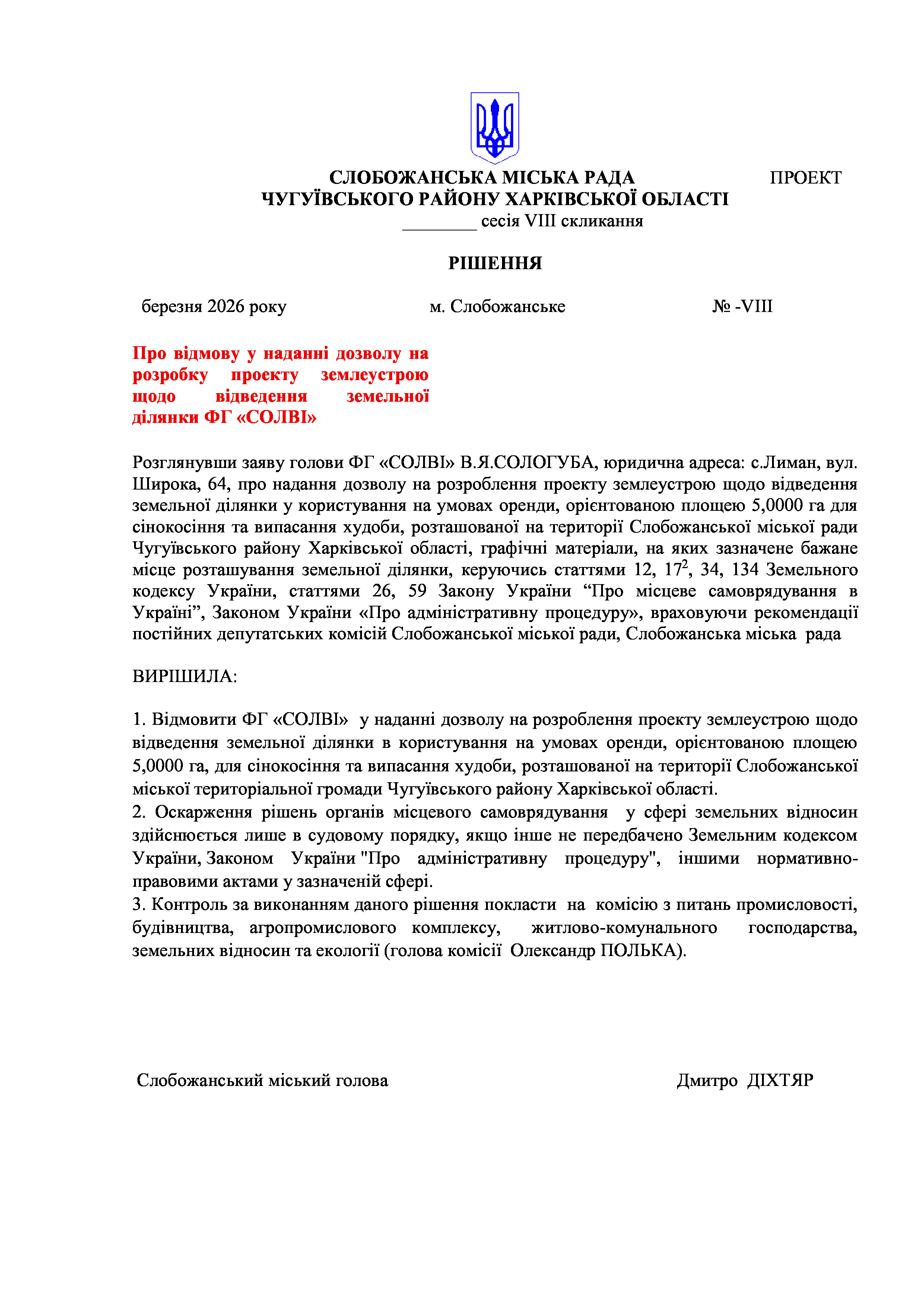 ПРОЄКТ рішення сесії №26-VIII