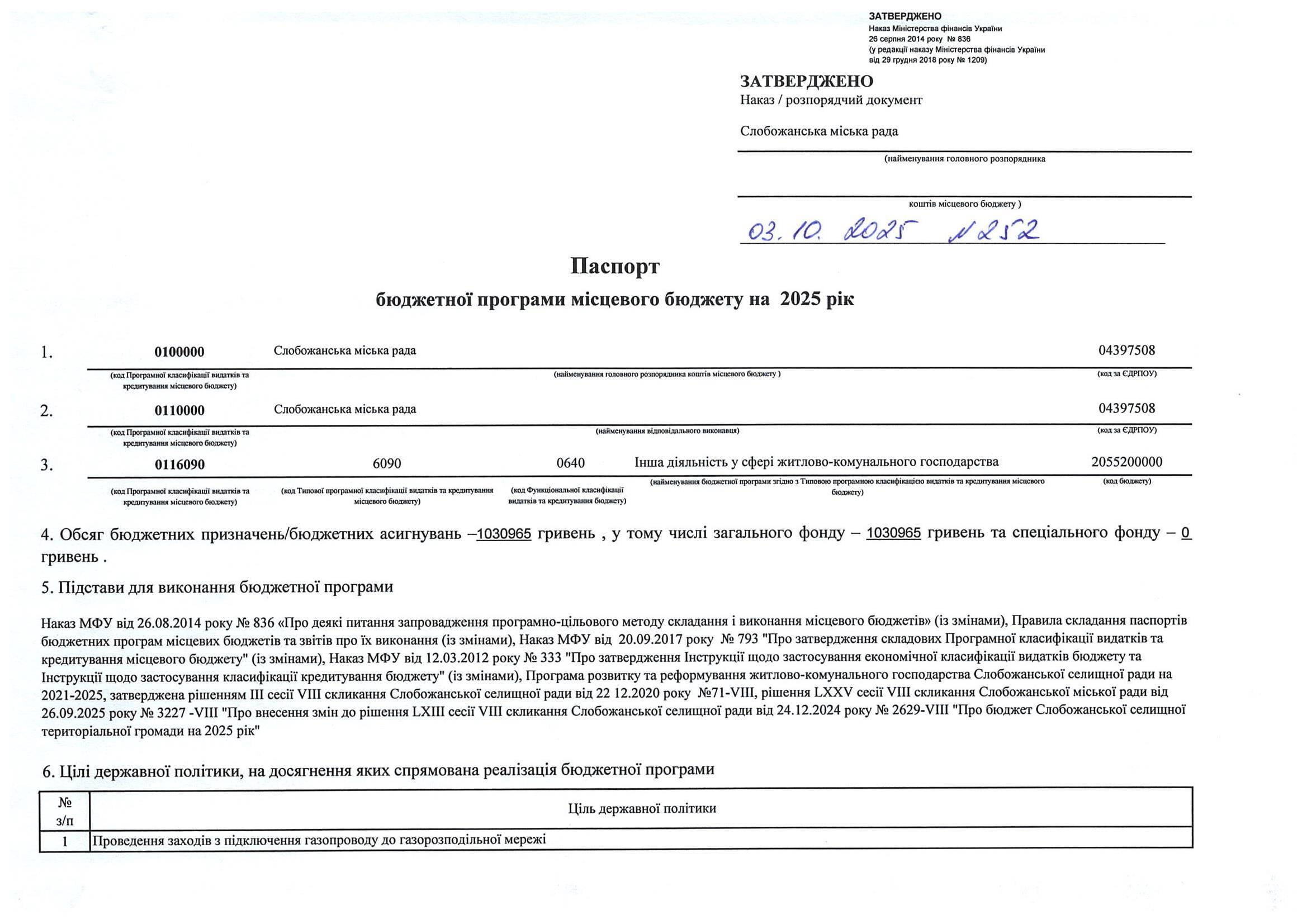 Паспорт бюджетної програми місцевого бюджету ТПКВКМБ 0116090