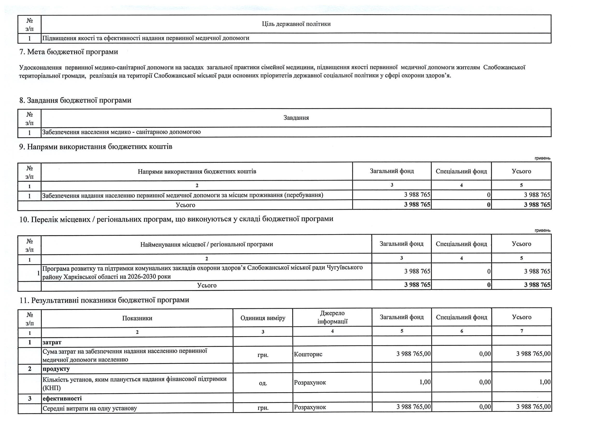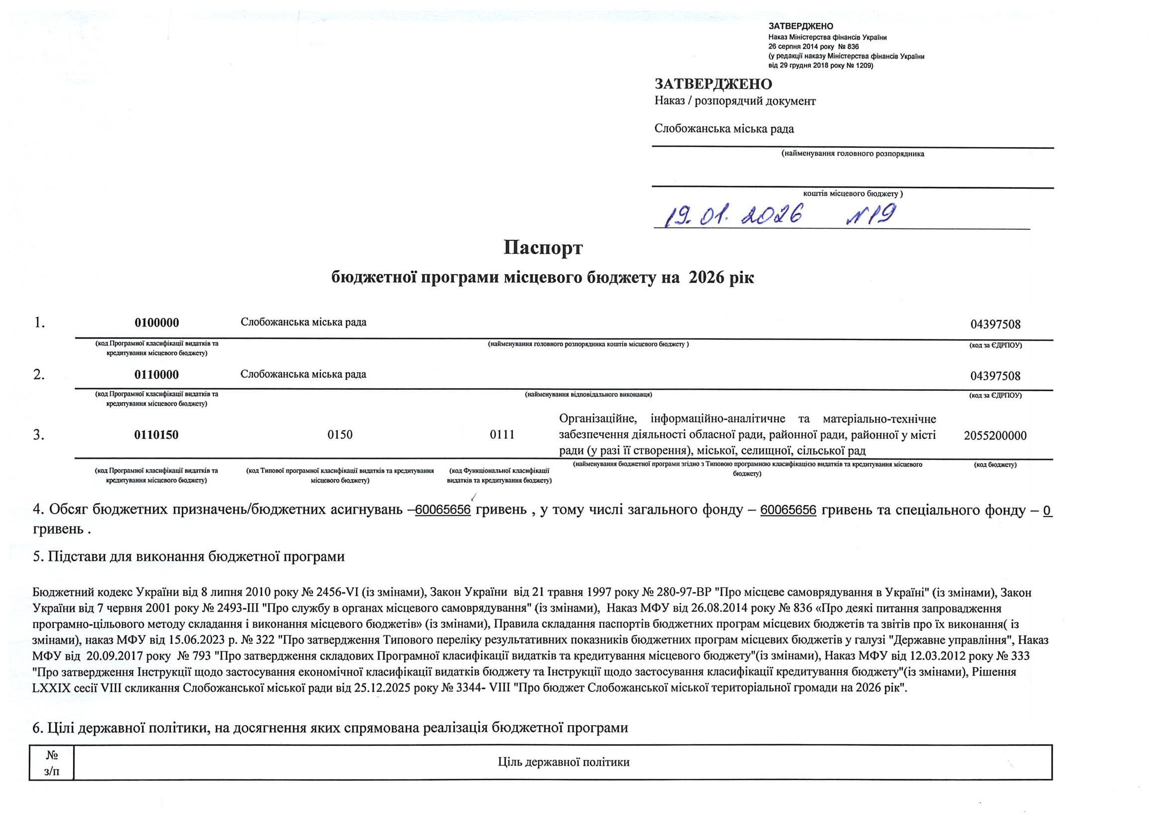 Паспорт бюджетної програми місцевого бюджету ТПКВКМБ 0110150