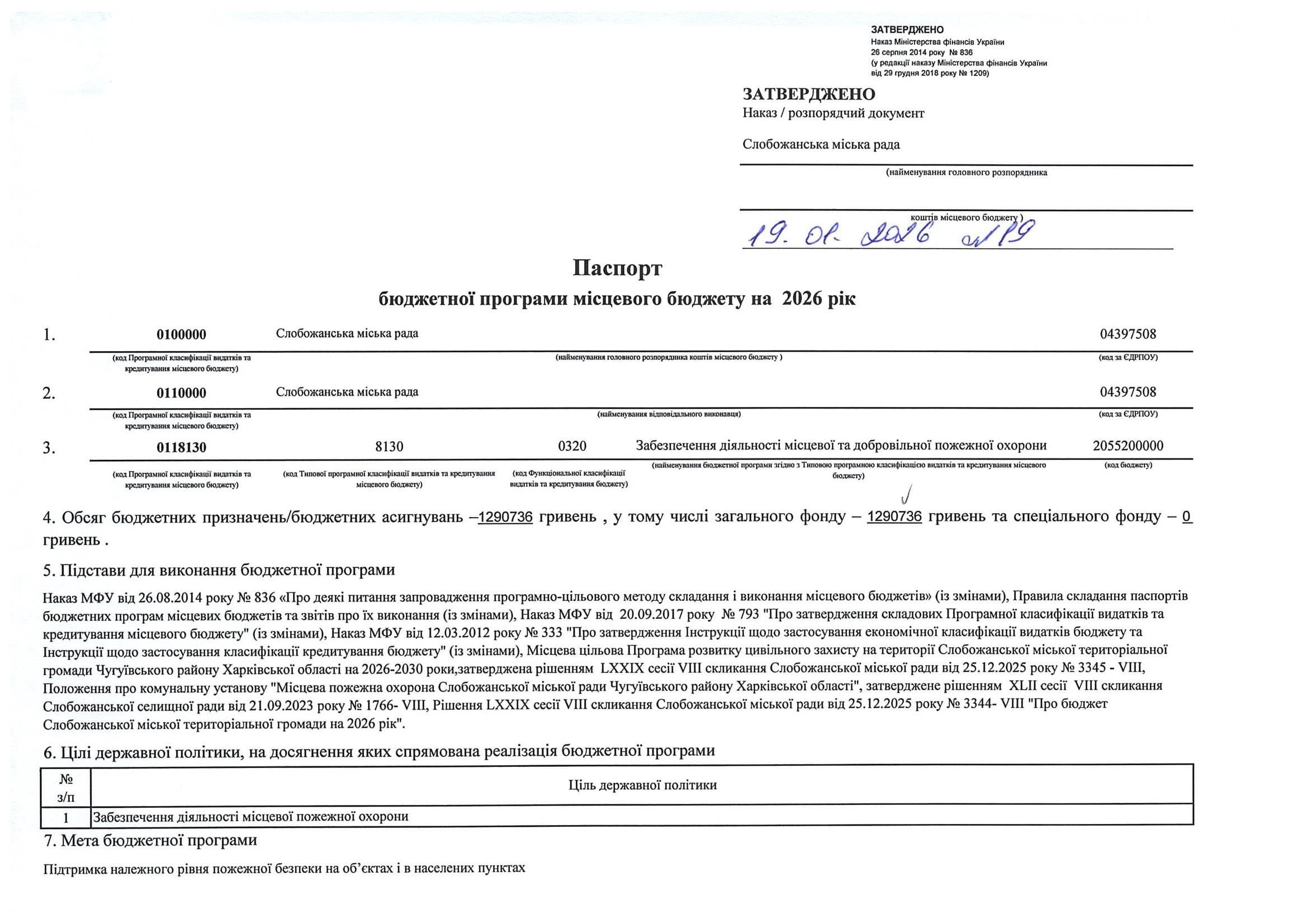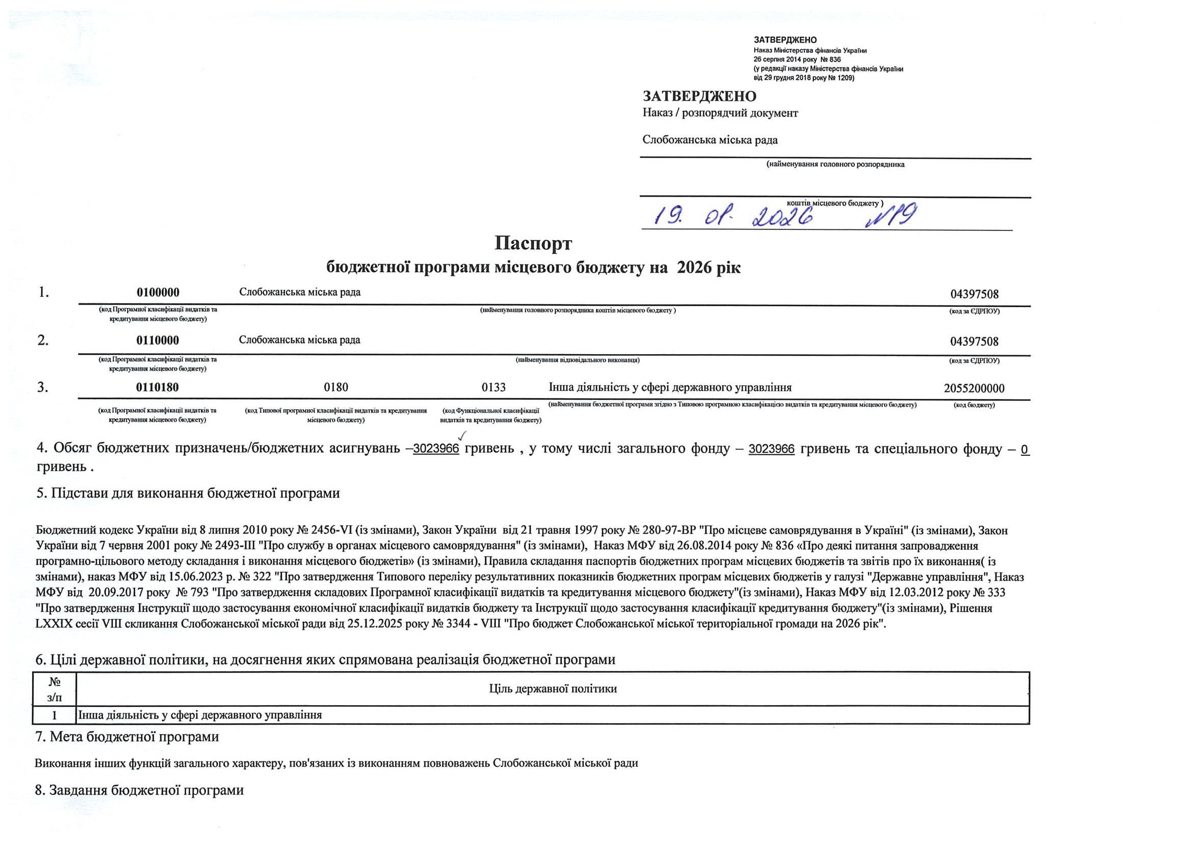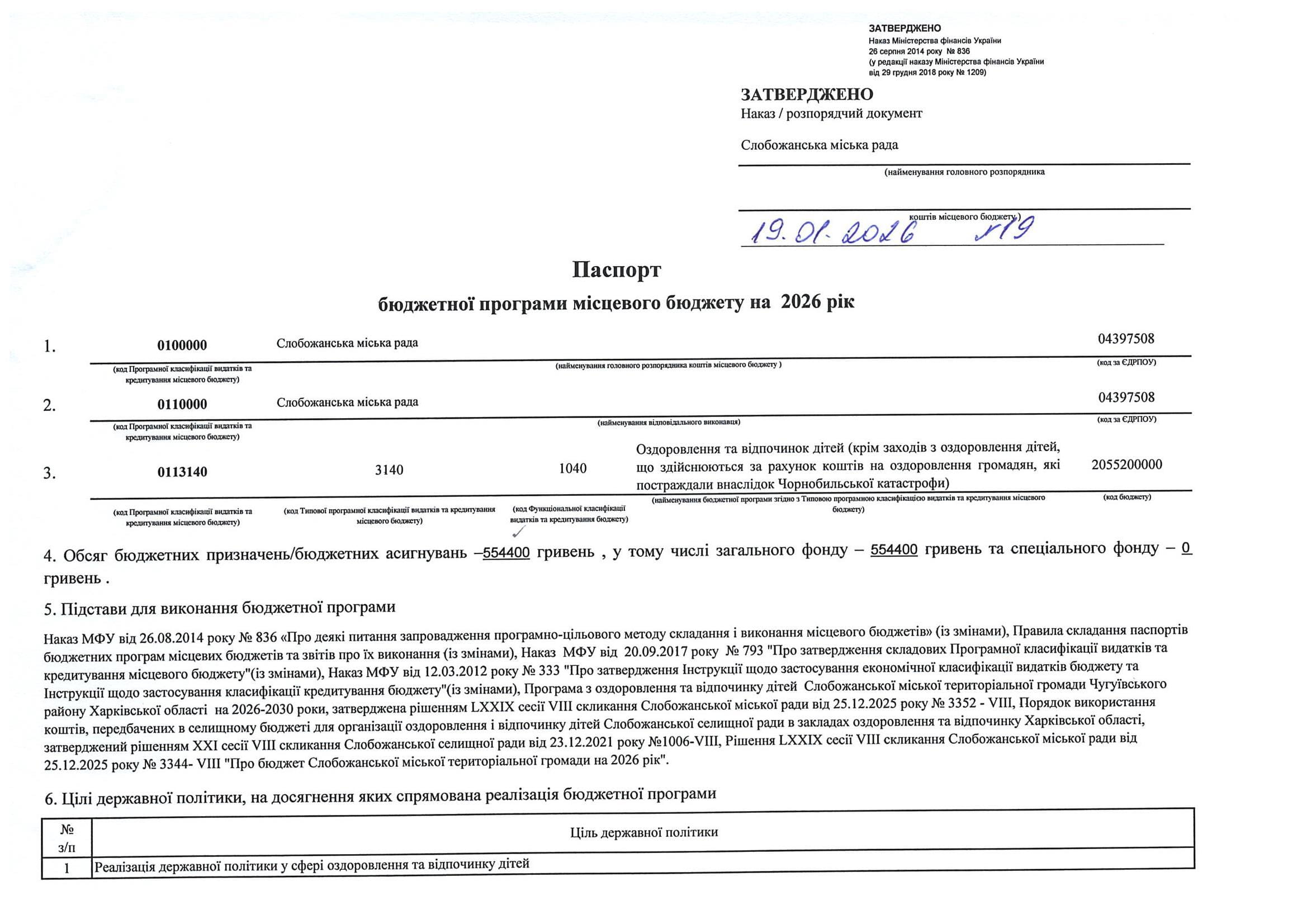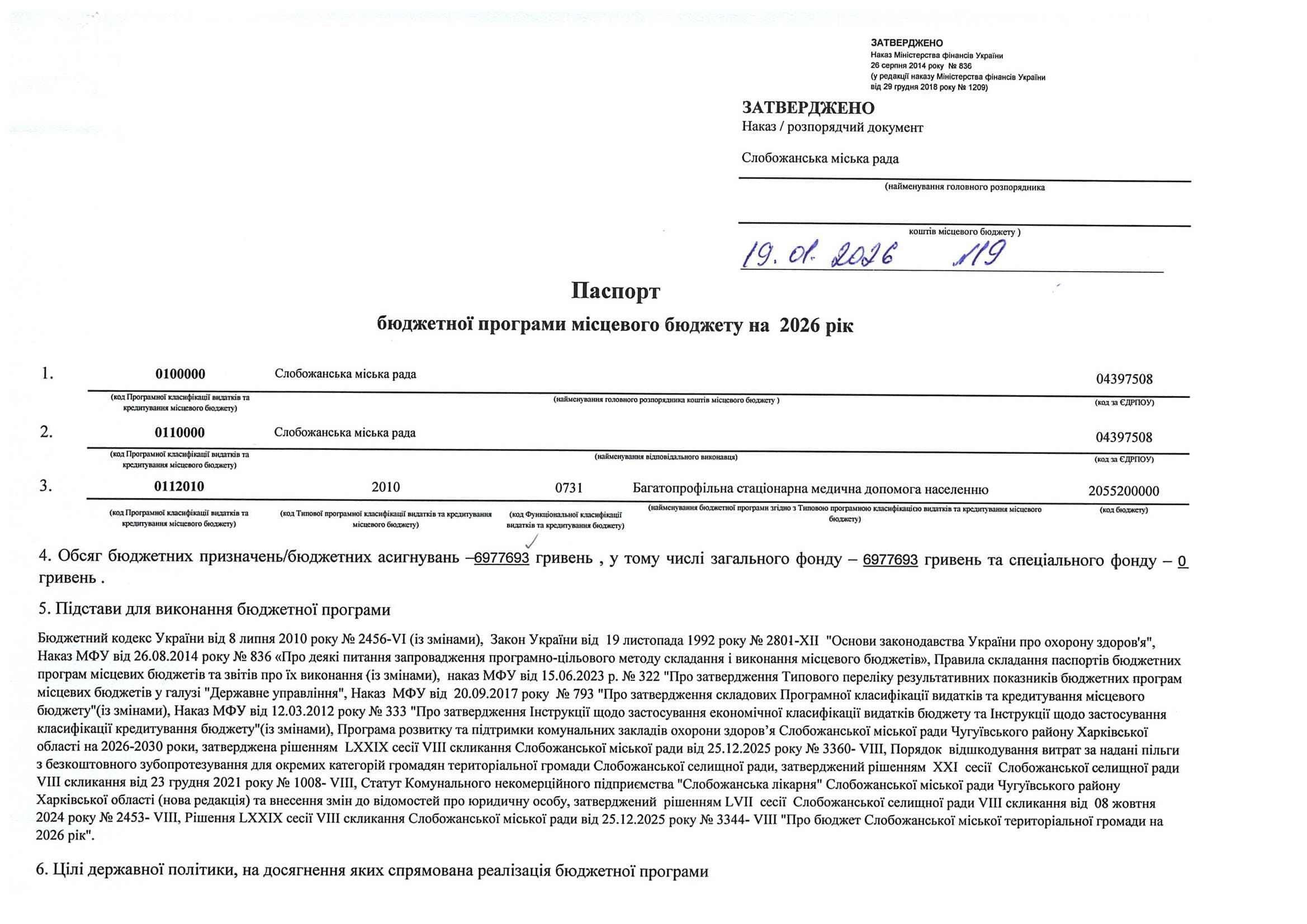 Паспорт бюджетної програми місцевого бюджету ТПКВКМБ 0112010