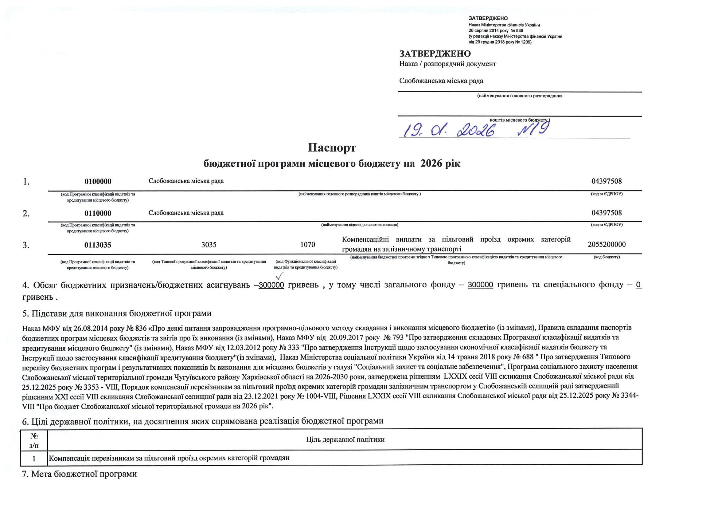 Паспорт бюджетної програми місцевого бюджету ТПКВКМБ 0113035