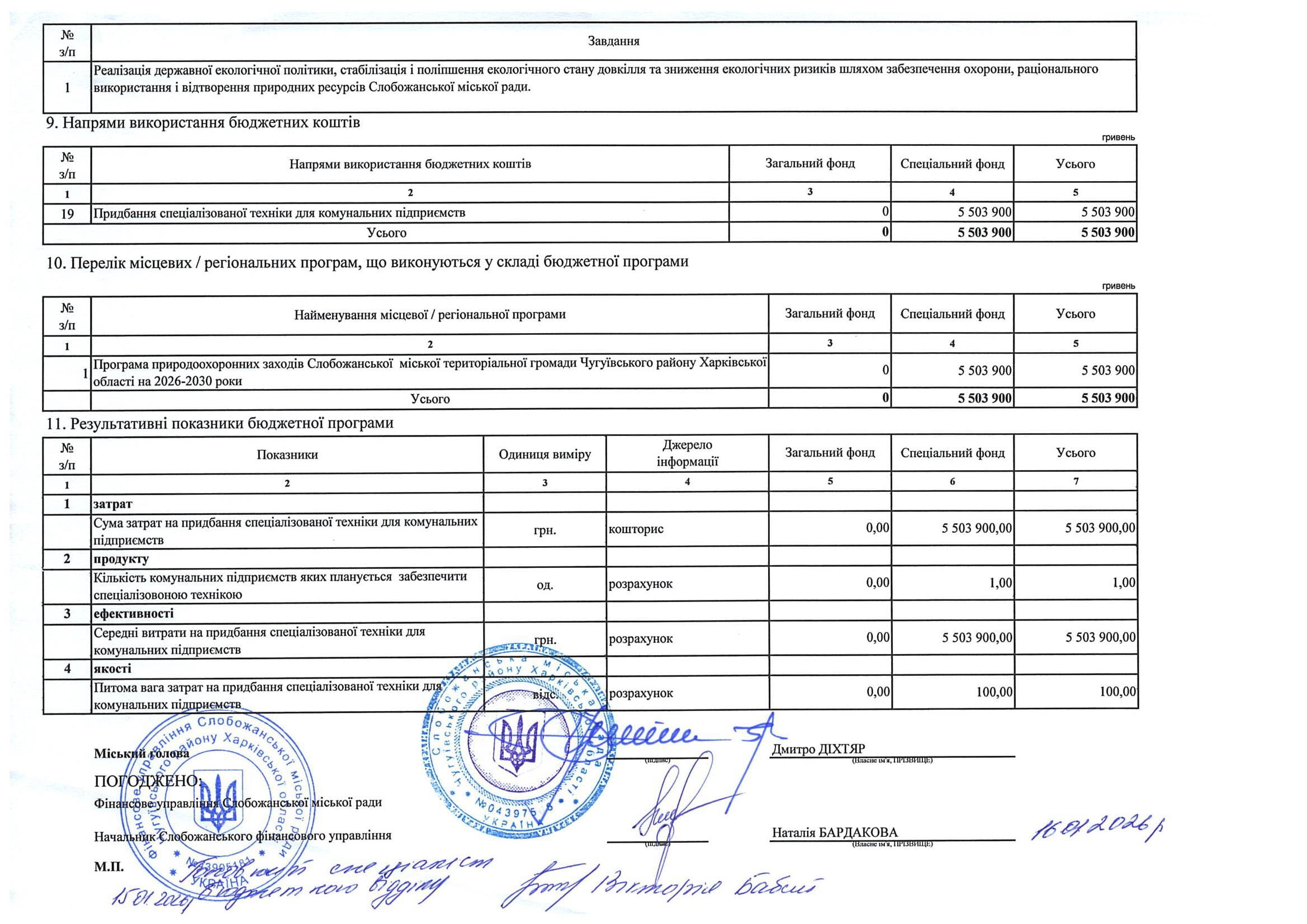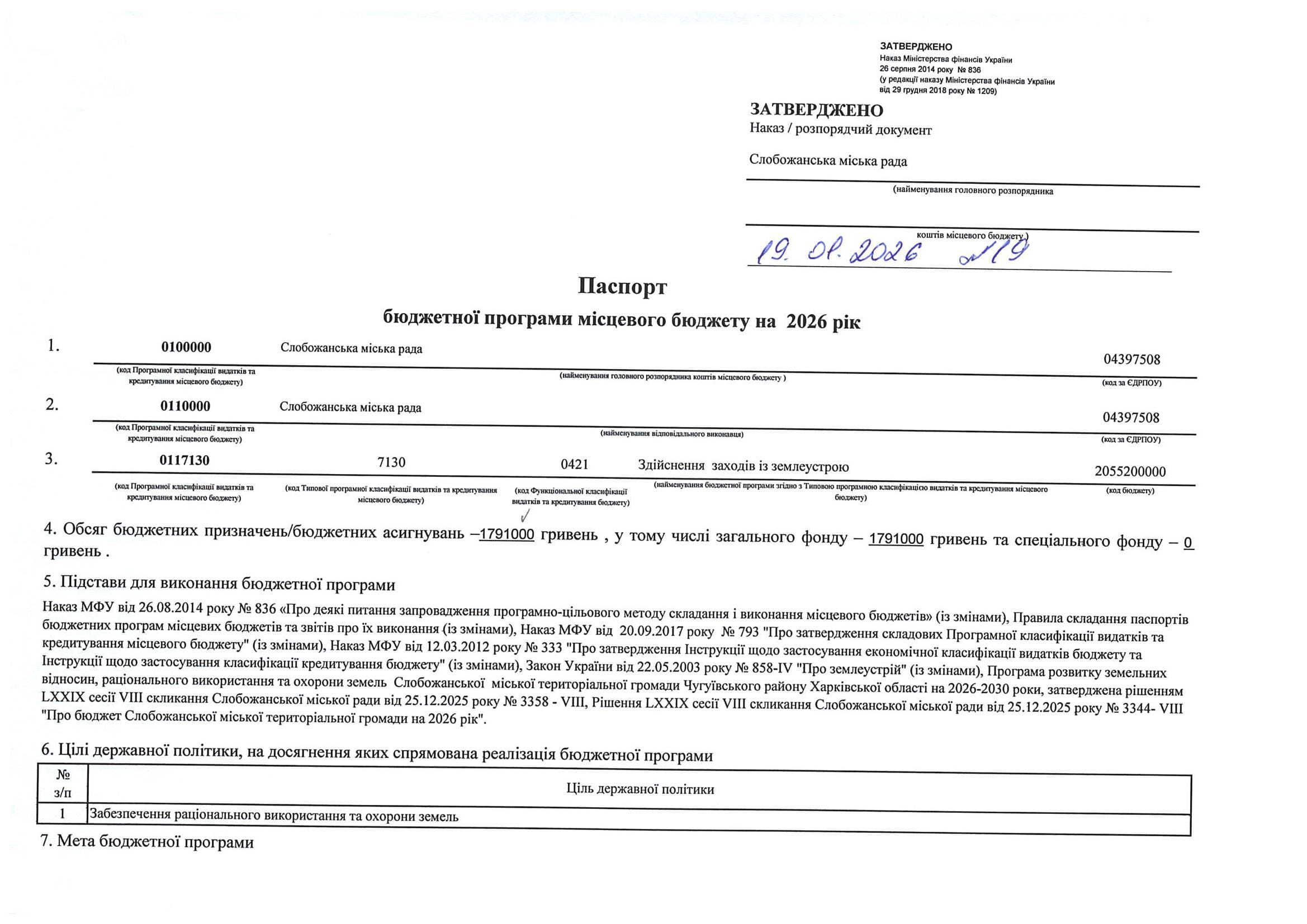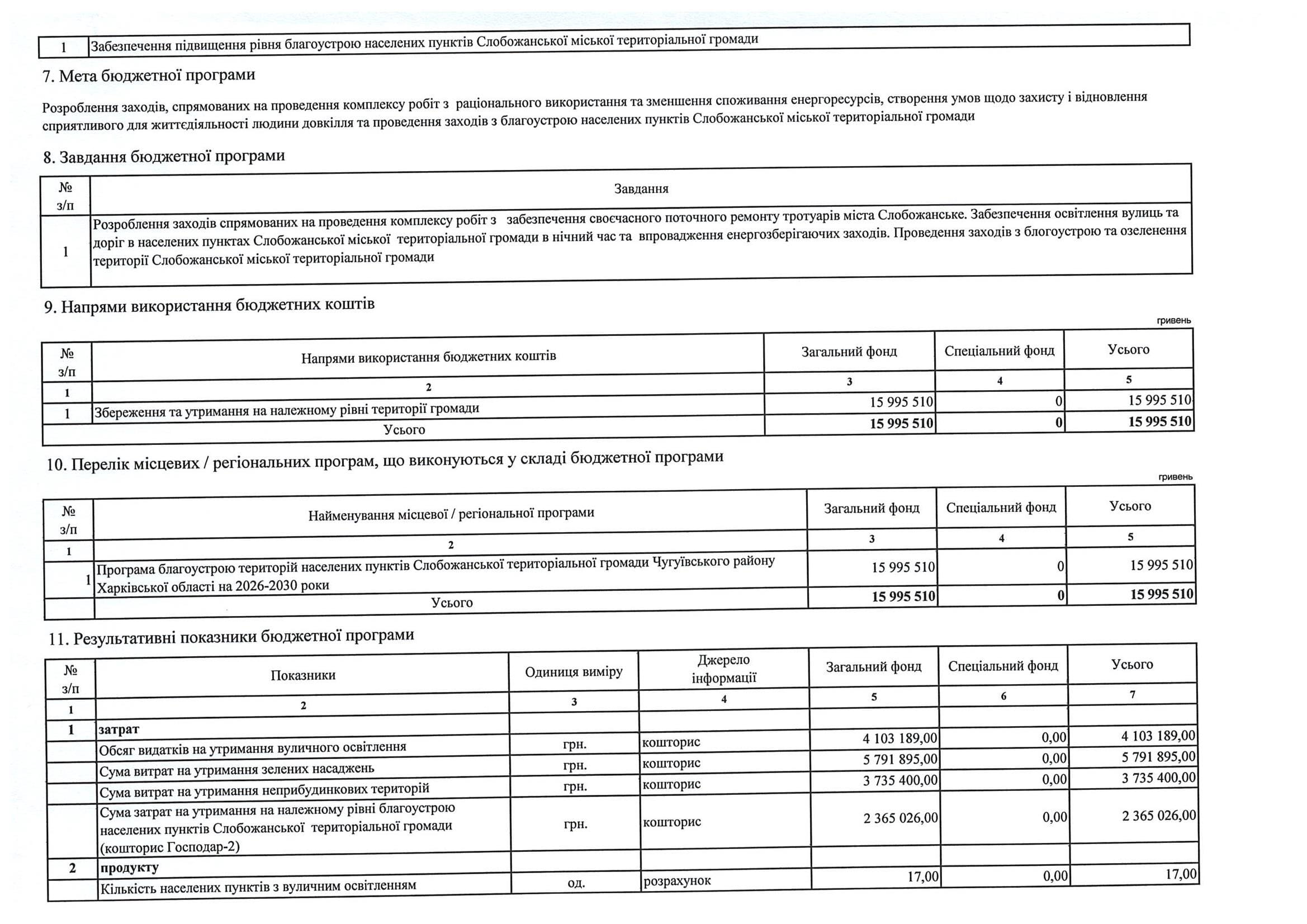 Паспорт бюджетної програми місцевого бюджету ТПКВКМБ 0116091