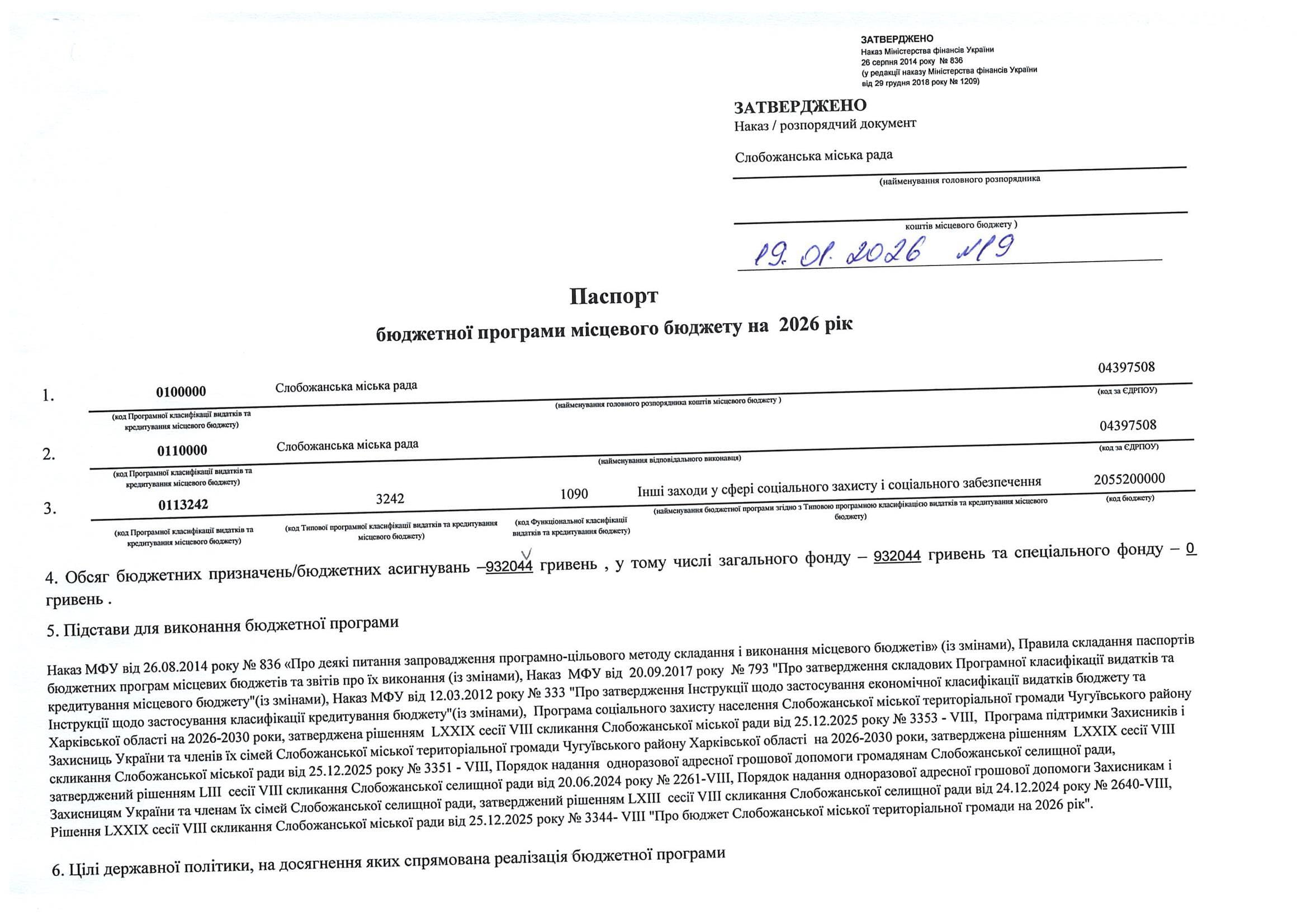 Паспорт бюджетної програми місцевого бюджету ТПКВКМБ 0113090