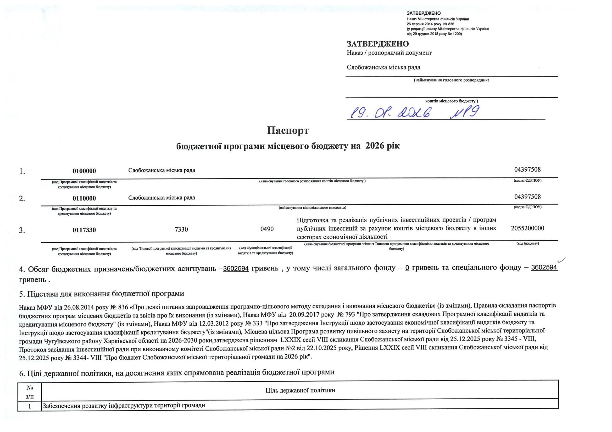 Паспорт бюджетної програми місцевого бюджету ТПКВКМБ 0117330