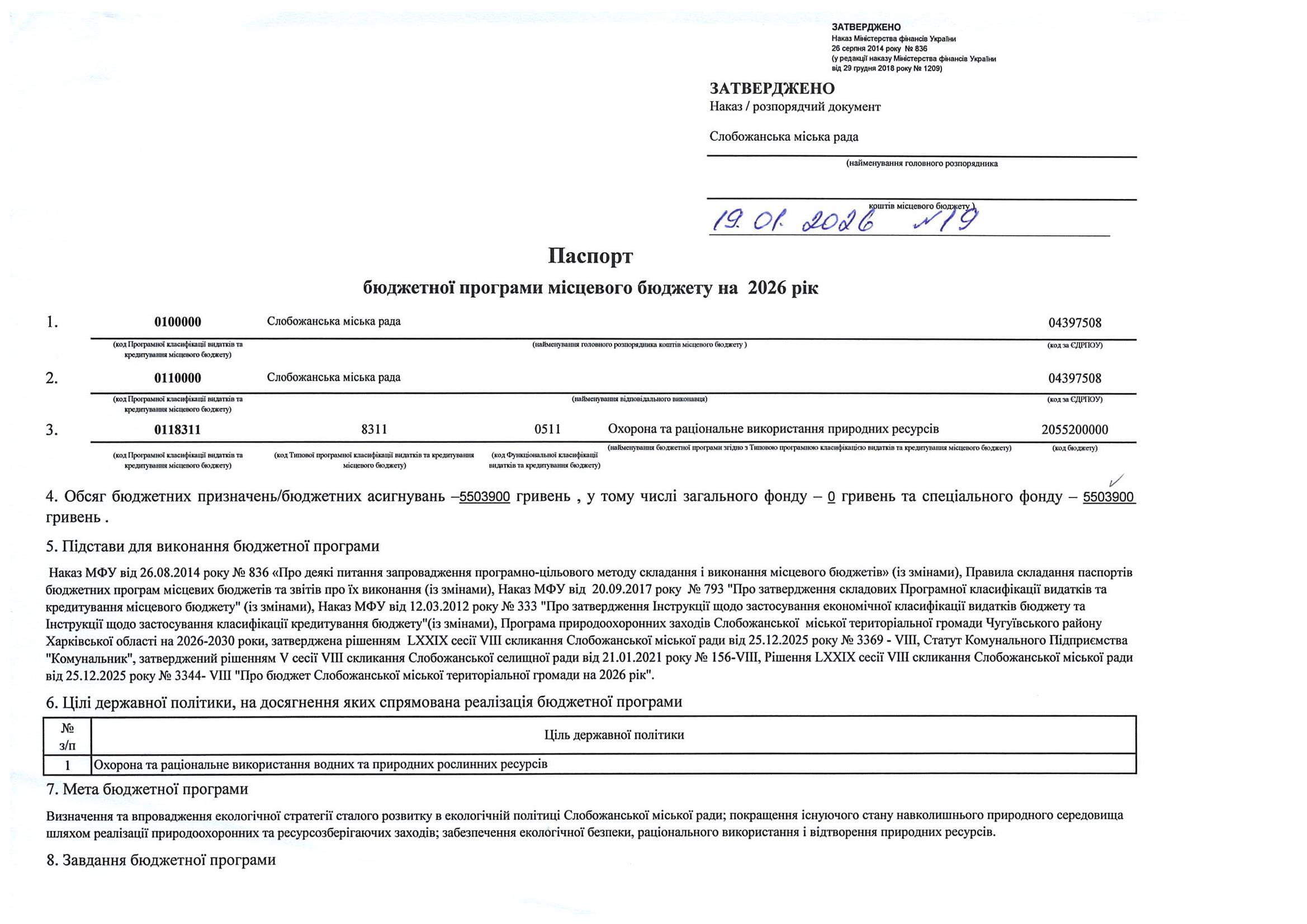 Паспорт бюджетної програми місцевого бюджету ТПКВКМБ 0118311