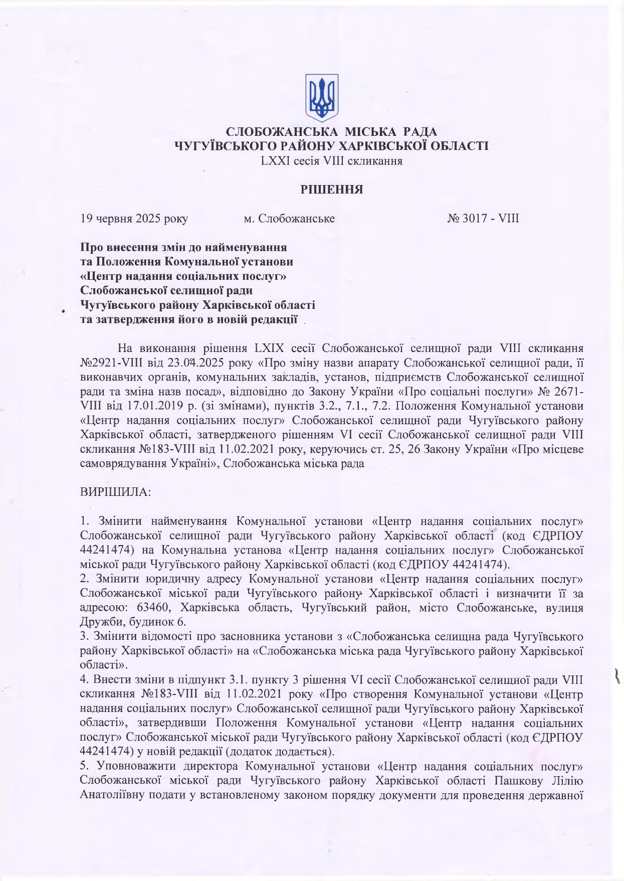 Комунальна установа «Центр надання соціальних послуг» Слобожанської селищної ради Чугуївського району Харківської області